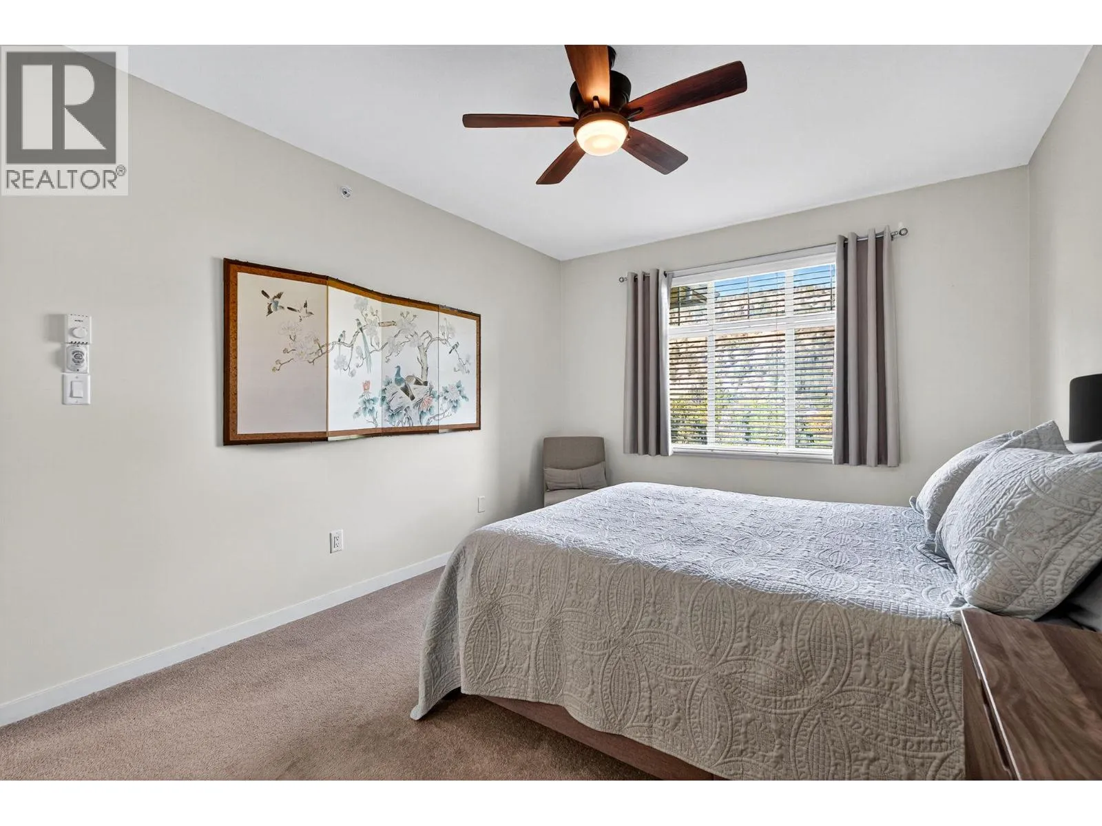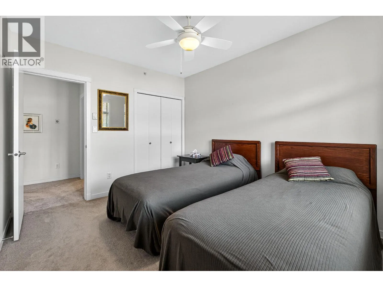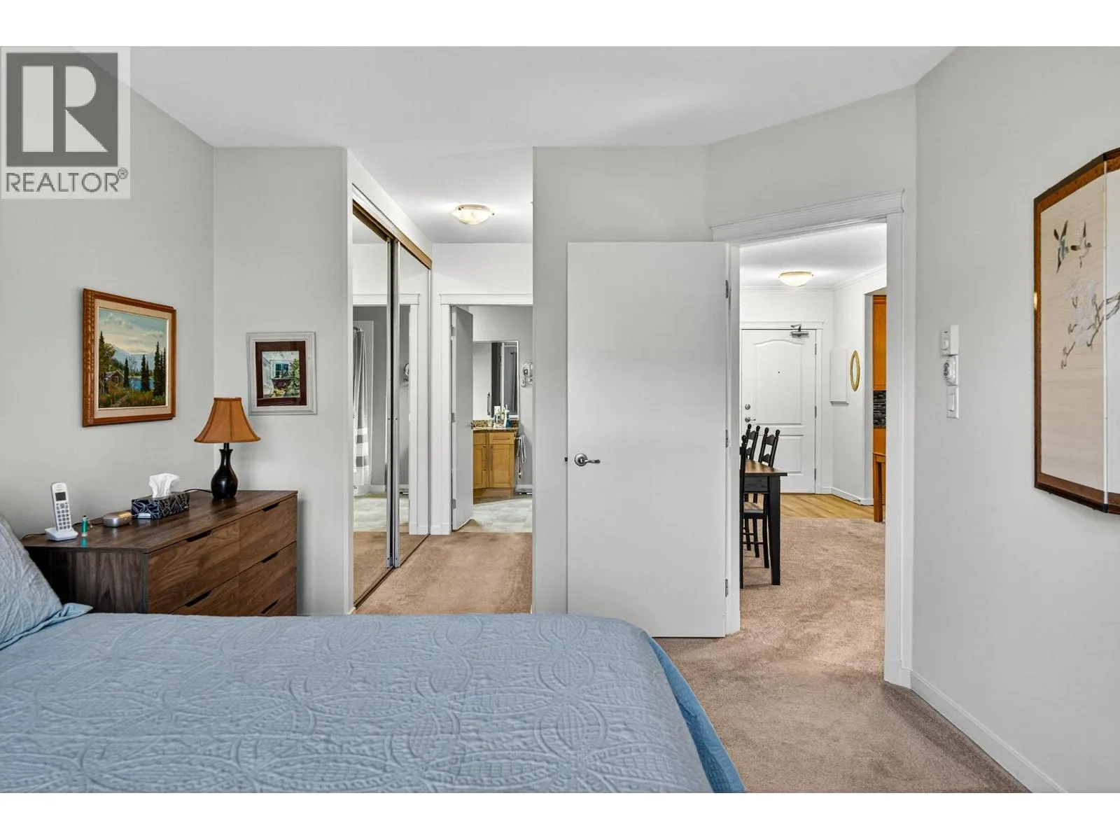 IMMACULATE & TOP FLOOR with a View! 2 bedroom, 2 bath condo at Brandt's Crossing. Beautifully maintained, this spacious condo offers a well-designed living space with large eat-in kitchen and plenty of cabinetry, S/S appliances and walk-in pantry/separate laundry room area. Split floor plan with bedrooms on either side of the living room. Gas fireplace is included in your strata fees. This home is perfect for those looking to downsize without compromising on space, comfort, or convenience. No yard work to worry about, relax on your deck overlooking the park or go for a walk to the many amenities just a stroll away. Complex has a fitness room, games room, a workshop and a Guest Suite. 1 dog or 1 cat up to 15 lbs, 15"" at shoulder. (id:27476)