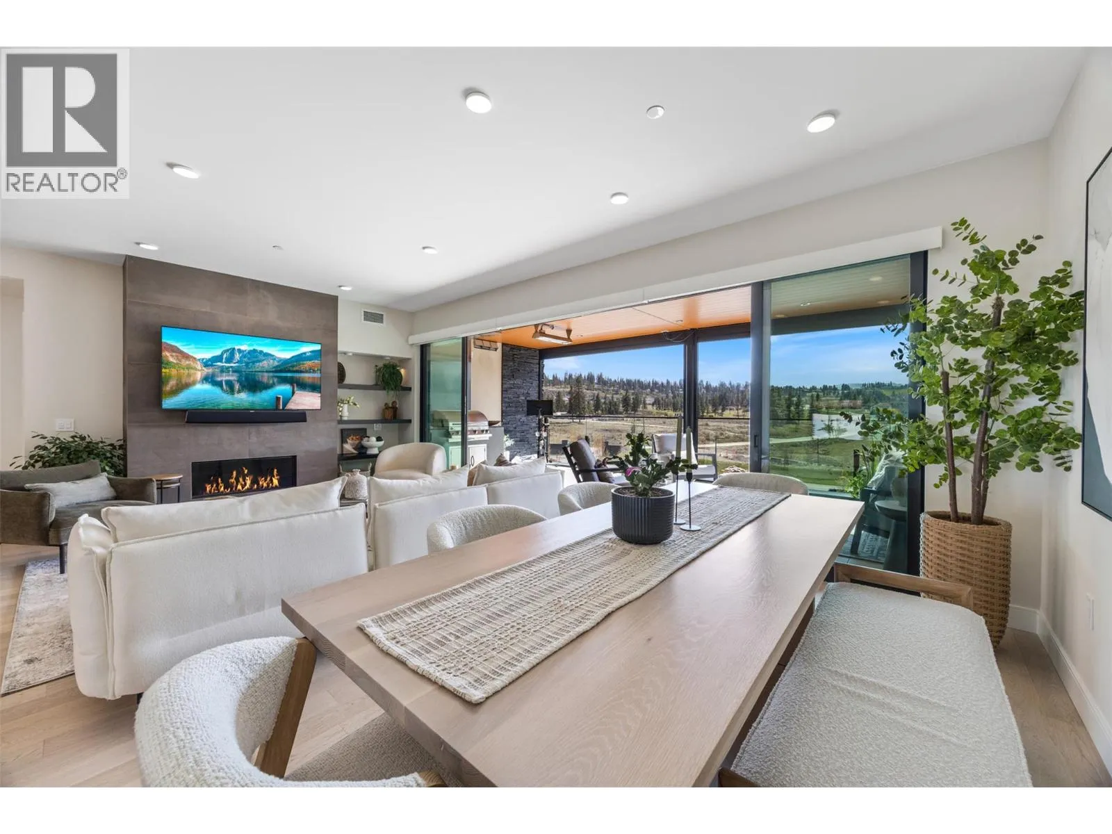 Experience elevated condo living in this exquisite two-bedroom, two-bathroom home at Ariva. From the moment you step inside, youâll be captivated by the attention to detail, high-end finishes, and soothing palette of neutral tones that enhance the sense of space and serenity. The gourmet kitchen is a showstopper, featuring a striking waterfall island, full slab backsplash, gas stove, soft-close cabinetry, and convenient pull-out drawersâall complemented by elegant, neutral finishes. A sleek linear fireplace anchors the open-concept living area, adding warmth and modern style. Enjoy seamless indoor-outdoor living with retractable glass doors that open onto a spacious deckâcomplete with a built-in BBQ, stone fire table, motorized roll-down screensâcreating a warm and inviting space perfect for year-round entertaining. The primary suite offers a peaceful retreat with space for a reading nook, office, or lounge area, a walk-in closet, and a spa-inspired ensuite featuring dual vanities, quartz countertops, a deep soaking tub, and a glass-enclosed showerâall in calming, neutral tones. The second bedroom offers flexible use (no window or closet), while the stylish main bathroom and a separate laundry room with additional storage complete the layout. Additional features include motorized blinds, a Control4 smart home system with integrated lighting and audio, and access to Arivaâs exceptional amenities: outdoor pool and hot tub, fitness centre, pickleball court, yoga studio, steam room, and a stunning lakeview resident lounge and terrace. Live the Okanagan lifestyle you deserve at Ariva. (id:27476)