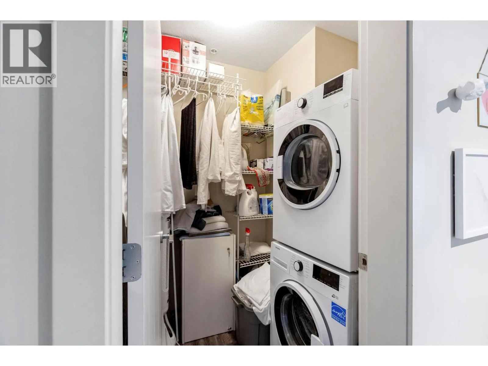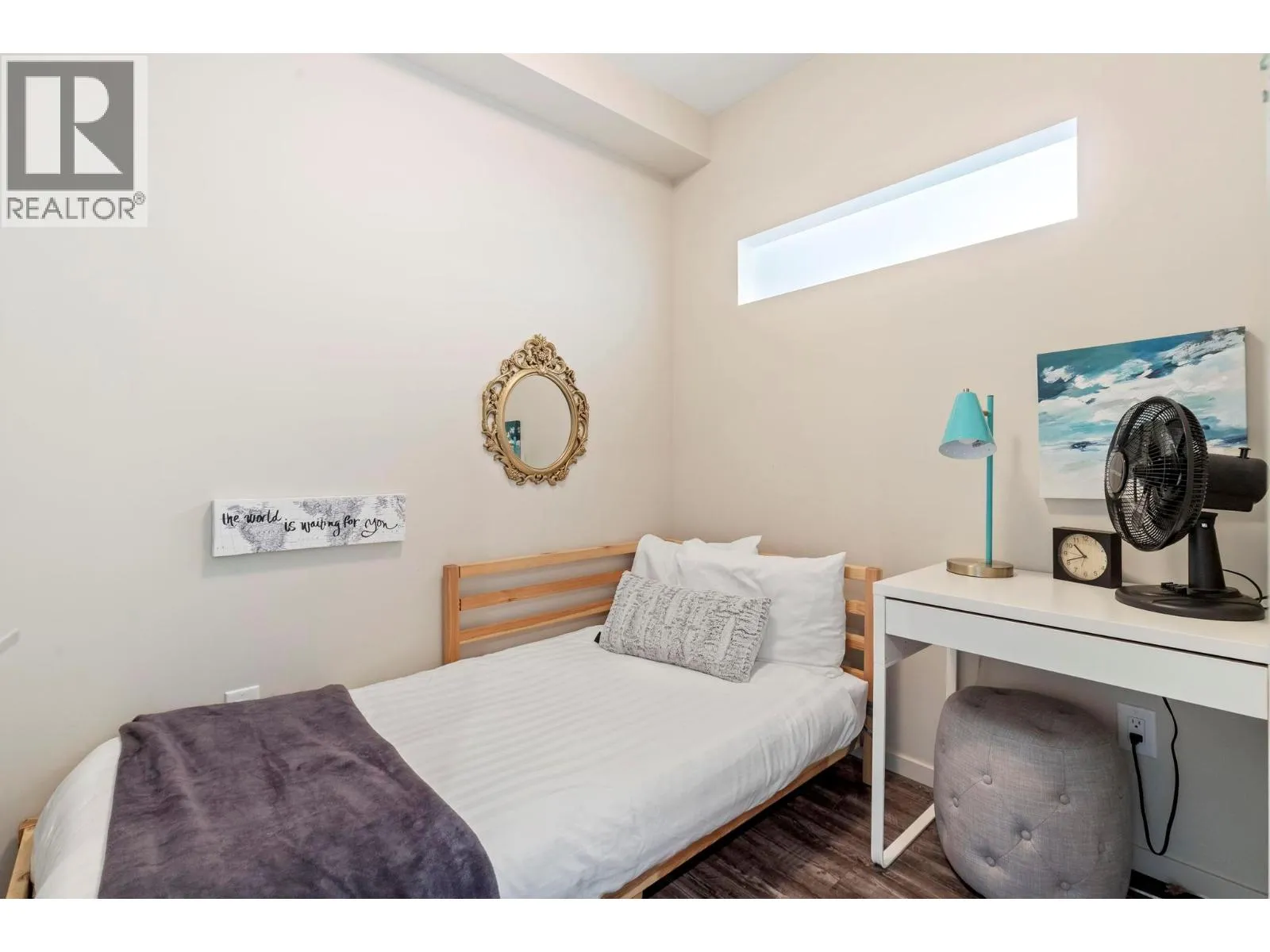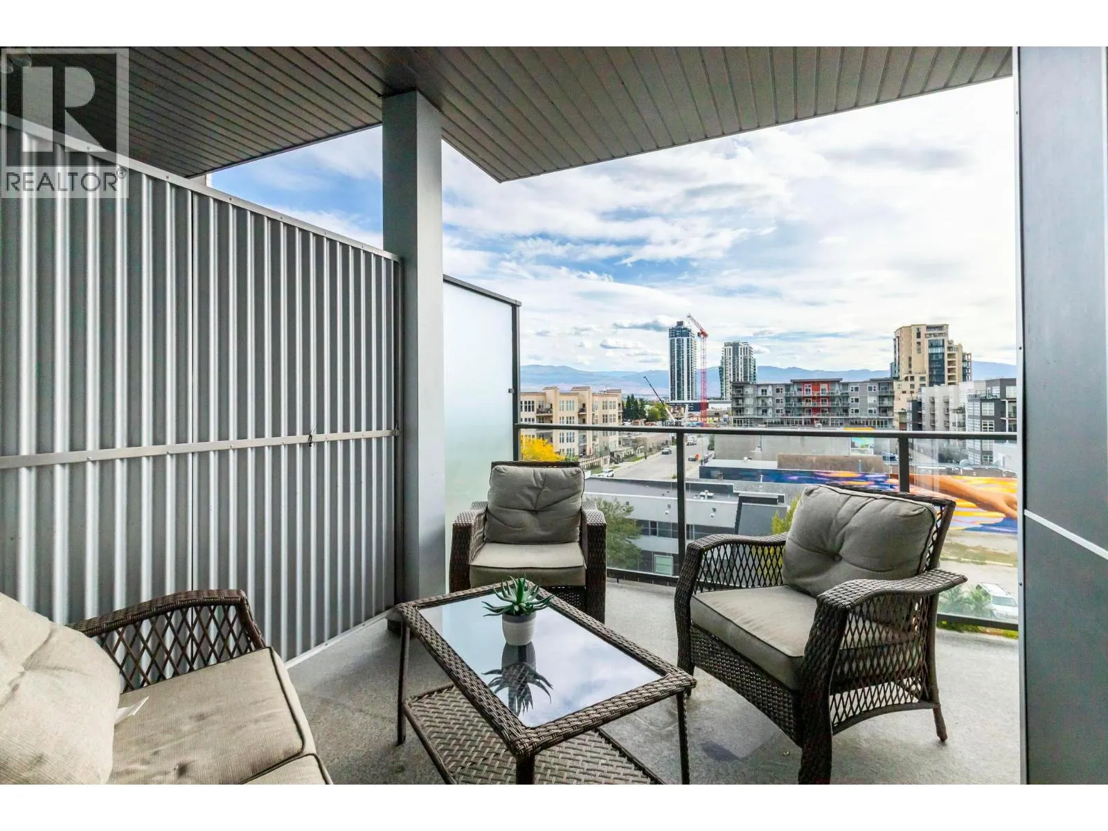 Welcome to Sole, where contemporary design meets the vibrant energy of Kelownaâs Cultural District. This 638 sq ft, 1 bedroom + den suite is filled with natural light, featuring large windows that showcase beautiful city and mountain views, creating a bright and welcoming atmosphere throughout.The open-concept layout highlights quartz countertops, stainless steel appliances, vinyl plank flooring, and a spa-inspired bathroom with double sinks and a glass shower. The bedroom wall can be closed for added privacy, while the den offers flexibility for a home office or guest space. The living area features a modern wall-mounted electric fireplace, adding warmth and ambiance, and the home comes equipped with central heating and cooling for year-round comfort. Step onto your covered patio to enjoy the viewâthe perfect spot for morning coffee or evening wine.Youâll appreciate the convenience of in-suite laundry, one secure underground parking stall, and one storage locker. Residents enjoy premium amenities including a rooftop patio with BBQs and fire tables, plus a fitness studio. Built by Edgecombe Construction, recipient of the 2016 GOLD Tommie Award for Home Builder of the Year, Sole is pet-friendly and ideally located just minutes from the beach, restaurants, shops, and the upcoming UBCO campus. Whether youâre seeking a modern downtown home or a great investment property, this bright, move-in-ready condo offers style, comfort, and unbeatable walkability in the heart of Kelowna. (id:27476)