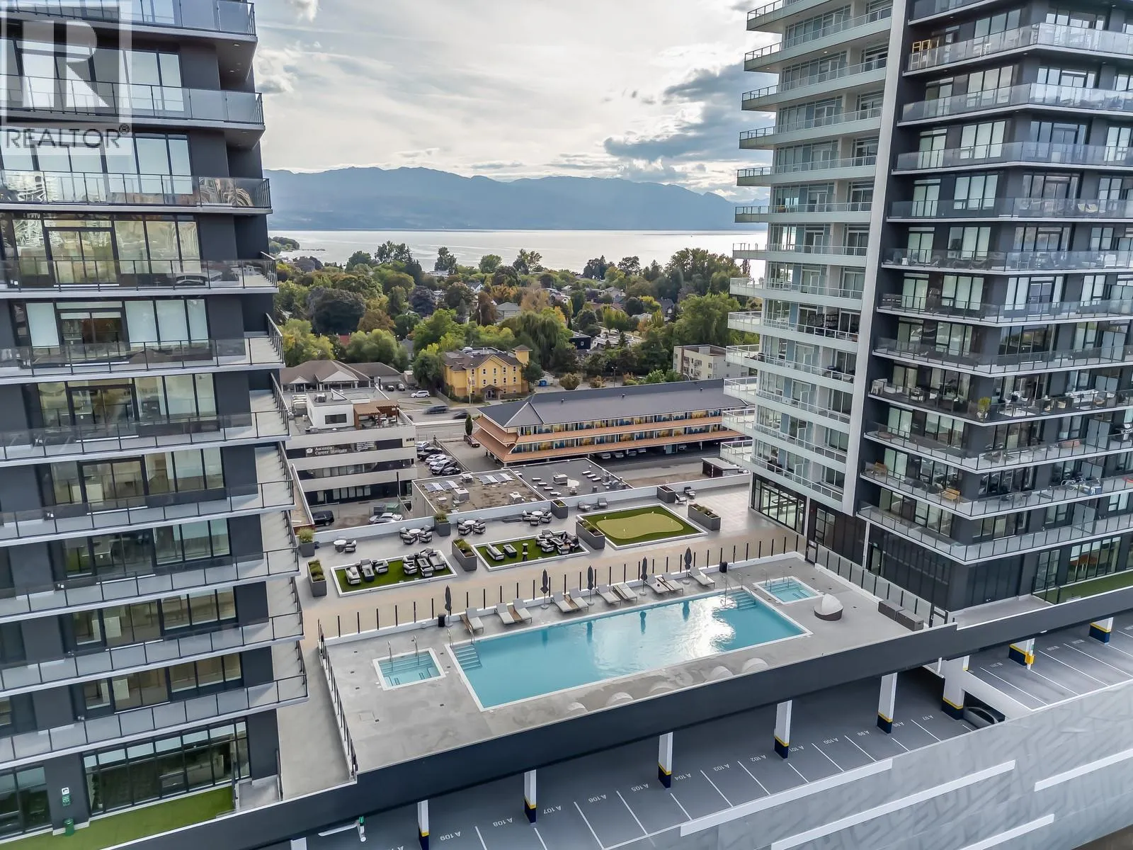 Welcome to Water Street by the Park, where luxury, lifestyle, and location meet in the heart of downtown Kelowna. This stunning 2-bedroom, 2-bathroom south-east corner unit offers 879 Sqft of modern living space and an impressive 415 Sqft wraparound balcony showcasing beautiful lake and city views. This home captures sunlight throughout the day while maintaining privacy and peaceful surroundings. This one has an open-concept layout with floor-to-ceiling windows, sleek finishes, and a natural flow between the kitchen, dining, and living spaces. The primary suite features a spacious walk-in closet and a spa-inspired 3-piece ensuite, while the second bedroom offers versatility for guests or a home office. Step outside to your oversized balcony, the perfect place to relax, dine, or take in the sunset over Okanagan Lake. Residents at Water Street by the Park enjoy resort-style amenities including an outdoor heated pool, 2 hot tubs, BBQ kitchens, firepits, a full sized fitness centre with lake views, yoga and spin studios, sauna, theatre room, co-working and social lounges, art studio, putting green, golf simulator, pet wash station, and landscaped green spaces. Additional conveniences include secure underground parking, bike storage, and on-site retail. Just steps from the waterfront, City Park, and downtown dining. This home offers the perfect blend of comfort, community, and convenience, an incredible opportunity to own in one of Kelownaâs most sought after new developments. (id:27476)