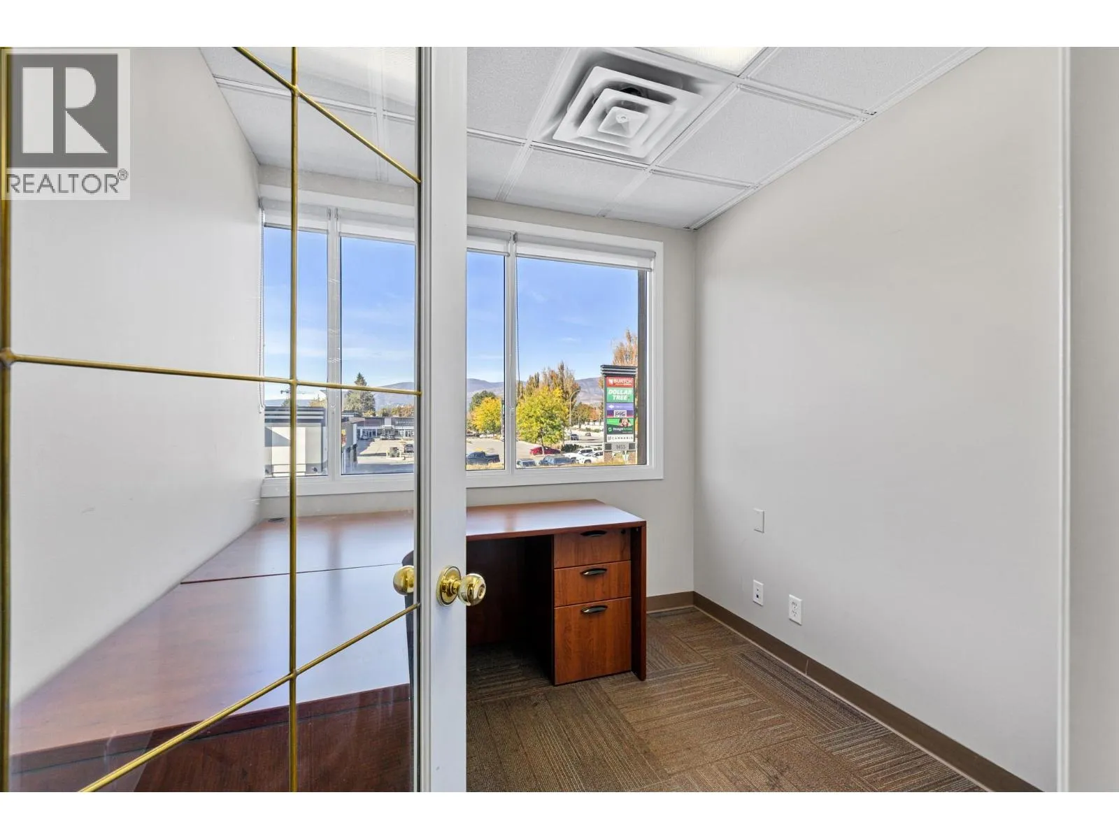 High exposure office space for lease in the heart of Kelowna. Prominent Highway 97 location. Second-floor strata office space offering 2,334 sq. ft. of bright and functional layout. The premises include 10 private offices, a large meeting room or bullpen area, a kitchen, and a welcoming reception space. Abundant natural light throughout with large windows in most offices. Professional office environment ideal for medical, tech, legal, or administrative use. On-site parking available for staff and clients. Located along Kelownaâs main corridor, this property provides excellent exposure, accessibility, and convenience near Orchard Park Mall, shopping, dining, and public transit. (id:27476)