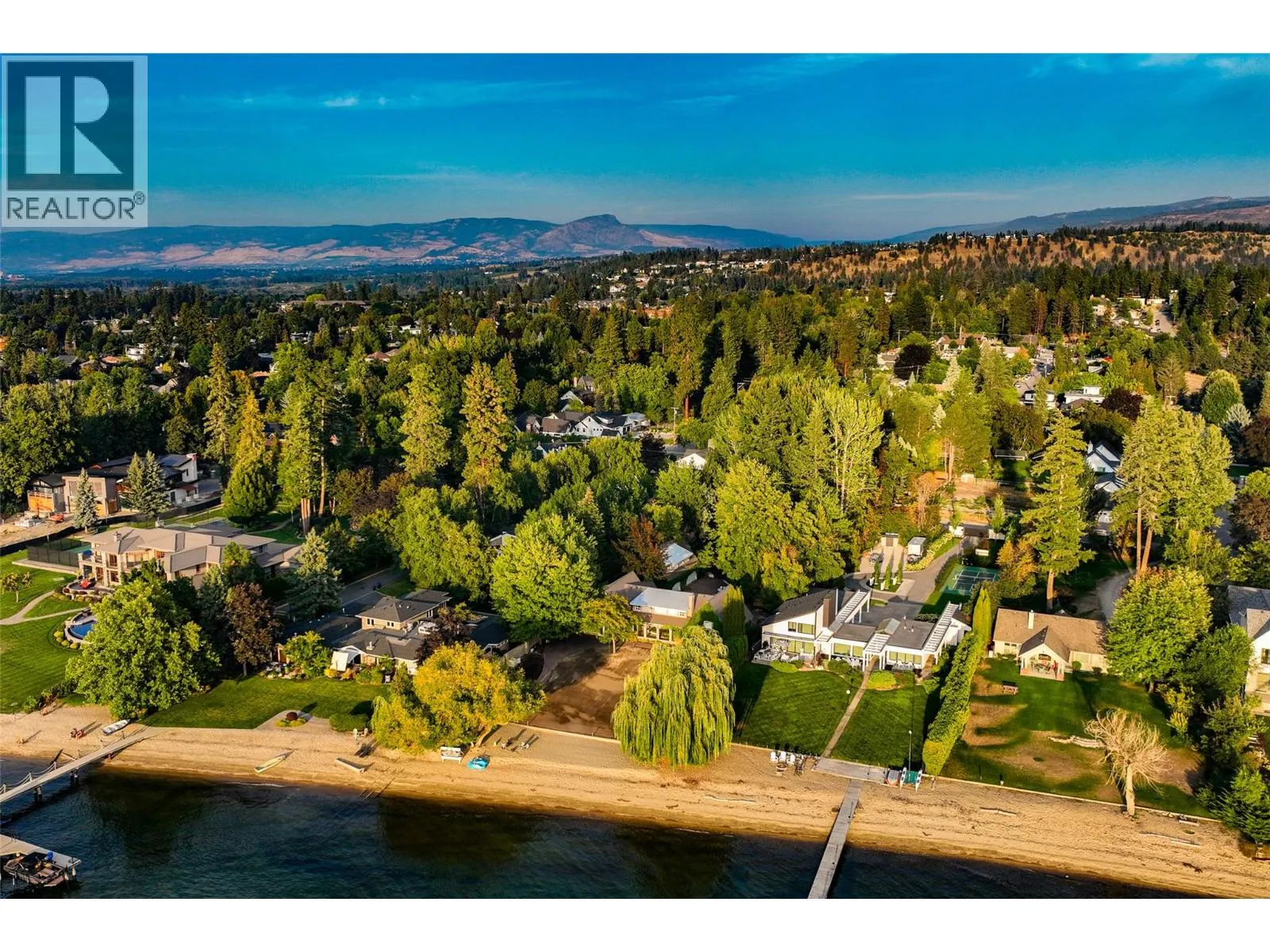 Fuller road is a sought after street in Kelowna, quiet street with no through access all while being close to town. Fuller street maintains that neighbourhood feel, with mature trees and a quieter atmosphere. Located on a quiet stretch of shoreline, this home boasts approximately 100 feet of unobstructed lake frontage, framing panoramic views and a direct connection to the natural beauty of Okanagan Lake. When entering the property you will drive through a forested section providing utmost privacy. Inside, a bright open layout welcomes you with expansive living spaces and a gourmet kitchen highlighted by premium appliances and a custom oversized island. The main bedroom suite features direct access to the backyard and a spacious ensuite designed for comfort. Step outside to experience seamless indoor and outdoor living: a large patio perfect for hosting, and a tranquil waterfront area ideal for quiet mornings or sunset gatherings. Upstairs, a versatile media room provides year-round enjoyment. This Fuller Road property embodies the heart of Okanagan living, natural beauty, refined design, and unmatched exclusivity. (id:27476)