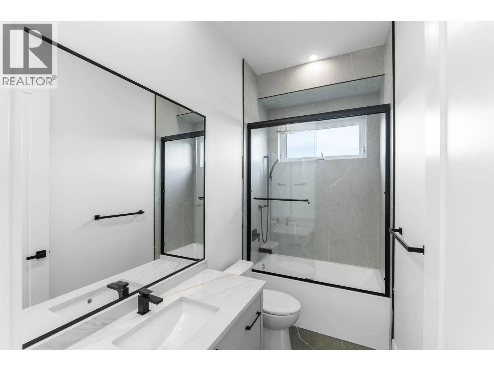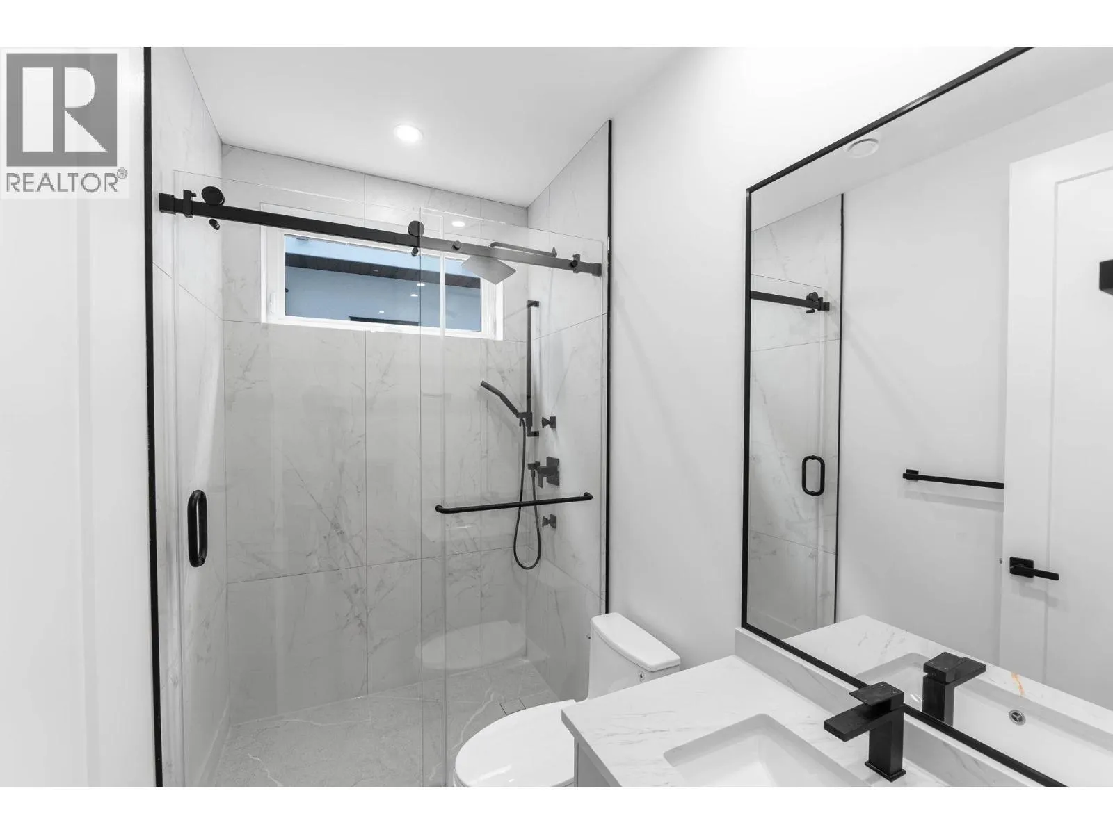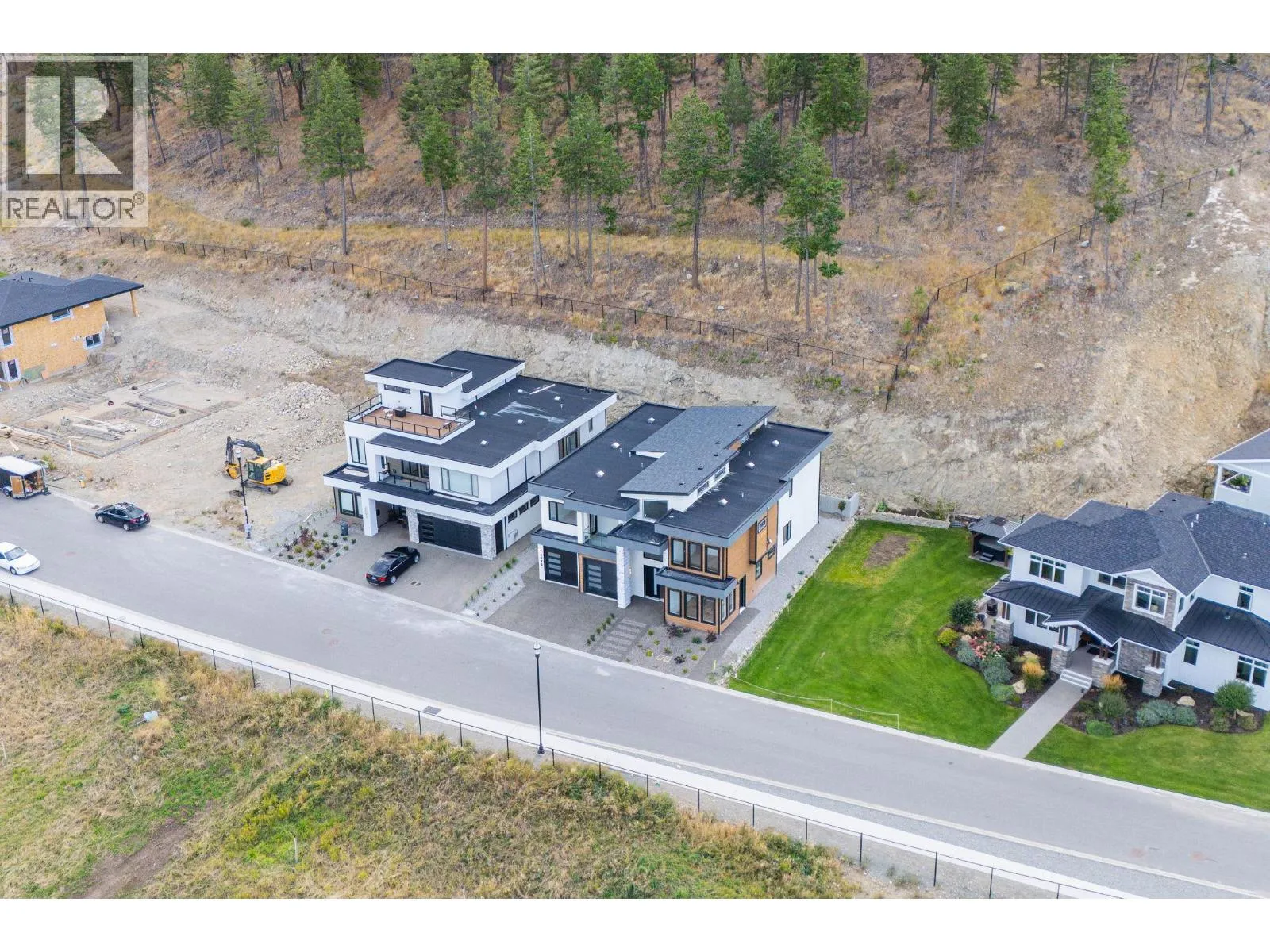 Experience luxury living on Kirschner Mountain with this brand-new designer home featuring over 3,800 sq ft of modern elegance and functionality. Step inside to a grand open-concept living space with soaring ceilings, a striking fireplace, and gorgeous hardwood floors throughout. Enjoy seamless home automation with smart-controlled lighting, zoned sound system, and built-in cameras, complemented by a built-in vacuum for convenience. The main kitchen showcases high-end Bosch appliances with wood cabinetry, while the spice kitchen and basement wet bar feature premium acrylic finishes. Upstairs, relax in your primary suite with a private balcony offering unobstructed mountain viewsâno home in front and a generous green space beside for extra privacy. A theatre room, front and rear balconies, and a double-car garage complete the main residence. The legal 2-bedroom suite off to the side offers ideal rental income potential or extended family living. Enjoy this home in one of Kelownaâs most sought-after communities. Enjoy a blend of comfort, technology, and styleâperfect for families or investors seeking a luxury home with income potential. (id:27476)