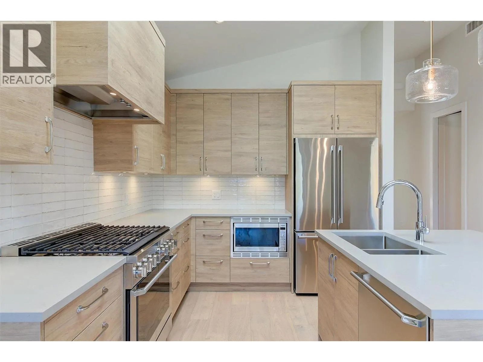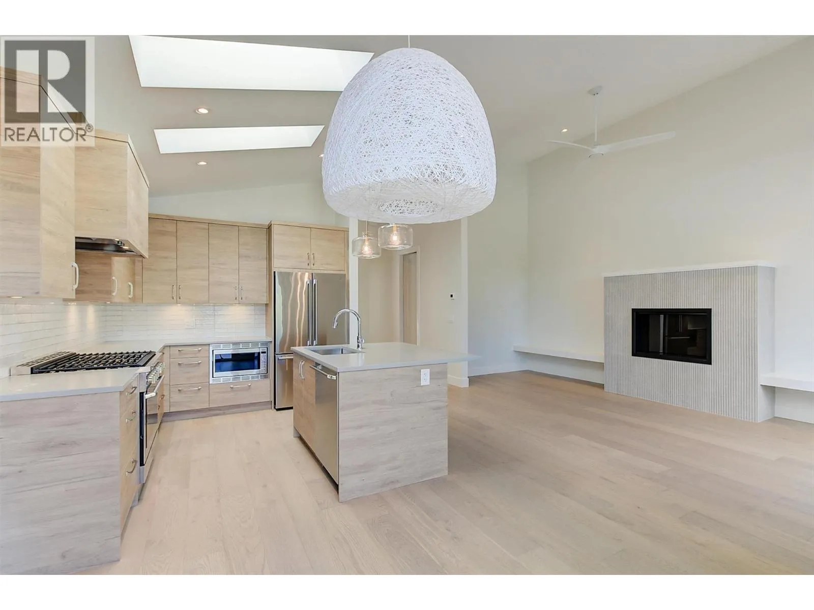 Modern design meets the relaxed charm of Mission living. Built by award winning Thomson Dwellings, this 3bdrm, 3bath home offers thoughtful design, quality craftsmanship, and plenty of room for all your lifestyle needs. One of the true highlights is the OVERSIZE DOUBLE GARAGE â perfect for your boat, RV, or extra storage. Step inside and youâll instantly feel at home. Soaring vaulted ceilings, skylights, and natural light fill the open-concept main floor, creating a bright and welcoming atmosphere. The kitchen is both stylish and functional, featuring a large sit-up island, sleek flat-panel cabinetry, quartz countertops, high-end appliances, and a walk-in pantry. The living area is anchored by a beautiful fireplace with custom tile surround and built-in bench seating, making it the perfect spot to relax and unwind. The main-level primary suite opens to the back patio and feels like a peaceful retreat, complete with a spa-inspired ensuite featuring dual vanities, a soaker tub, a glass-and-tile shower, and a walk-in closet. Downstairs, youâll find two additional bedrooms, a full bath, laundry, and a spacious rec room with a quartz-topped bar, beverage fridge, and accent lighting. Enjoy both front and back outdoor living spaces, plus easy access to everything the Mission has to offer â wineries, beaches, schools, and endless hiking and biking trails. Thoughtfully designed and beautifully finished, the perfect blend of comfort, convenience, and Okanagan lifestyle. (id:27476)