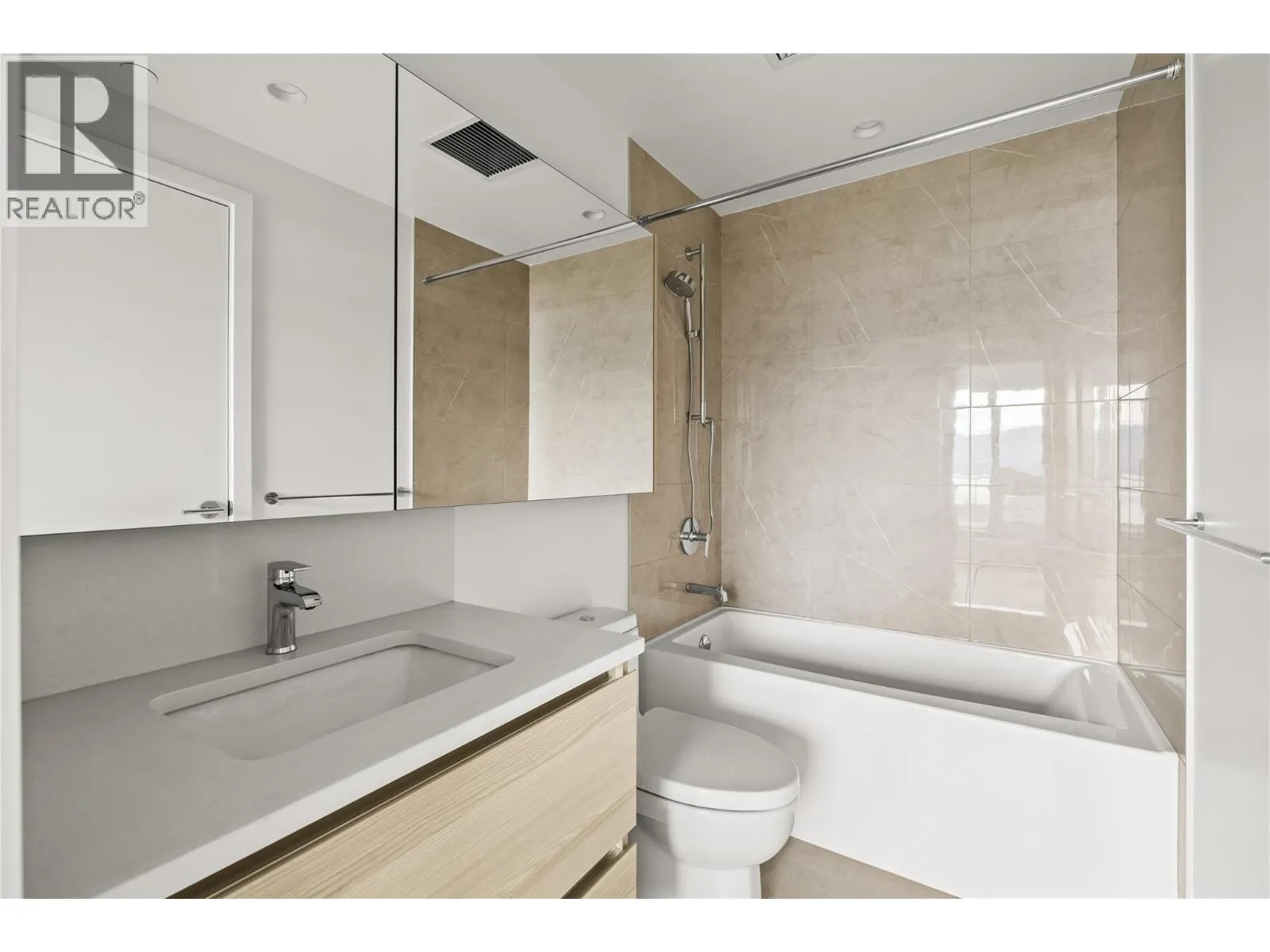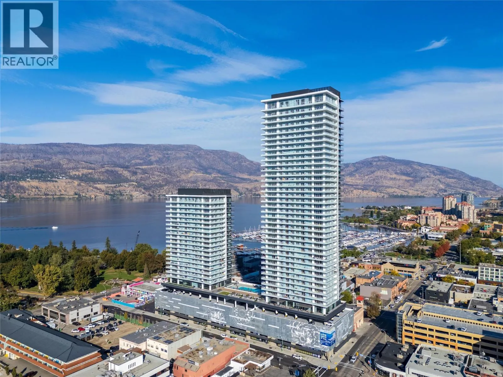 Live the downtown Kelowna lifestyle with stunning lake and mountain views from this 27th-floor home in the brand-new Waterstreet by the Park. Offering 636 sqft of stylish living, this pet-friendly 1-bedroom condo blends comfort and sophistication with a spa-inspired colour palette and thoughtful design throughout. The gourmet kitchen is beautifully equipped with a gas range, wall oven, integrated fridge/freezer, built-in wine fridge, and a spacious island perfect for casual dining or entertaining. The bright bedroom features a walk-through closet leading to a modern ensuite with a soaker tub and shower combo. Step onto your private balcony to take in panoramic views of Okanagan Lake and the surrounding hills. One secure parking stall is included, along with access to over 4,200 sqft of world-class amenitiesâoutdoor pool, multiple hot tubs, fitness centre, yoga and spin studio, sauna, private theatre, putting green, golf simulator, art room, co-working and social lounges, plus concierge and 24-hour security. Steps to beaches, shopping, and dining, this is luxury living at its best. (id:27476)