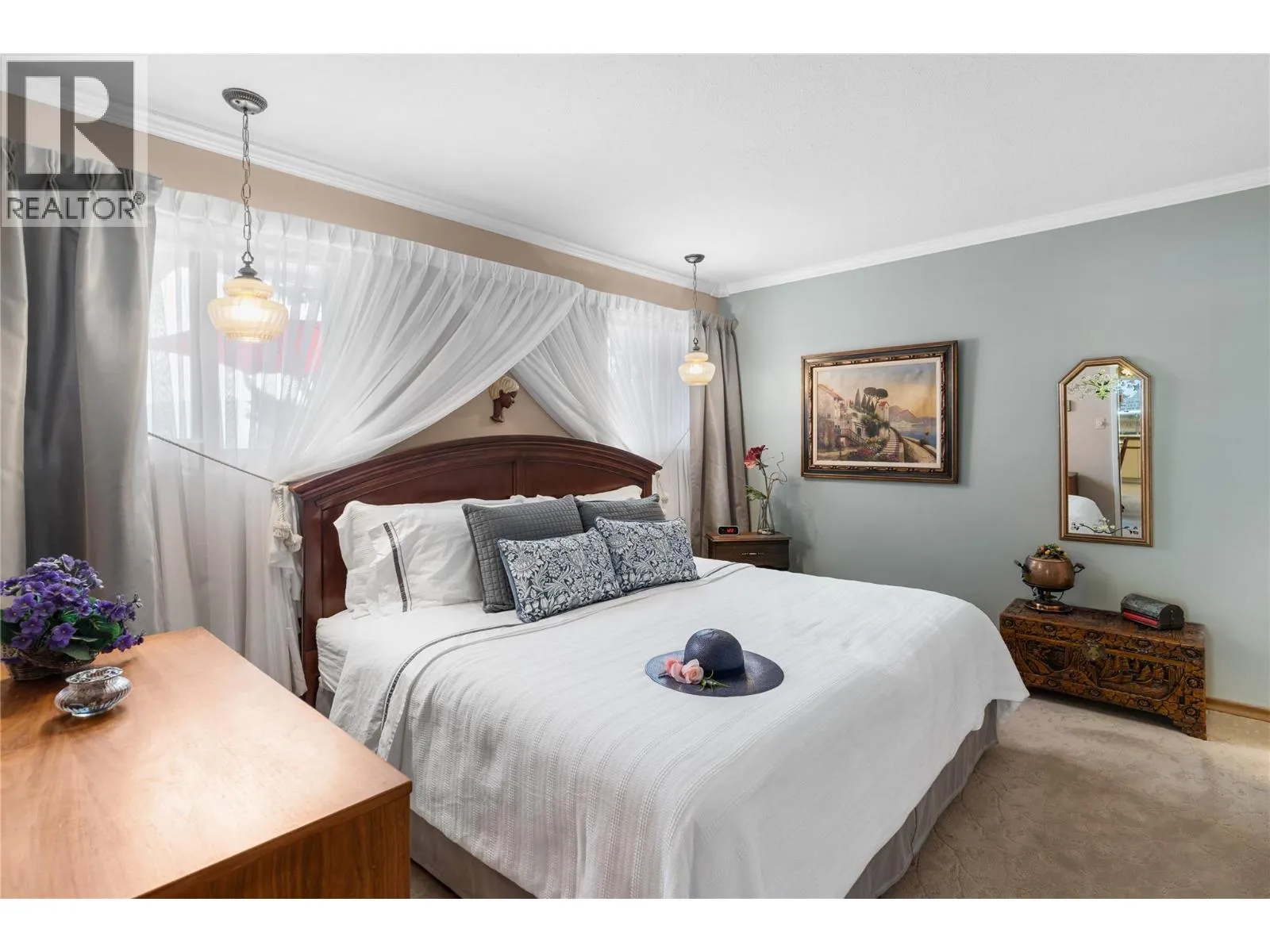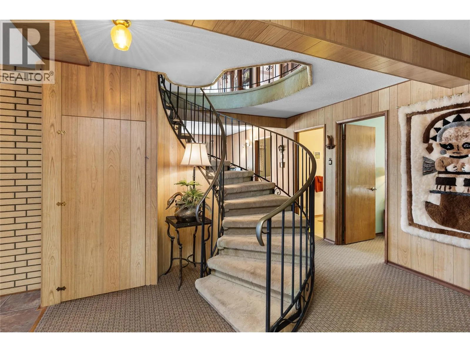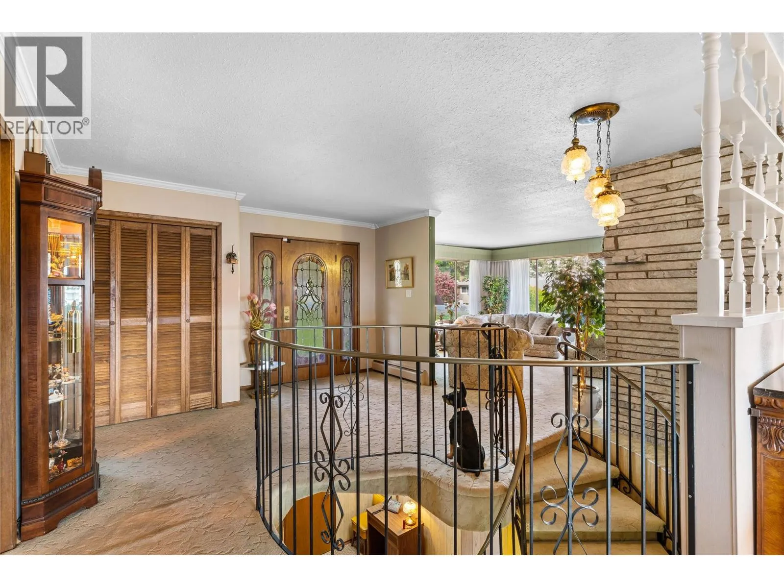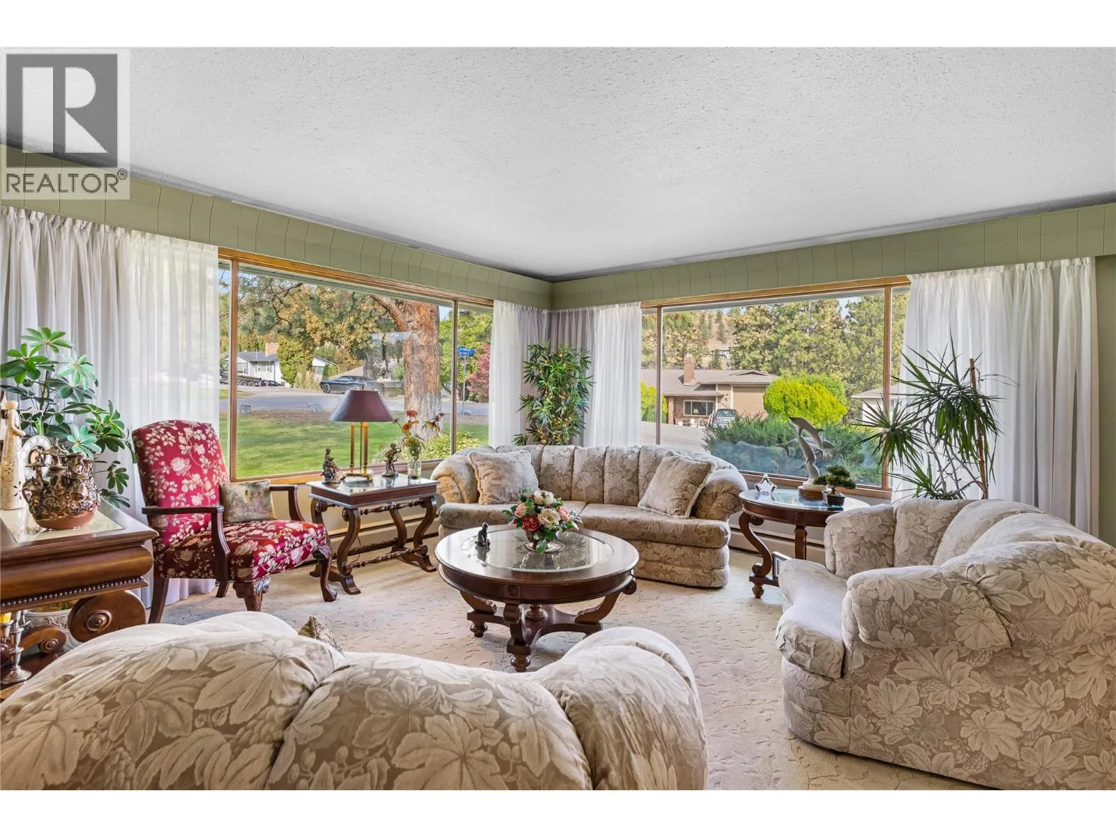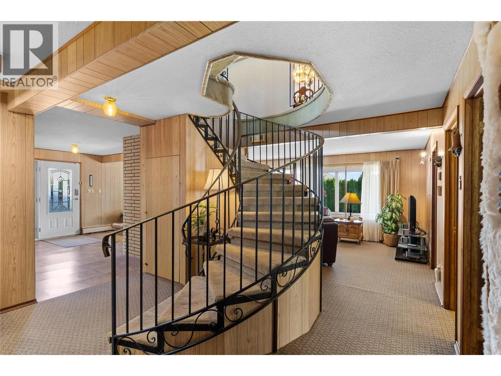 Welcome to this beautiful two-storey Character Home in the heart of Glenmore, one of Kelownaâs most established family-friendly neighbourhoods. Sitting on an extra-large corner lot of over a quarter acre, this property offers endless potential with multi-family zoning and a lower level that could be converted into a suite, with its own separate entrance. Featuring 4 bedrooms and 3 bathrooms, this classic home showcases timeless charm with a brick exterior, spiral staircase, a cozy converted fireplace, and a bright solarium perfect for morning coffee or afternoon reading. The spacious layout provides tons of storage and serves as a wonderful canvas for your personal touches and customizations. Outside, the horseshoe driveway offers ample parking, surrounded by mature cedars, and decorative landscaping, with room to add a pool or garden oasis at your discretion. Upgrades for your peace of mind include a newer hot water tank (2024), and a 30-year roof (installed in 2009) with new eavestroughs. Located within walking distance to schools, parks, shopping, and a quick drive to downtown Kelowna, this home combines character, convenience, and opportunity in one exceptional package. (id:27476)
