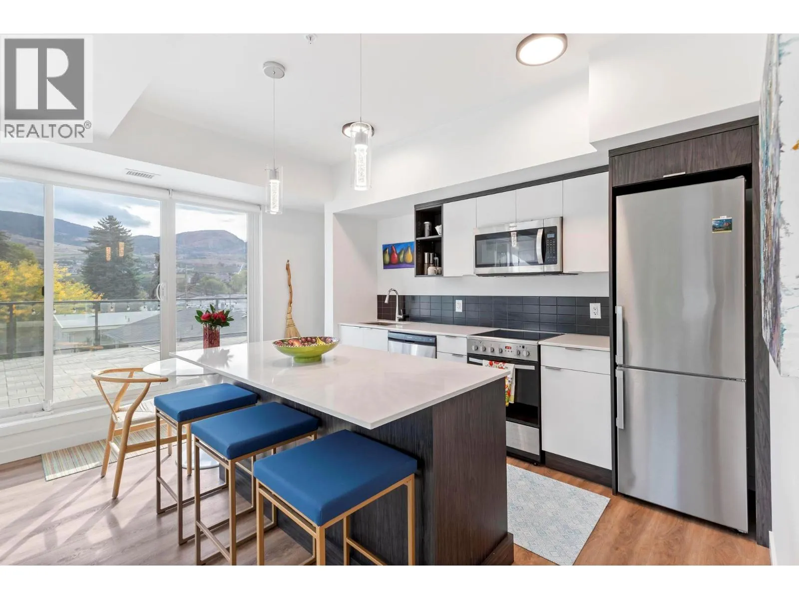 Welcome to Sole in Rutland â a rare corner unit offering modern living with over 1,000 sqft of private outdoor space. This bright and airy 2-bedroom, 2-bathroom home features three patio doors that open to a massive patio, perfect for entertaining or relaxing in the sun. Inside, you'll find a sleek, modern design with quartz countertops throughout, and large windows that flood the space with natural light. The primary bedroom includes a spacious ensuite with a large walk-in shower and elegant finishes. Enjoy the convenience of underground parking, secure entry, and being part of a well-maintained, centrally located building â close to shops, parks, and transit. Donât miss your chance to own a stunning, low-maintenance home with exceptional indoor-outdoor flow in one of Rutlandâs most desirable buildings. (id:27476)