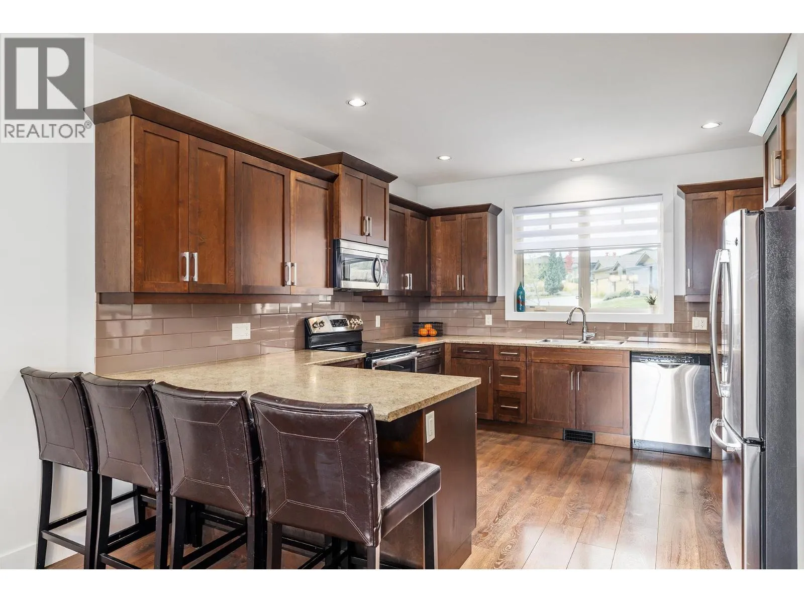 Welcome to this beautifully designed 5-bedroom plus den, 3-bath family home offering space, comfort, and stunning views. The bright, open main floor features soaring ceilings and a seamless layout thatâs perfect for both entertaining and everyday living. The kitchen overlooks a large backyard with a covered patioâideal for outdoor dining and watching the kids play. Enjoy beautiful south-facing views from the balcony and stylish new blinds in every room that add privacy and a fresh, modern touch. Customizable outdoor lighting lets you set the perfect ambiance for any occasion. The attached double garage is EV-charger ready, adding modern convenience to this thoughtfully planned home. Located in the sought-after Tower Ranch community, youâll have access to a fitness centre, clubhouse, and walking trails, plus discounted golf at the nearby Tower Ranch course. This home truly combines family-friendly living with resort-style comfort. (id:27476)