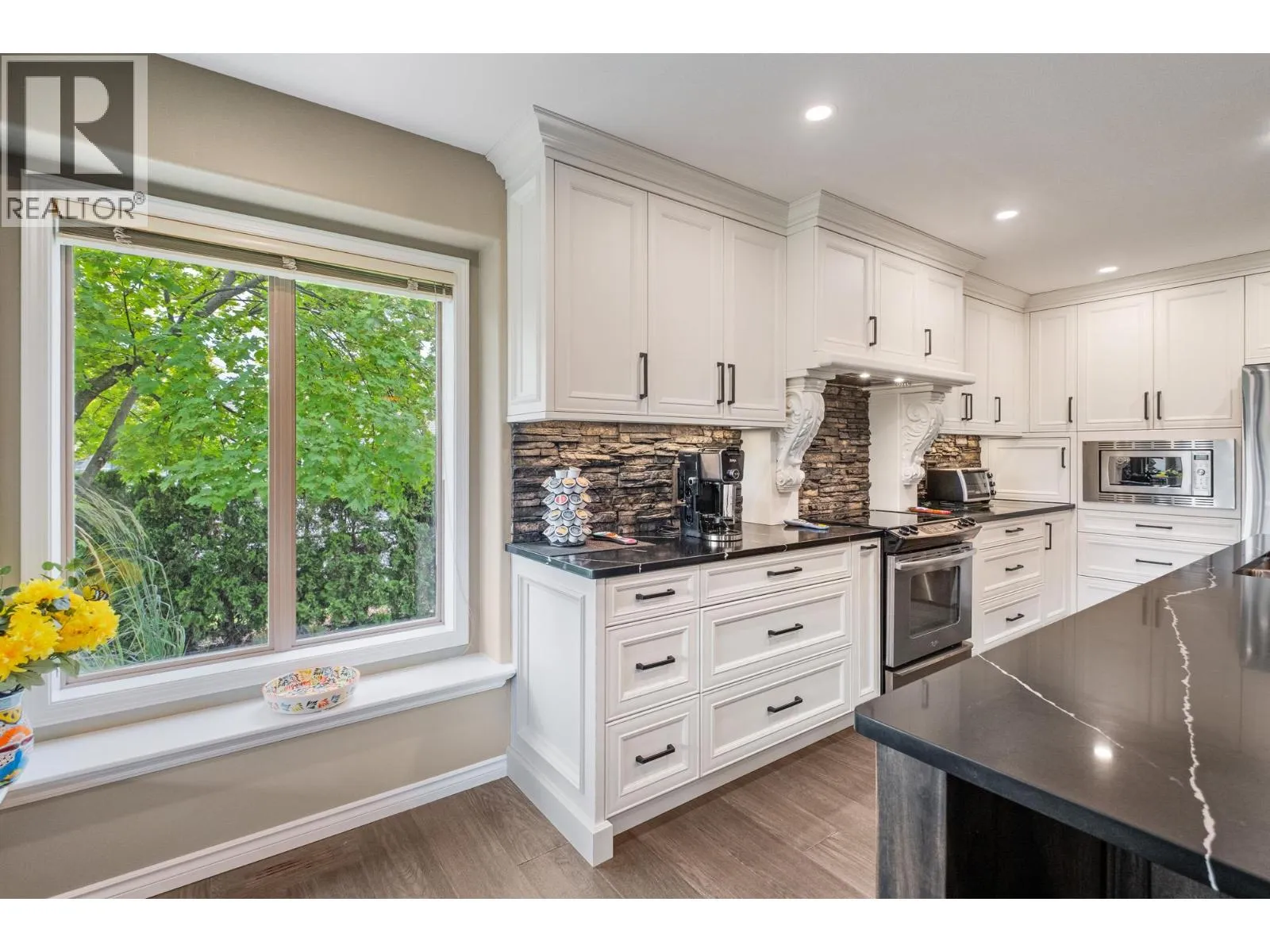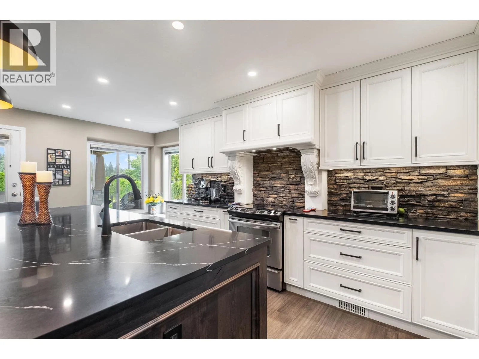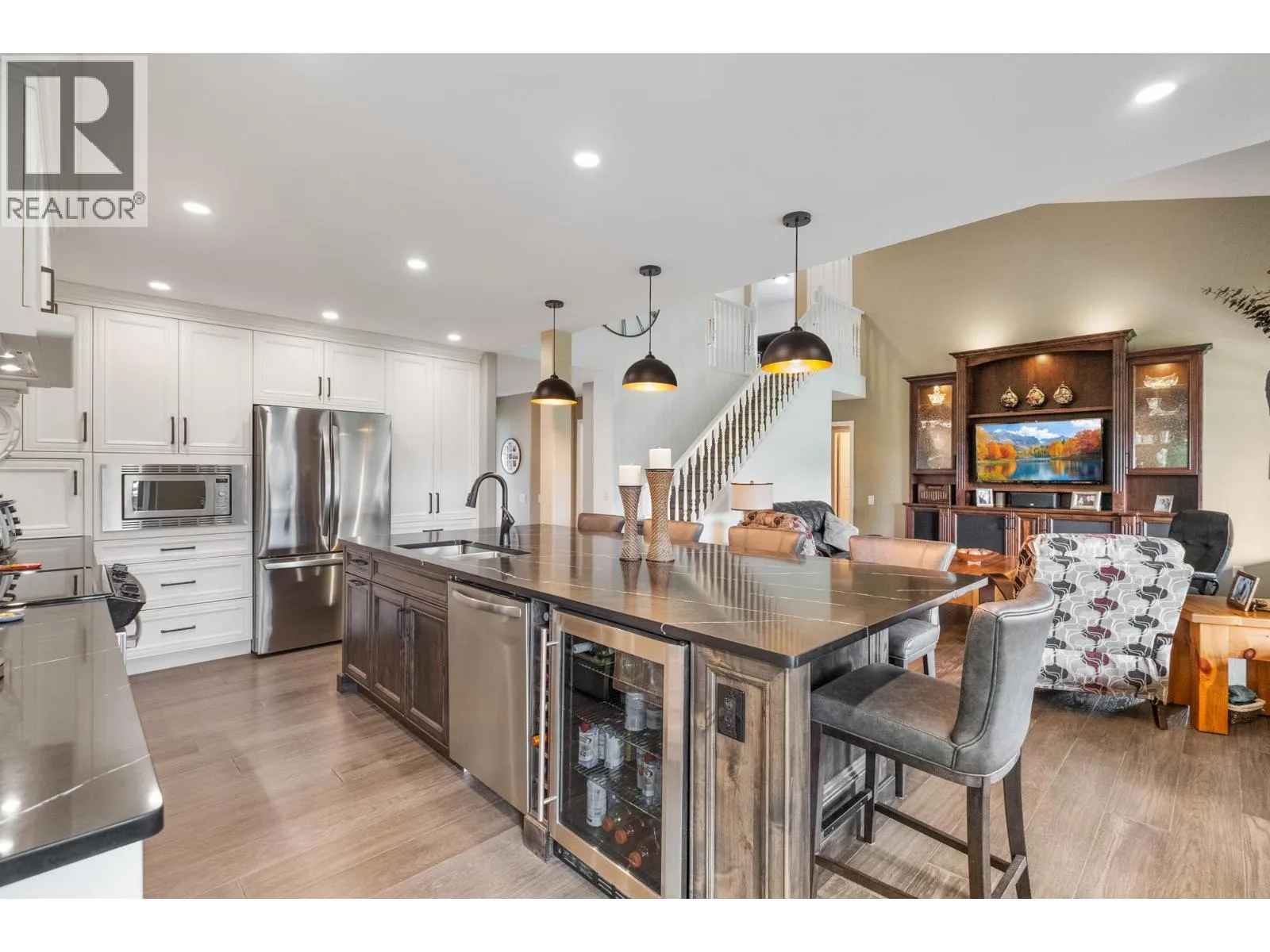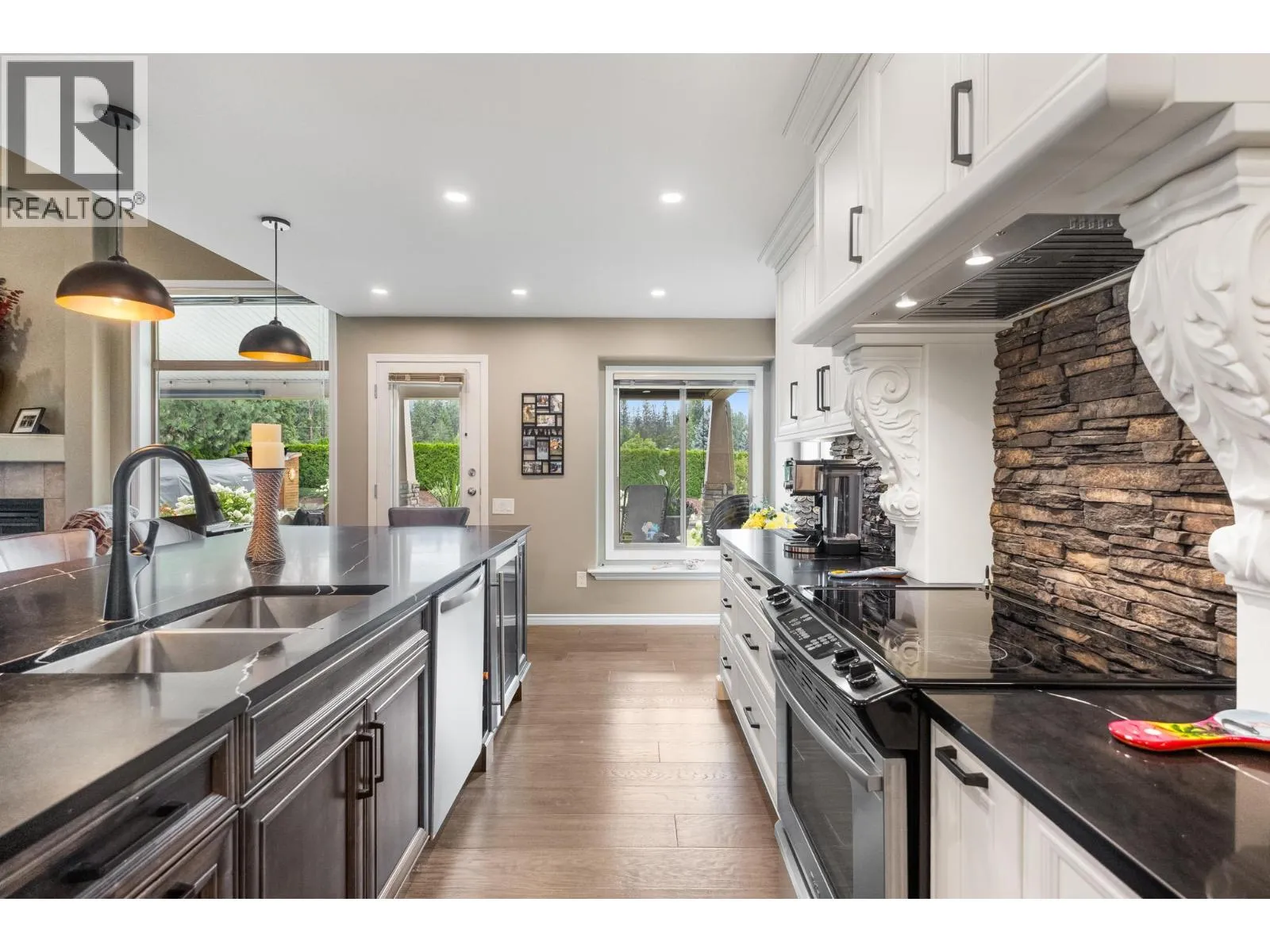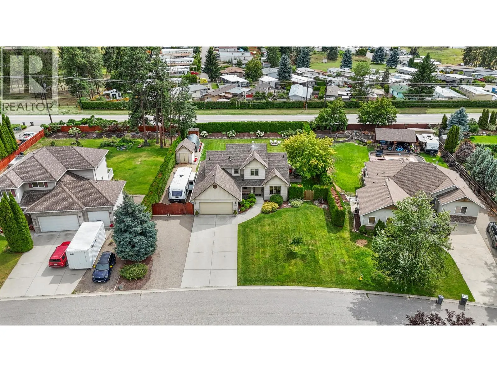 Discover the charm of Southeast Kelowna from this beautifully updated family home, perfectly tucked away on a quiet cul-de-sac. Set on a generous .40-acre lot, thereâs ample space for all your toys, a future pool, or even an additional garage (with partial electrical already in place). A full cedar hedge surrounds the backyard, creating a private oasis where you can unwind in the hot tub beneath the stars or enjoy morning coffee on the large covered patio while the kids play. Inside, elegant updates stand out. The custom kitchen impresses with its oversized granite island, built-in cabinetry, and matching powder room. Wide plank hardwood flows throughout the main level, where a soaring living room features a striking built-in centerpiece and cozy gas fireplace. The main-floor primary suite offers tray ceilings and a spacious ensuite, while two upstairs bedrooms and a full bath are ideal for kids or guests. The lower level blends fun and functionâperfect for movie nights, games, and workouts in this roomy entertainment hub. This coveted neighborhood offers refined living just minutes from it allâ10â15 minutes to Okanagan Lake, Kelowna General Hospital, and Orchard Park Mall. Steps from Gallagherâs Canyon Golf Course, youâre close to dining, 18 holes, and local farm markets. Bike to Southeast Kelowna Elementary or reach downtown with ease from your private retreat. Donât miss the virtual tour! (id:27476)