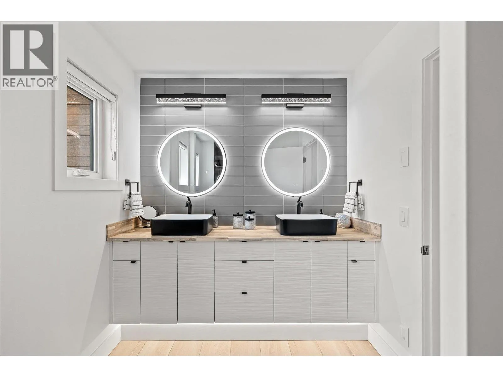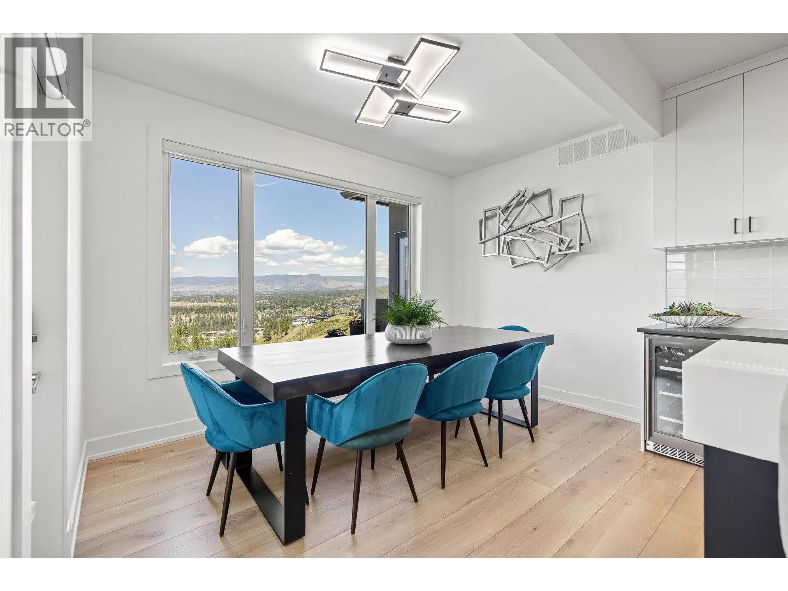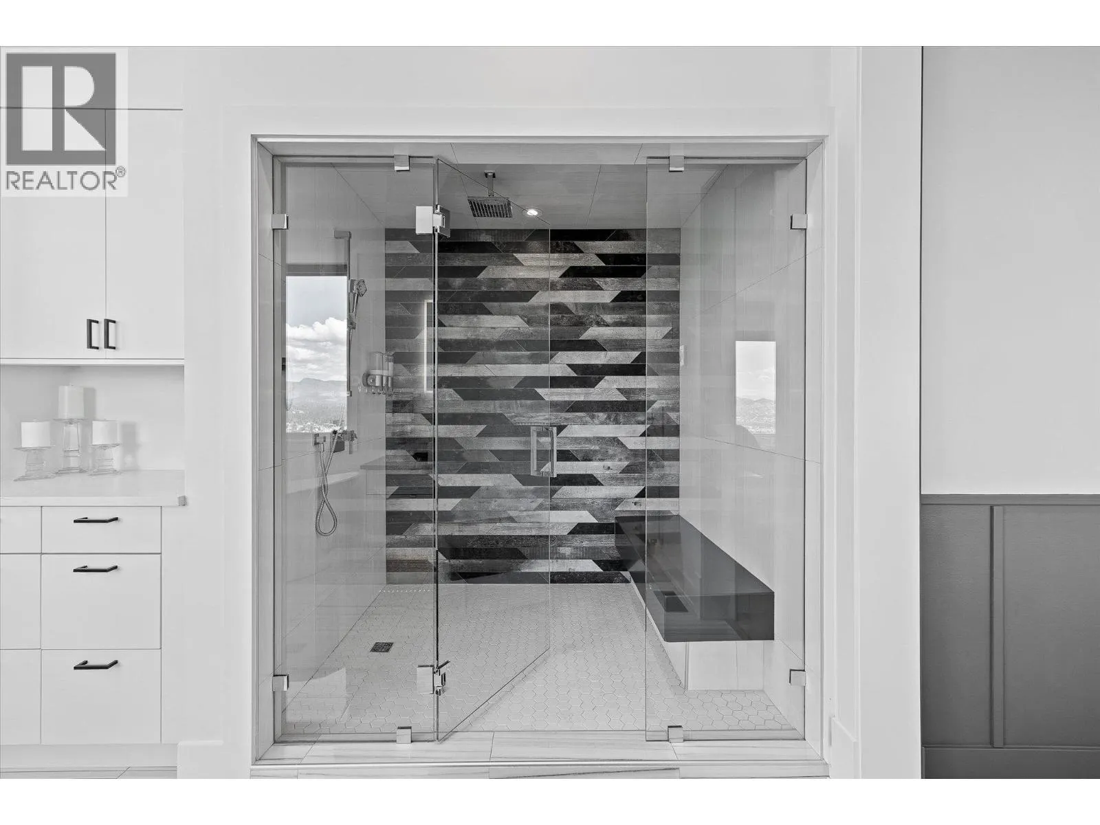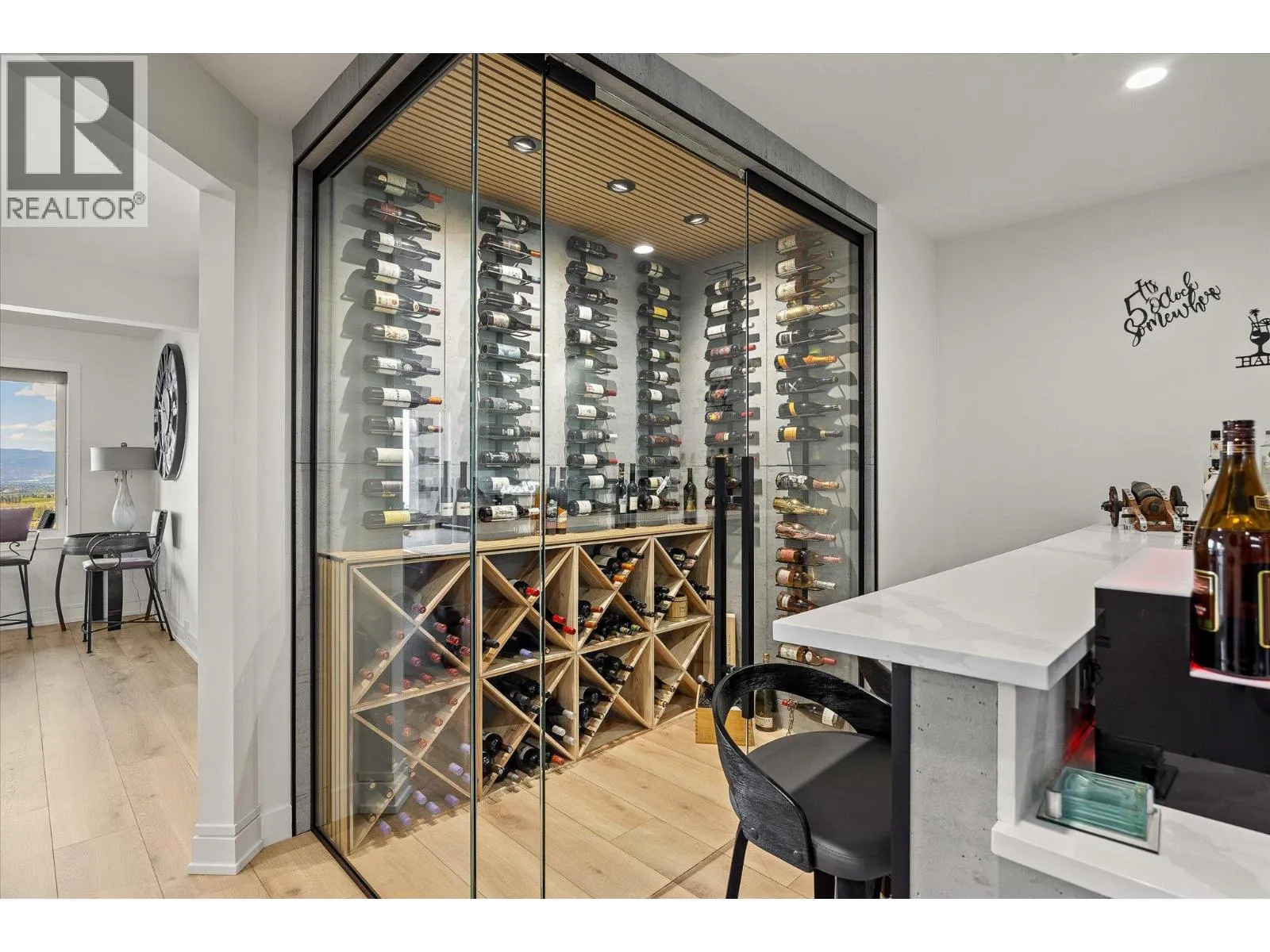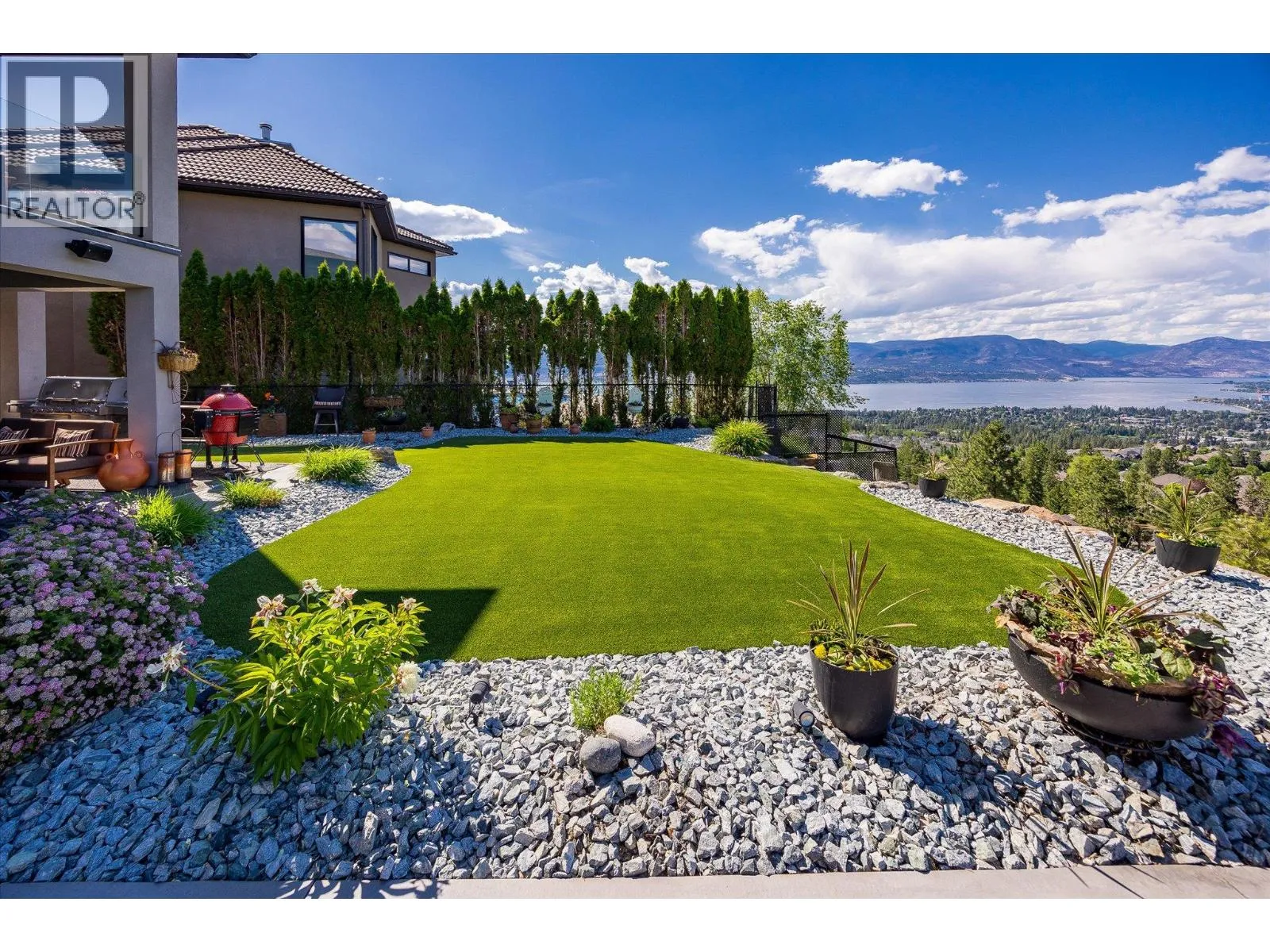 Welcome to this fully updated, exquisite 5 bedroom + den, 4 bathroom home, where no detail has been overlooked. As you step through the grand entrance, you are greeted by soaring vaulted ceilings and a chef's kitchen, complete with top-of-the line appliances and a butler's pantry. The heart of this home showcases breathtaking 180-degree vistas, seeing all of Kelowna, creating a mesmerizing backdrop for everyday living. The opulent primary suite is tucked away in a private corner of the main floor, offering a tranquil sanctuary with stunning lake views and a spa- like ensuite. Two additional generously sized bedrooms are located upstairs, providing ample space and privacy for family and guests. The lower walk-out level is an entertainer's paradise, featuring a sophisticated whiskey tasting room, an exquisite wine cellar, a stylish bar, a spacious rec room, and a state-of-the-art theatre room. This level seamlessly transitions to a private backyard and pool area, where the panoramic views are simply unmatched. Completing this magnificent property are four garage spots, including a double garage and a tandem garage, equipped with EV charging and ample space for a boat or RV. With plenty of parking, convenience and luxury are ensured at every turn. This home combines elegance, functionality, and breathtaking scenery, making it a true masterpiece. (id:27476)