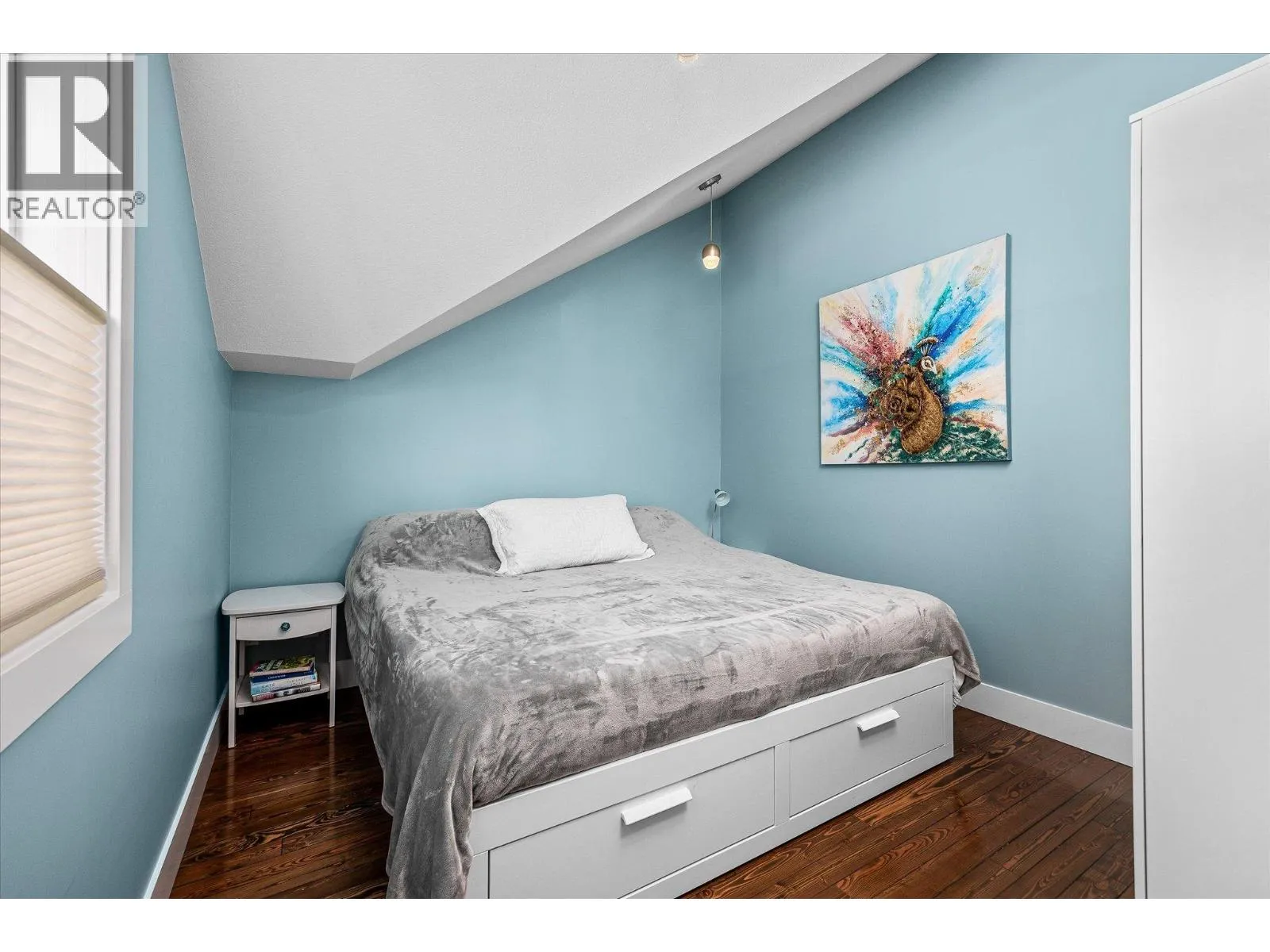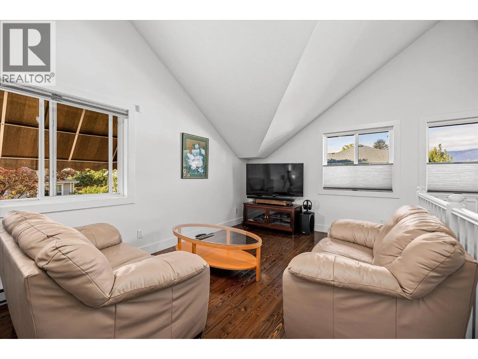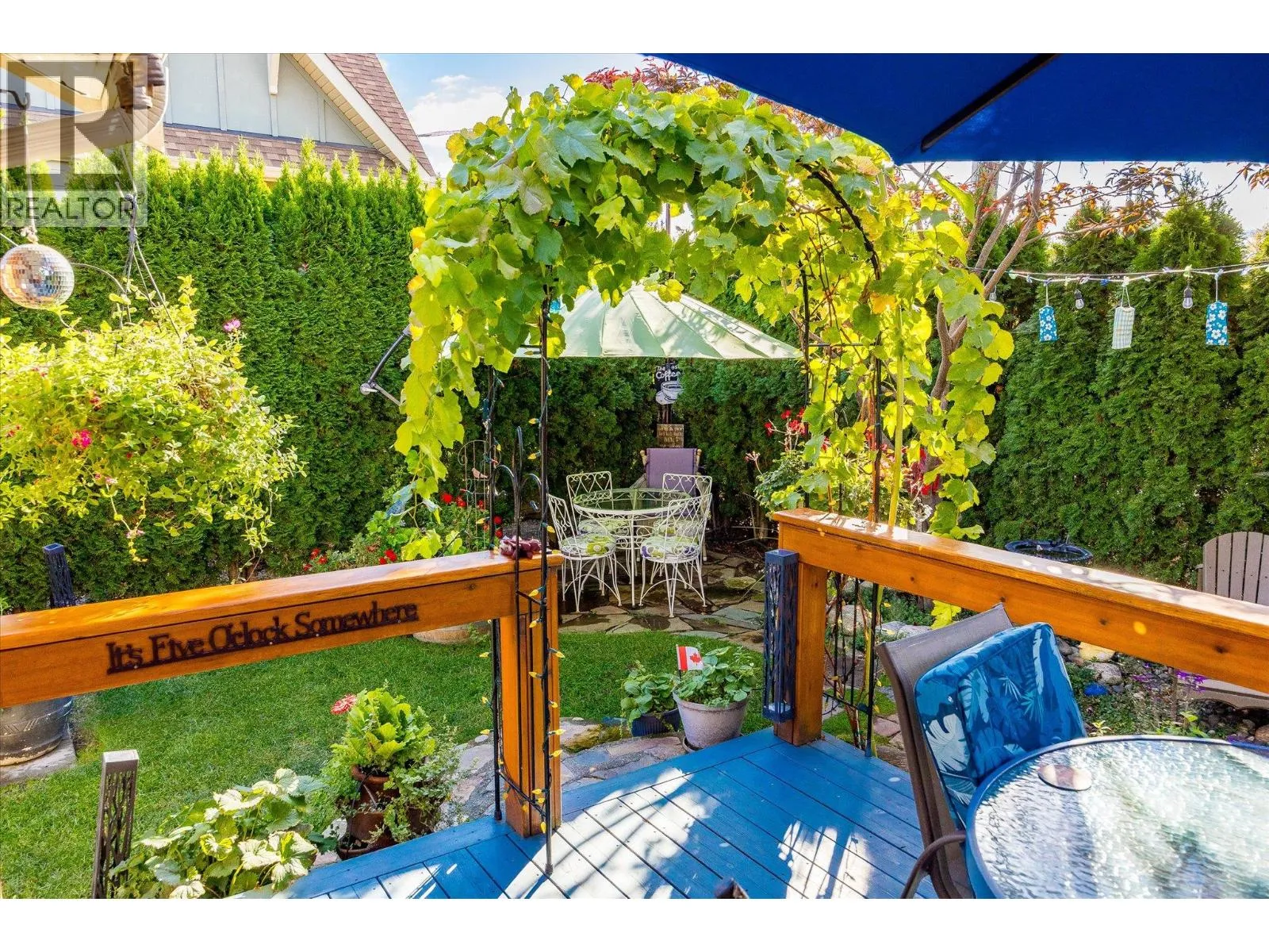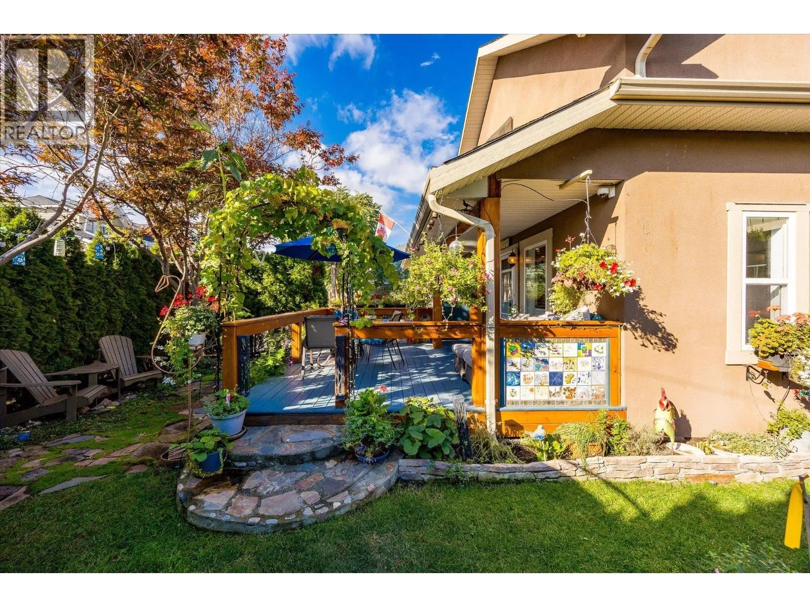 Tucked away on a quiet street in the heart of Kelowna South, this one-owner home blends comfort, convenience, and thoughtful updates. Step inside to a bright, welcoming main level featuring a modernized kitchen, cozy living area, and a main-floor primary bedroom with easy access to the updated bathroom. Upstairs, two bedrooms and a full bath offer flexibility for family, guests, or a home office. The upper level feels open and airy with its vaulted ceilings and abundant natural light. Outside, enjoy multiple outdoor spaces designed for both relaxation and entertaining - a south-facing deck off the main living area for sunny afternoons, and another private deck with a hot tub tucked quietly away in the back. A fully fenced yard, garden beds, and a two-car driveway with lane access add everyday functionality and rare convenience in this sought-after neighbourhood. Ideally located within walking distance to schools, coffee shops, local markets, and Kelownaâs best bike routes, this well-maintained home offers a welcoming lifestyle in one of the cityâs most loved communities. (id:27476)
