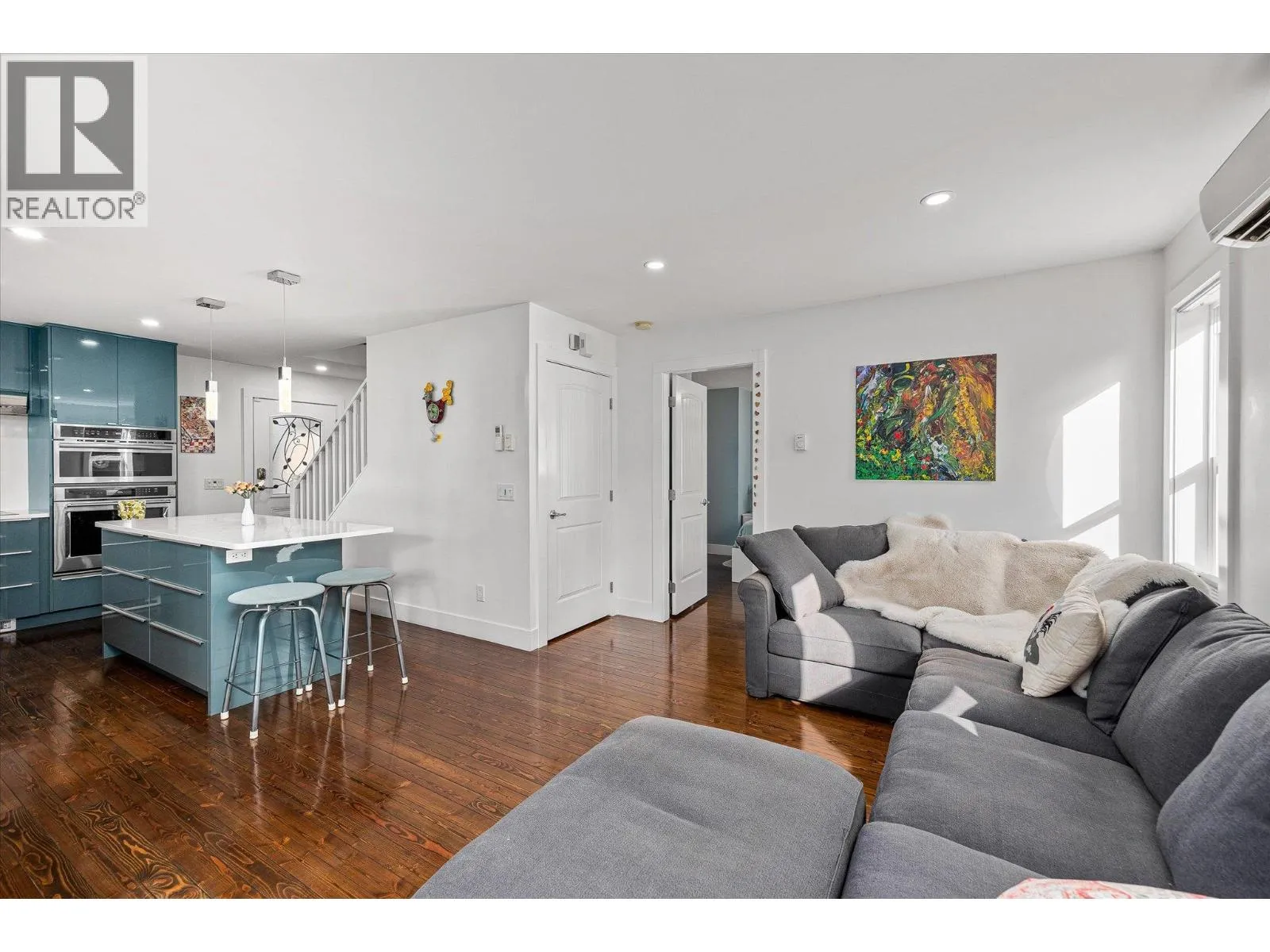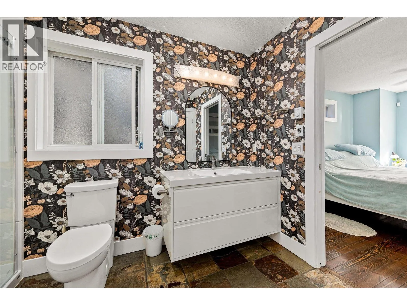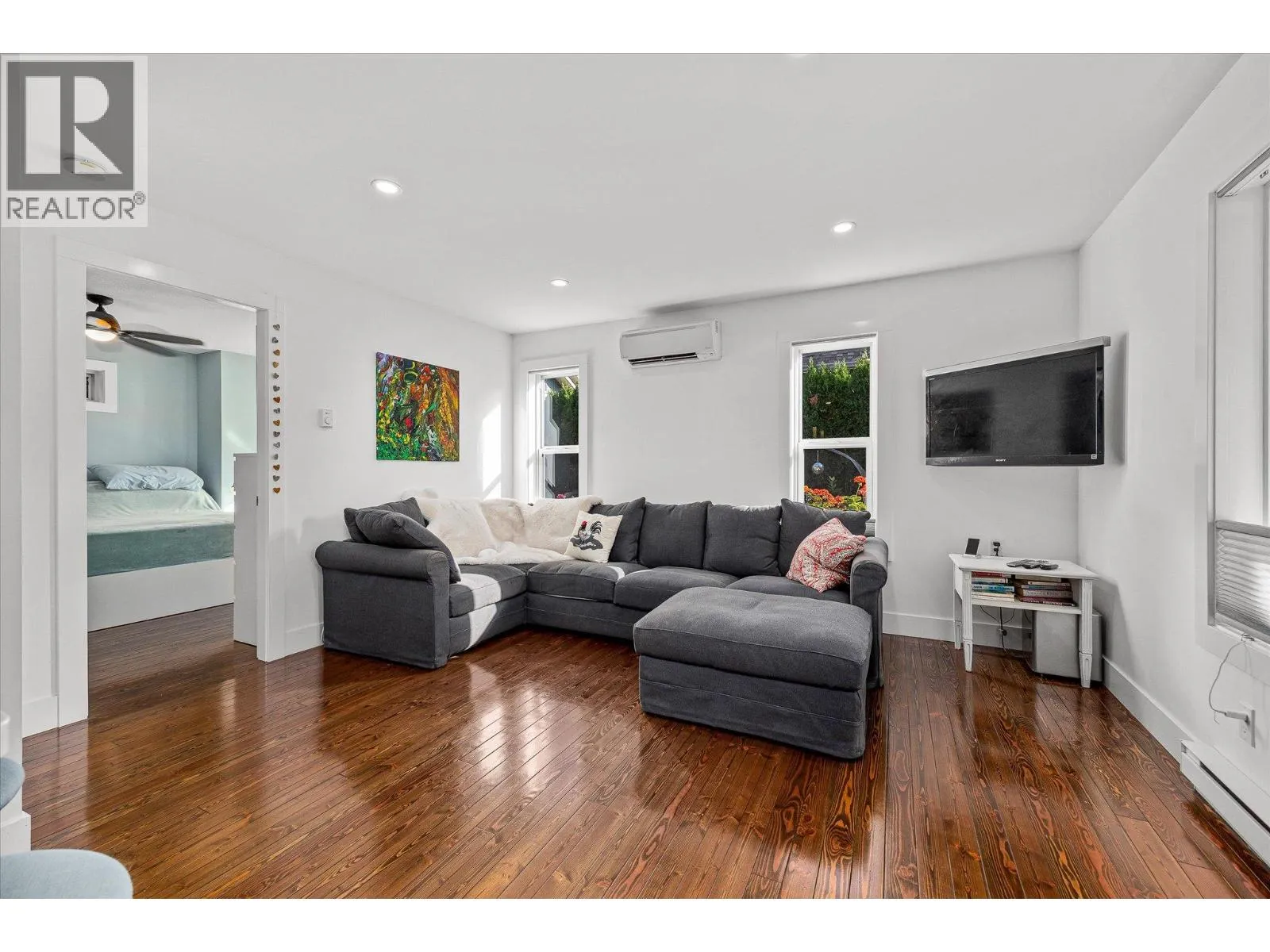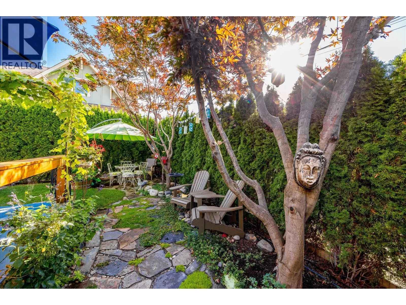 Tucked away on a quiet street in the heart of Kelowna South, this one-owner home blends comfort, convenience, and thoughtful updates. Step inside to a bright, welcoming main level featuring a modernized kitchen, cozy living area, and a main-floor primary bedroom with easy access to the updated bathroom. Upstairs, two bedrooms and a full bath offer flexibility for family, guests, or a home office. The upper level feels open and airy with its vaulted ceilings and abundant natural light. Outside, enjoy multiple outdoor spaces designed for both relaxation and entertaining - a south-facing deck off the main living area for sunny afternoons, and another private deck with a hot tub tucked quietly away in the back. A fully fenced yard, garden beds, and a two-car driveway with lane access add everyday functionality and rare convenience in this sought-after neighbourhood. Ideally located within walking distance to schools, coffee shops, local markets, and Kelownaâs best bike routes, this well-maintained home offers a welcoming lifestyle in one of the cityâs most loved communities. (id:27476)