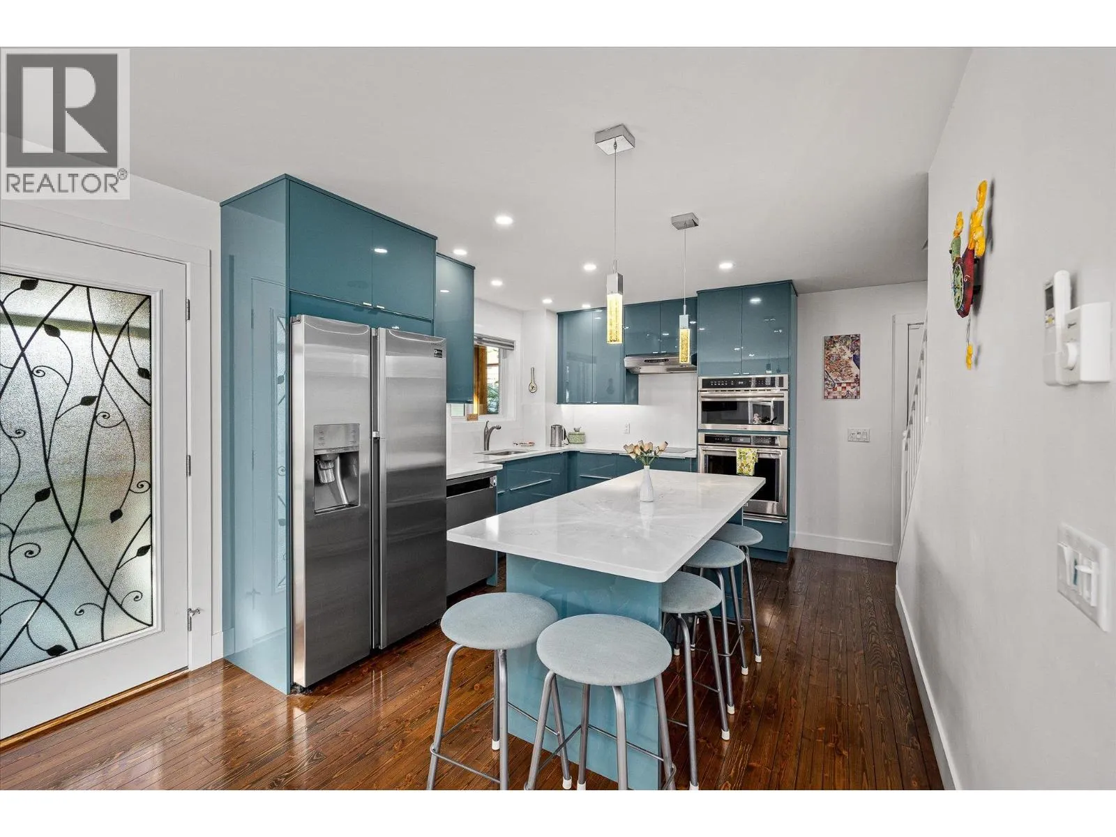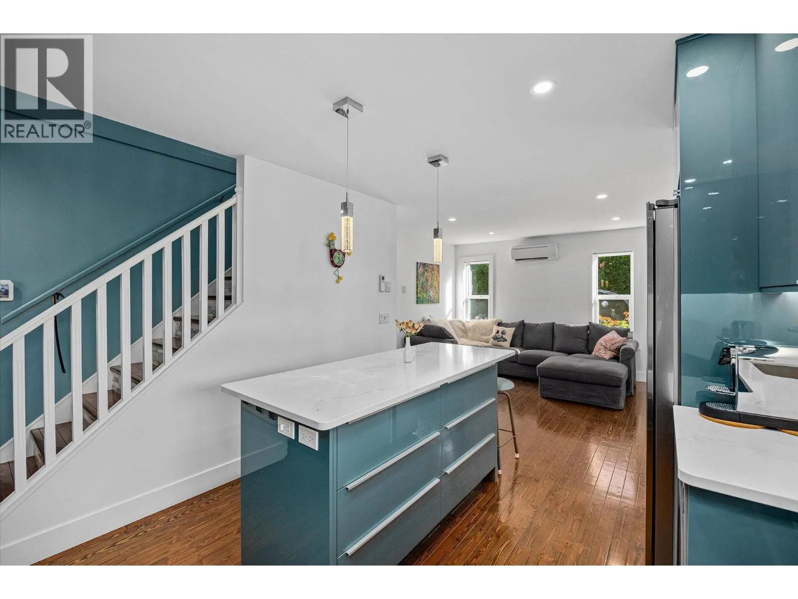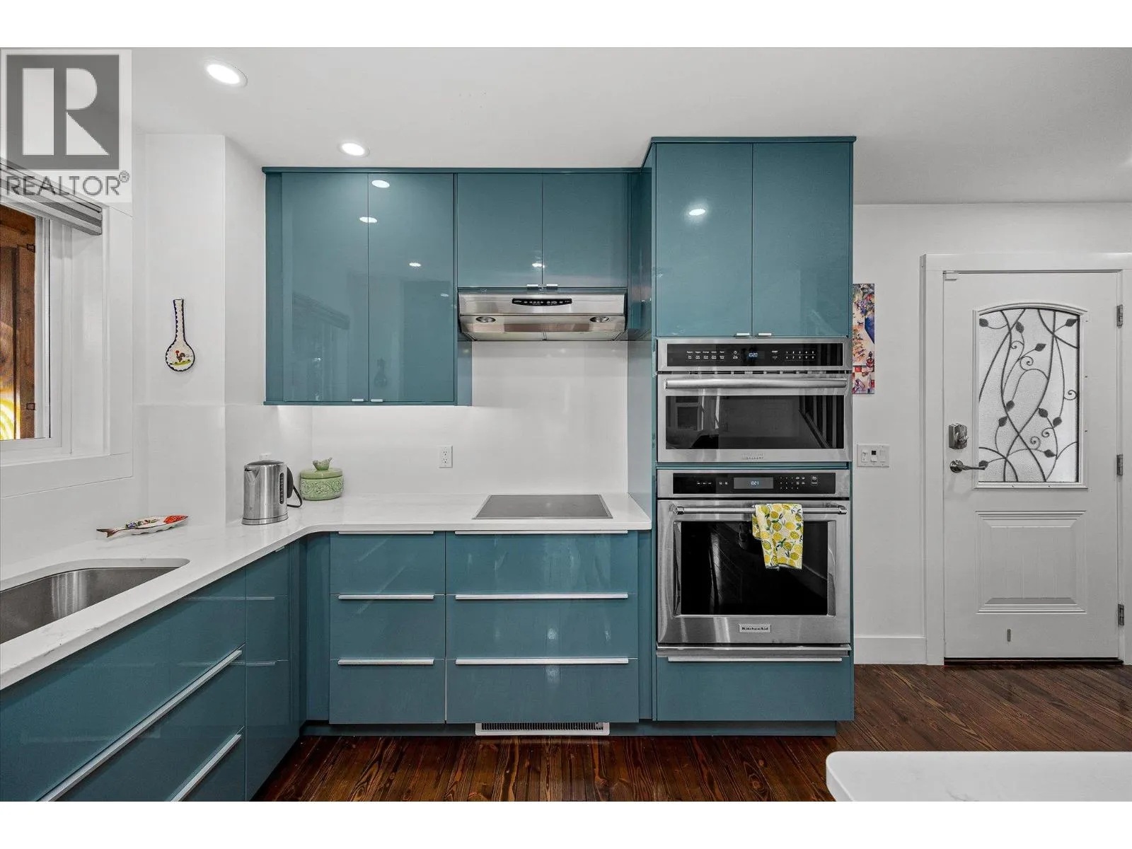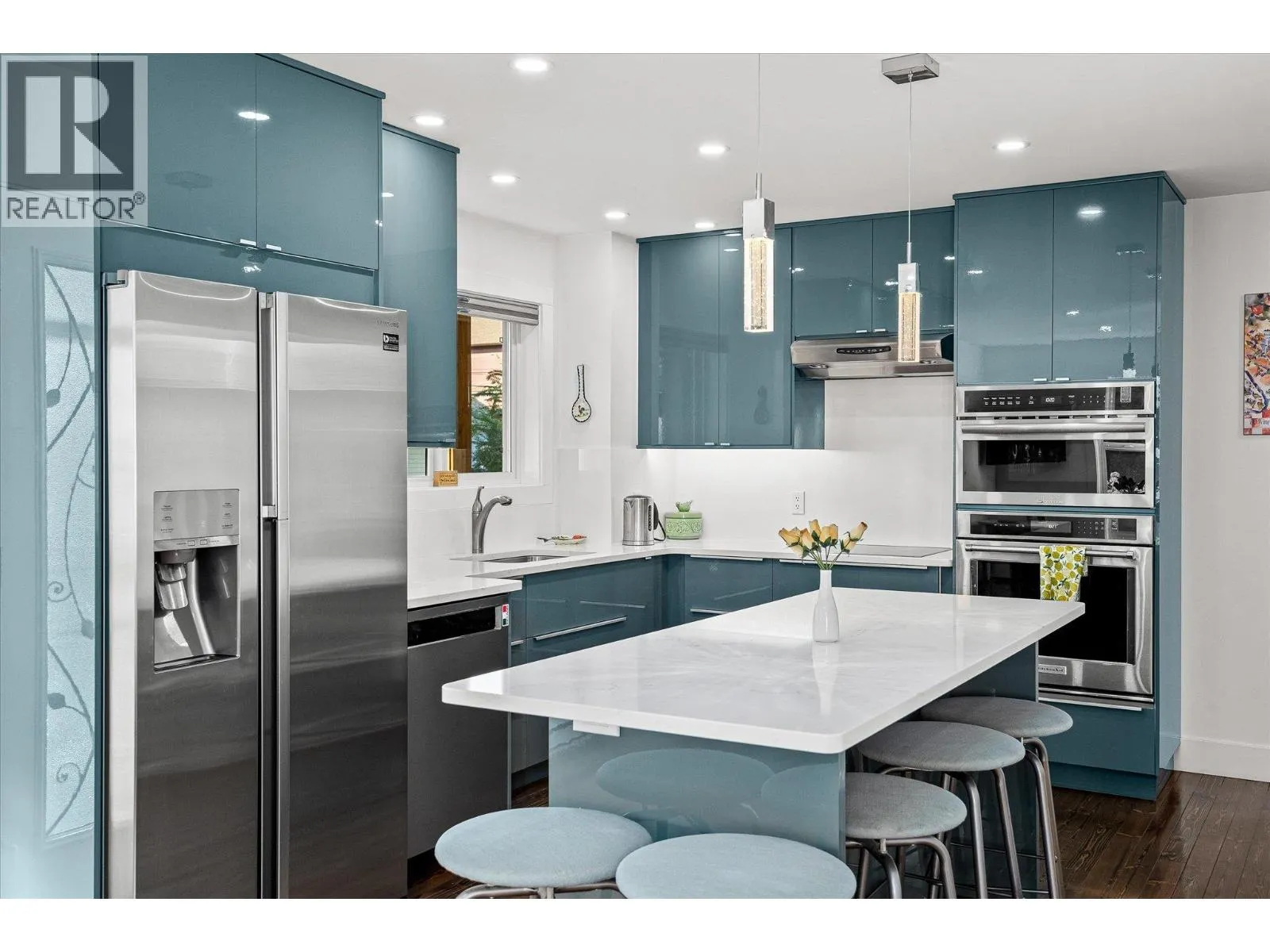 Tucked away on a quiet street in the heart of Kelowna South, this one-owner home blends comfort, convenience, and thoughtful updates. Step inside to a bright, welcoming main level featuring a modernized kitchen, cozy living area, and a main-floor primary bedroom with easy access to the updated bathroom. Upstairs, two bedrooms and a full bath offer flexibility for family, guests, or a home office. The upper level feels open and airy with its vaulted ceilings and abundant natural light. Outside, enjoy multiple outdoor spaces designed for both relaxation and entertaining - a south-facing deck off the main living area for sunny afternoons, and another private deck with a hot tub tucked quietly away in the back. A fully fenced yard, garden beds, and a two-car driveway with lane access add everyday functionality and rare convenience in this sought-after neighbourhood. Ideally located within walking distance to schools, coffee shops, local markets, and Kelownaâs best bike routes, this well-maintained home offers a welcoming lifestyle in one of the cityâs most loved communities. (id:27476)