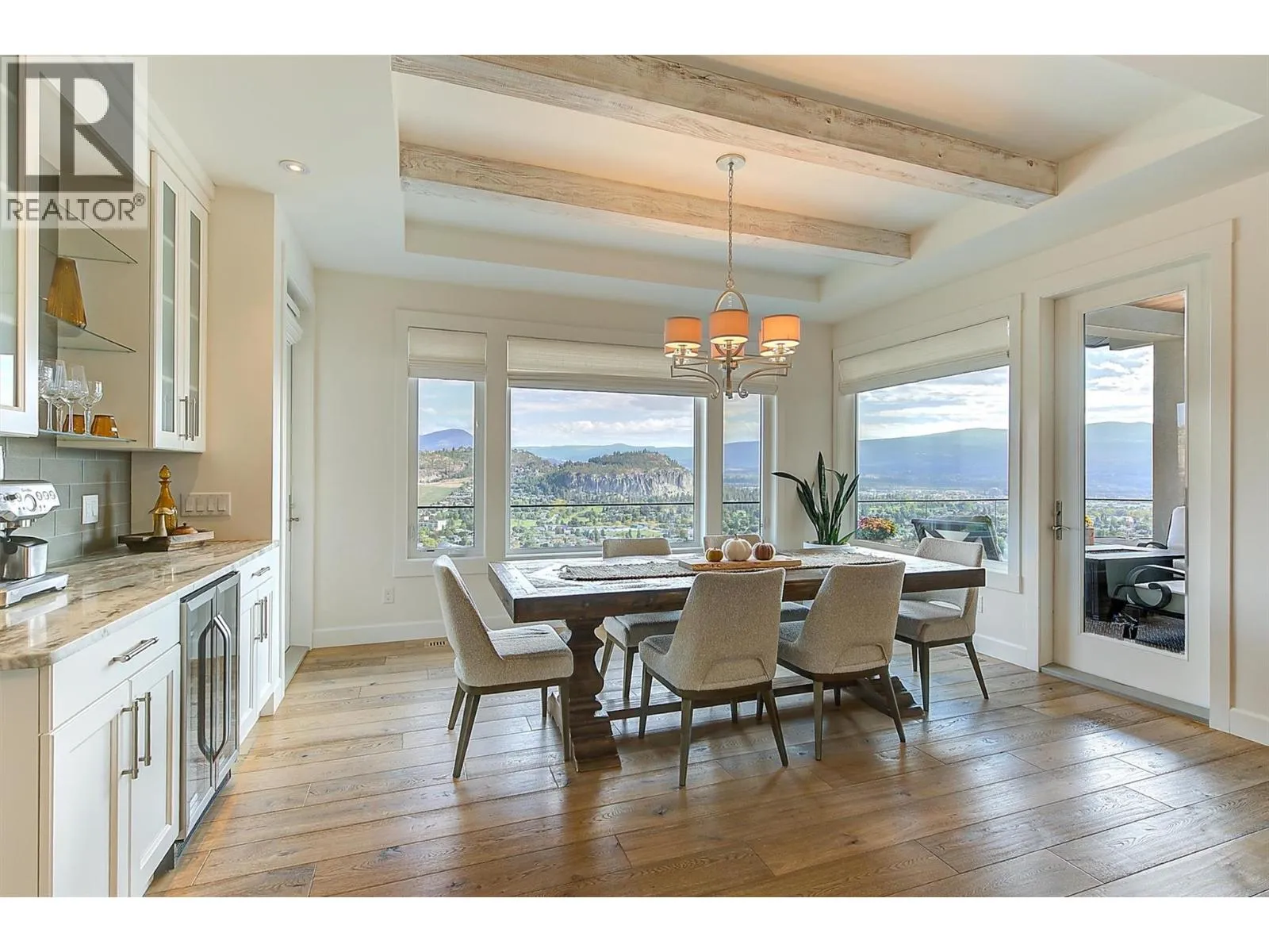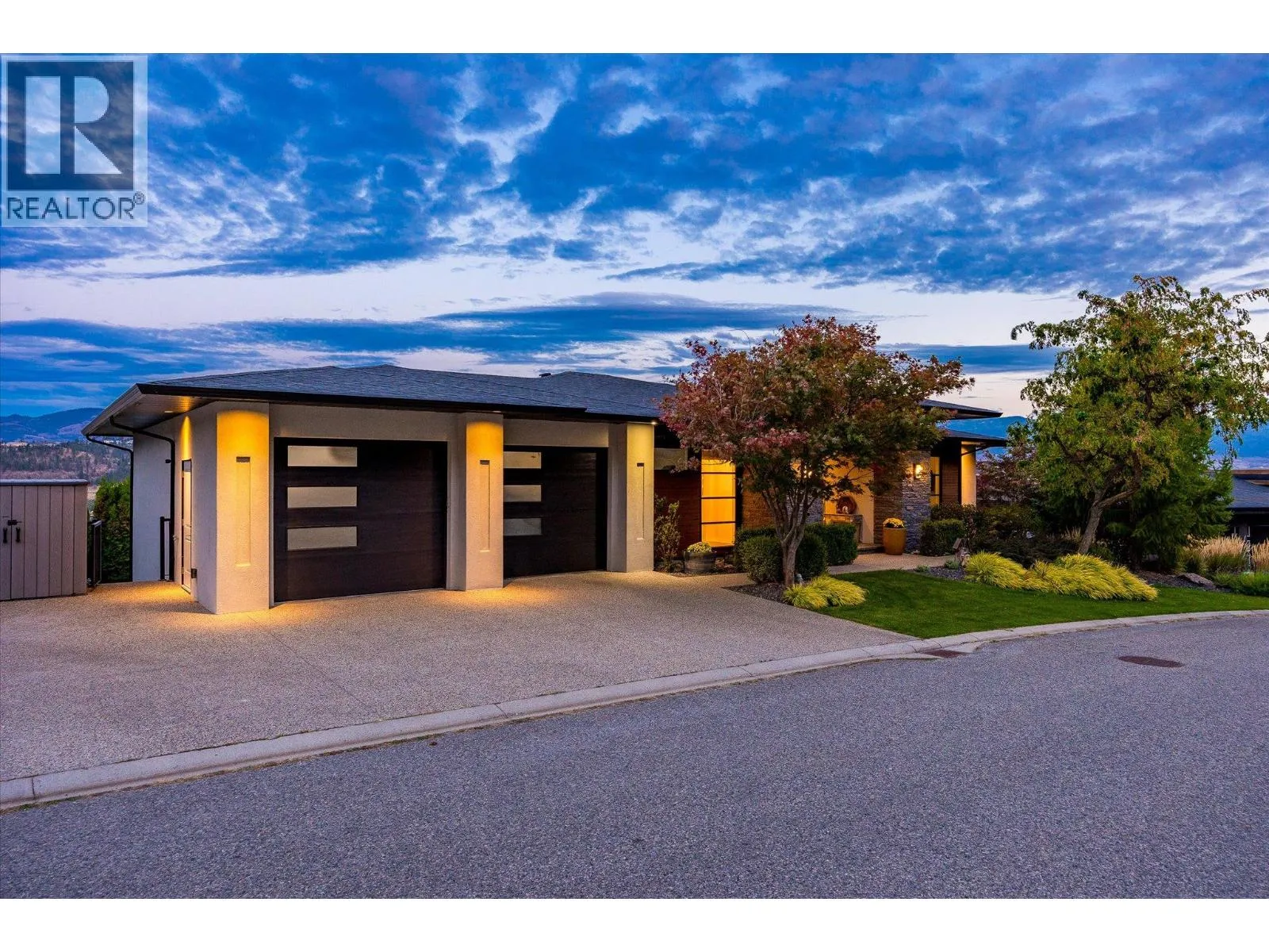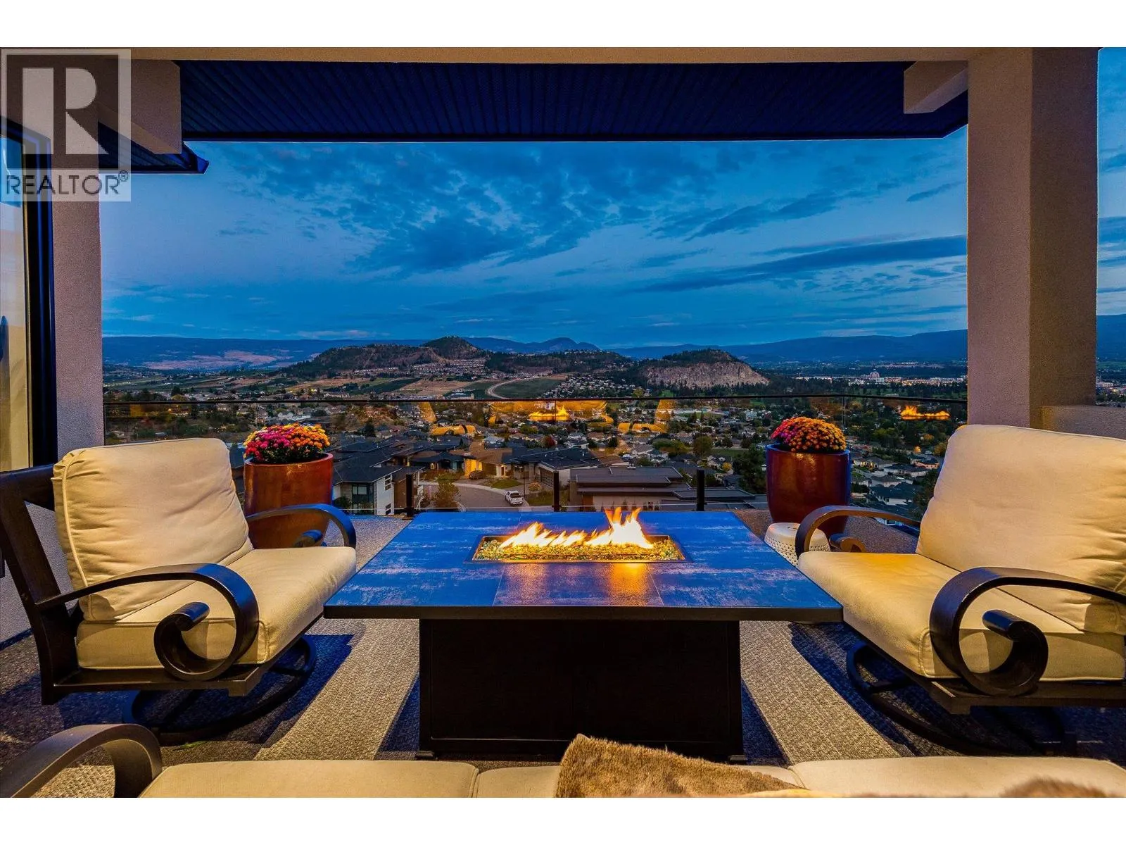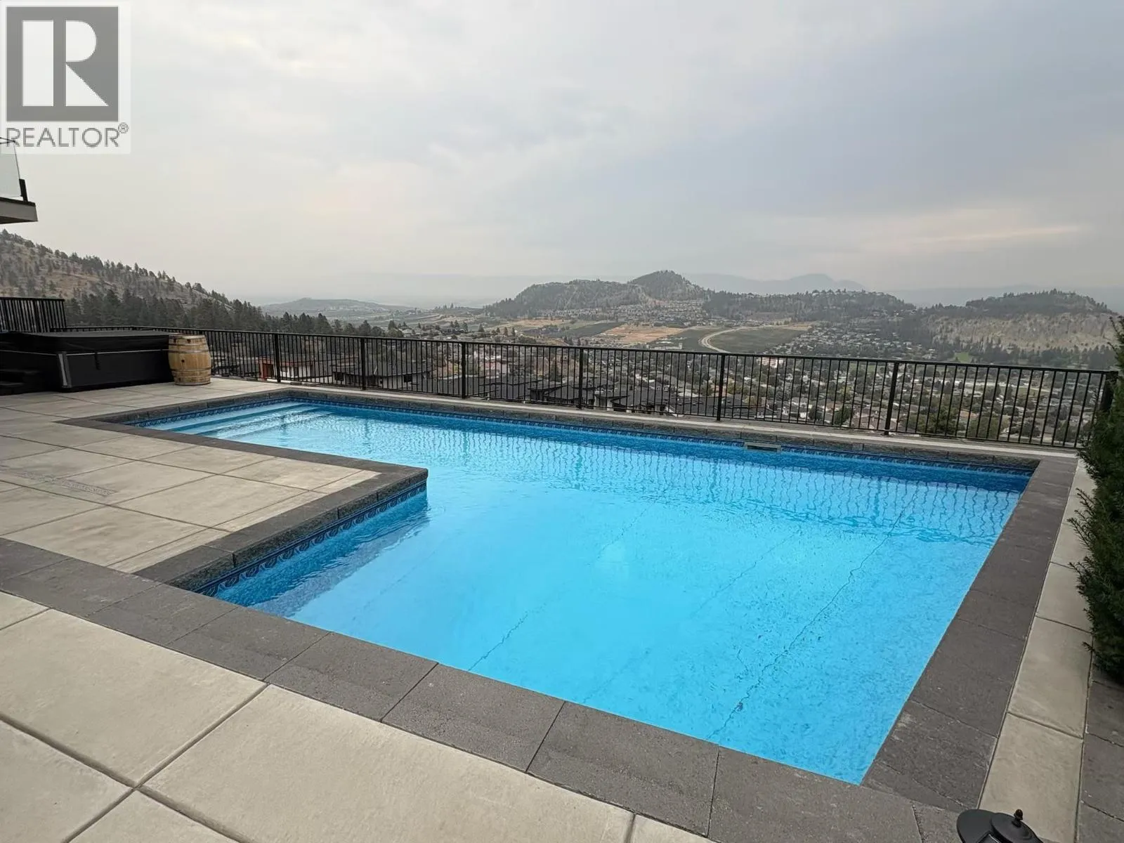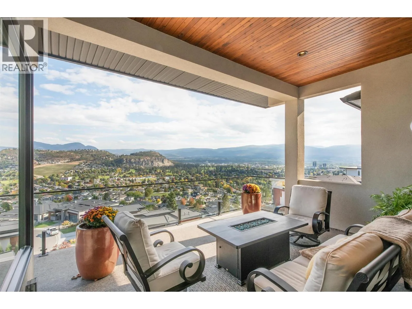 Experience elevated living in this beautifully crafted 5bdrm Rancher-style home with a walkout lower level, steps from Knox Mountain. Located in the prestigious Highpointe neighbourhood, this residence embodies the Okanagan carefree lifestyle featuring breathtaking valley, mountain & city views and resort style living. The expansive main level showcases soaring ceilings, spacious foyer & great room featuring a statement fireplace, built-in millwork and wall-to-wall windows flooding the space with the spectacular views. Enjoy a chefâs kitchen w/premium appl., granite counters, large sit-up island, beverage bar, pantry a& built-in desk. The dining area w/seating for 8-10 is highlighted by beautiful wood-beam ceiling detail & opens to a covered patio overlooking the valley. The luxe primary suite features a walk-in closet & a spa-inspired ensuite w/heated floors, soaker tub & custom tile step-in shower. An additional bdrm with cheater-ensuite +laundry completes the main level. The lower level includes a summer kitchen, large living area, 3 bdrms, gym & additional laundry - ideal for guests, family/suite potential. Fall in love w/ the outdoor living area - a resort inspired L-shaped pool with new concrete decking, builtin fire tble, new hot tub & manicured landscaping. There's even a gated area for your pup! Bonus: the oversized dbl gar with suspended slab & room below + boat parking! Designed for low-maintenance living, this residence perfectly blends comfort, luxury & lifestyle (id:27476)