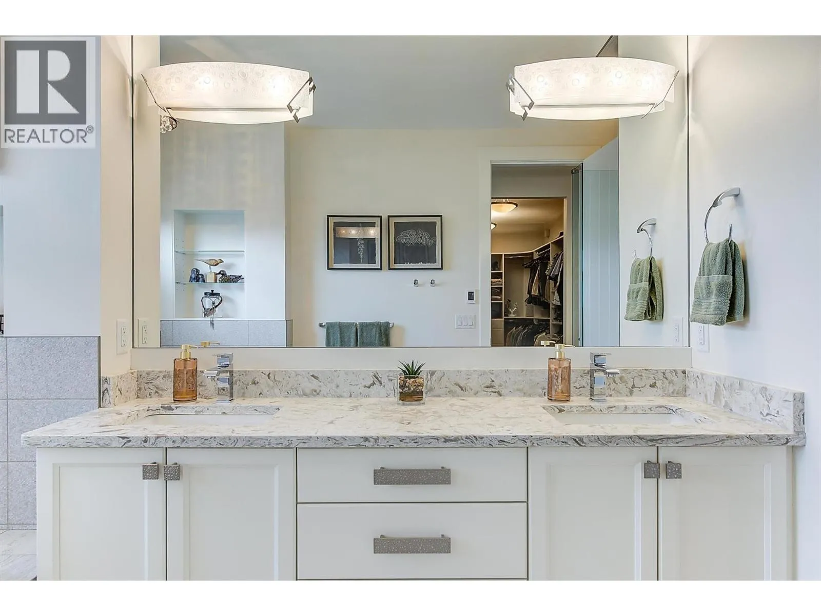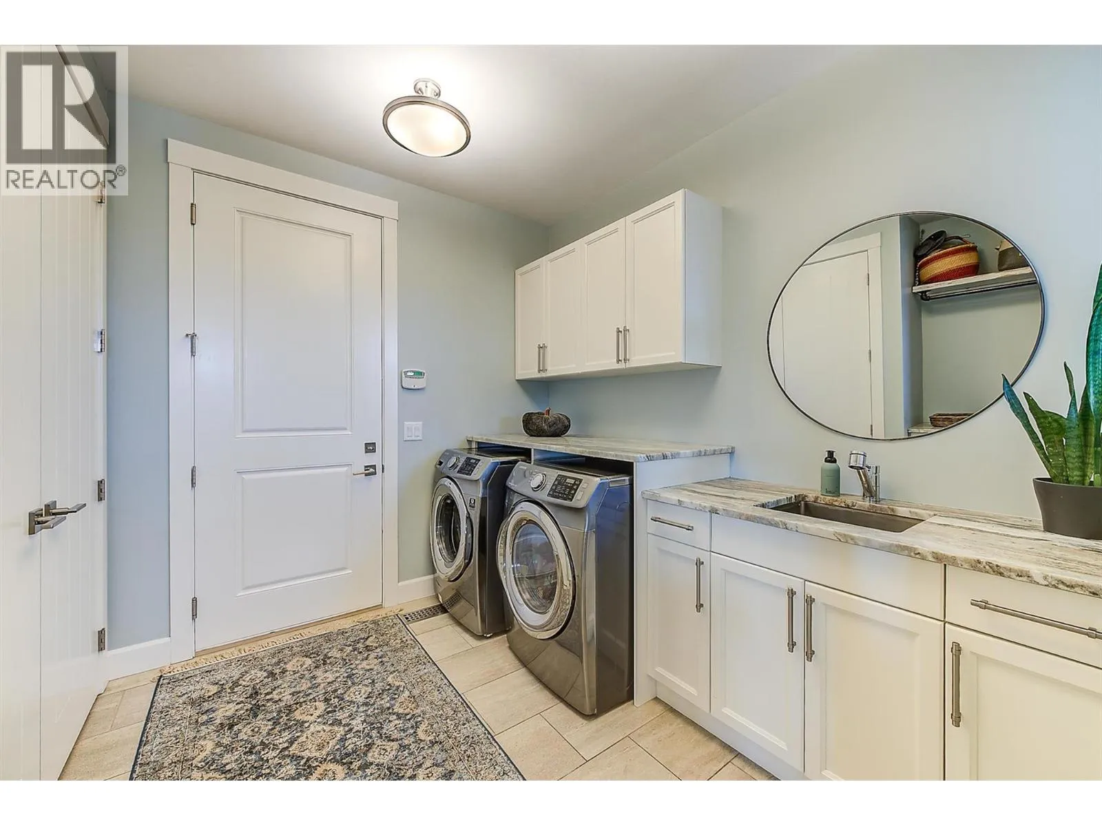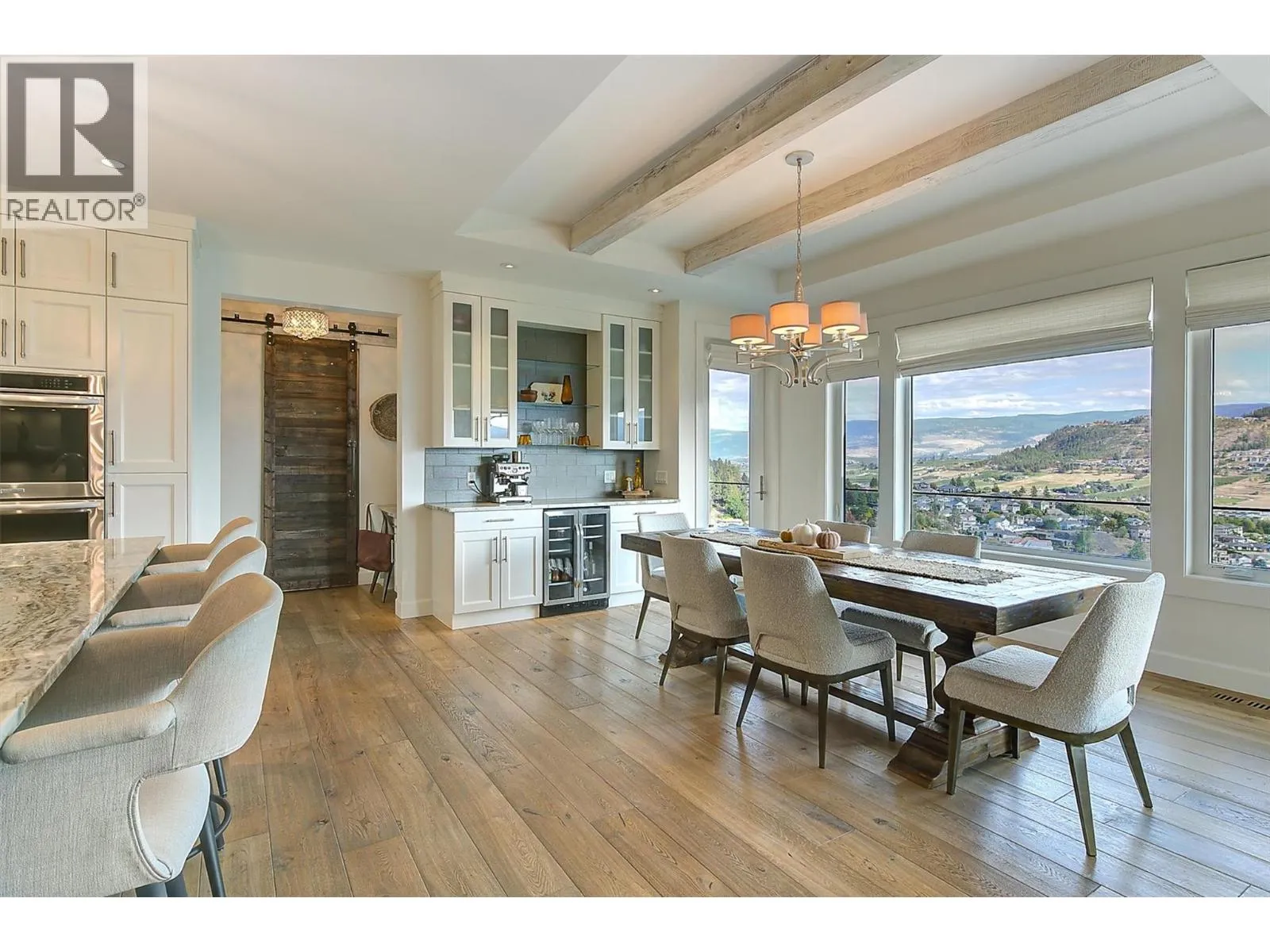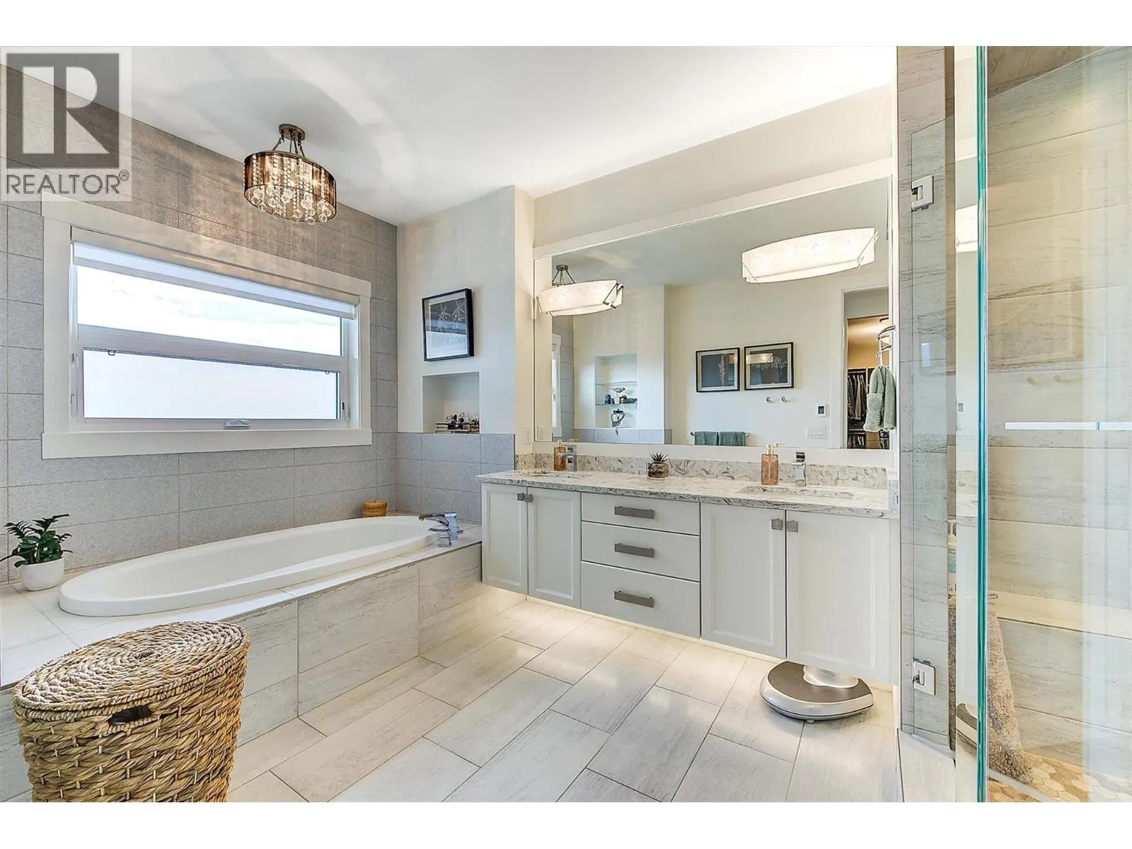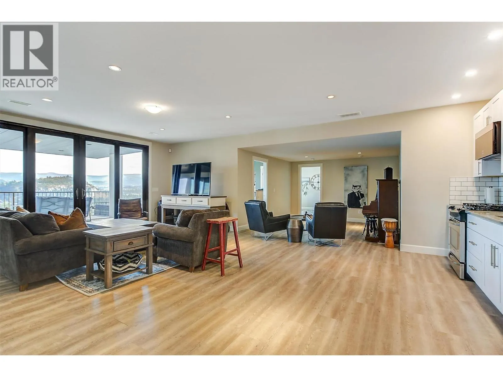 Experience elevated living in this beautifully crafted 5bdrm Rancher-style home with a walkout lower level, steps from Knox Mountain. Located in the prestigious Highpointe neighbourhood, this residence embodies the Okanagan carefree lifestyle featuring breathtaking valley, mountain & city views and resort style living. The expansive main level showcases soaring ceilings, spacious foyer & great room featuring a statement fireplace, built-in millwork and wall-to-wall windows flooding the space with the spectacular views. Enjoy a chefâs kitchen w/premium appl., granite counters, large sit-up island, beverage bar, pantry a& built-in desk. The dining area w/seating for 8-10 is highlighted by beautiful wood-beam ceiling detail & opens to a covered patio overlooking the valley. The luxe primary suite features a walk-in closet & a spa-inspired ensuite w/heated floors, soaker tub & custom tile step-in shower. An additional bdrm with cheater-ensuite +laundry completes the main level. The lower level includes a summer kitchen, large living area, 3 bdrms, gym & additional laundry - ideal for guests, family/suite potential. Fall in love w/ the outdoor living area - a resort inspired L-shaped pool with new concrete decking, builtin fire tble, new hot tub & manicured landscaping. There's even a gated area for your pup! Bonus: the oversized dbl gar with suspended slab & room below + boat parking! Designed for low-maintenance living, this residence perfectly blends comfort, luxury & lifestyle (id:27476)