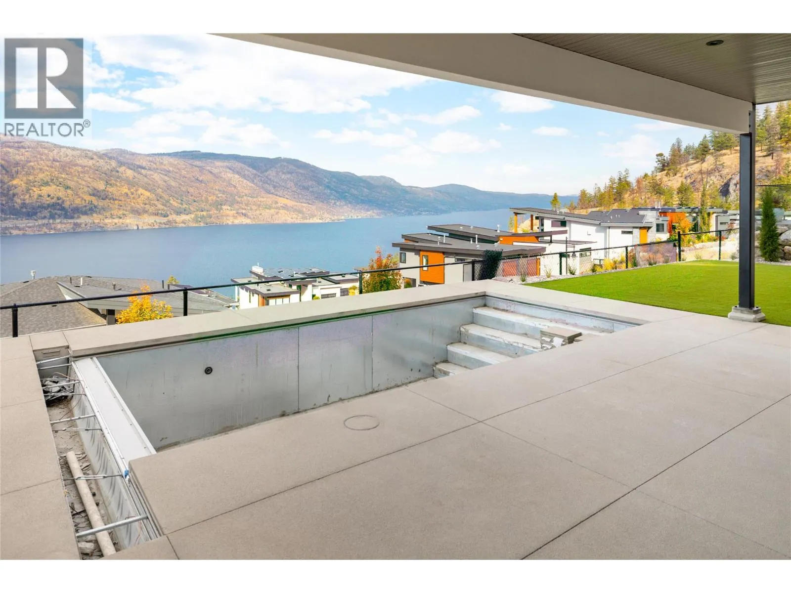 Stunning lake views from this nearly completed home on the most private street in North Clifton Estates. This 4110 square foot luxury home features a salt water pool with an auto cover, yard space, a 2.5 car garage, plus driveway space for 2 cars. Enjoy the quiet location beside the mountain with endless hiking trails, and yet still be only an 8 minute drive to Kelowna's lively downtown core. Featuring 4 bedrooms, 3.5 bathrooms and an office, this home will be open concept and have a modern organic feel. The home will have a climate controlled wine room, 2 fireplaces with custom finishes, soaring ceilings and hardwood floors on the main level. Extra luxuries include built in speakers, a security system, epoxy floors in the garage and a 2 zoned heating and cooling system. Professional landscaping will include a fenced yard, with room for garden boxes or extra space for the dogs and kids, and low maintenance, irrigated plantings with syn lawn- which means no mowing:) (id:27476)