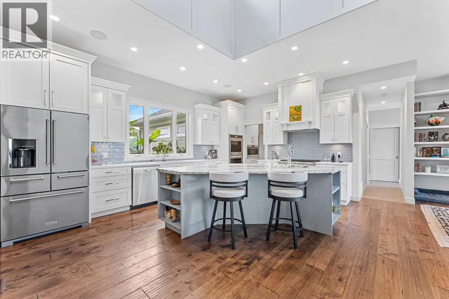 Beautiful 3.88-acre property in prime Southeast Kelowna features a working orchard with approximately 375 fruit trees which generates income to maintain farm status. Set on a private, gated property which includes mature landscaping, a paved driveway, and a 16 x 32 inground ozone pool with an electric cover and pool shed. This property offers panoramic valley, lake, city & mountain views! The main house is a spacious 3,463 sq. ft. rancher with lake and valley views. Inside, a gas fireplace serves as the focal point of the main living area with a sunroom that opens to the lakeview backyard and pool area. The modern kitchen boasts a large island with gas cooktop, stone countertops, dining area and vaulted ceilings. This sprawling rancher features 2 primary bedrooms with ensuites, custom closets, and large showers plus a third bedroom and home office. Attached is the oversized double garage plus a detached shop with a 4-bay garage, ideal for gym and /or workshop. Also featured is a Generac backup generator for added convenience. A 3-bay shed offers farm equipment storage or additional covered parking. A 2nd dwelling with private driveway and address, offering 1,136 sq. ft. with 3 bedrooms and 2 baths. This home is perfect as a rental or for extended family. Located just 7 minutes from downtown Kelowna, this property truly offers rural tranquility with easy access to everything Kelowna has to offer! A rare opportunity for country living with agricultural income. (id:27476)