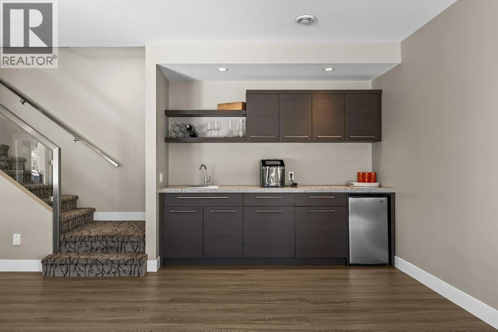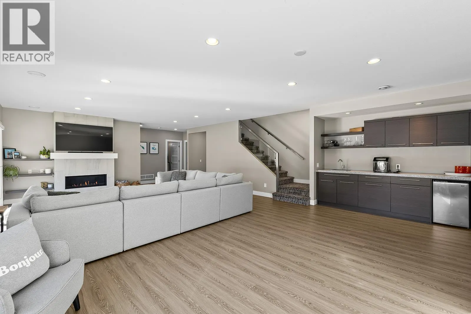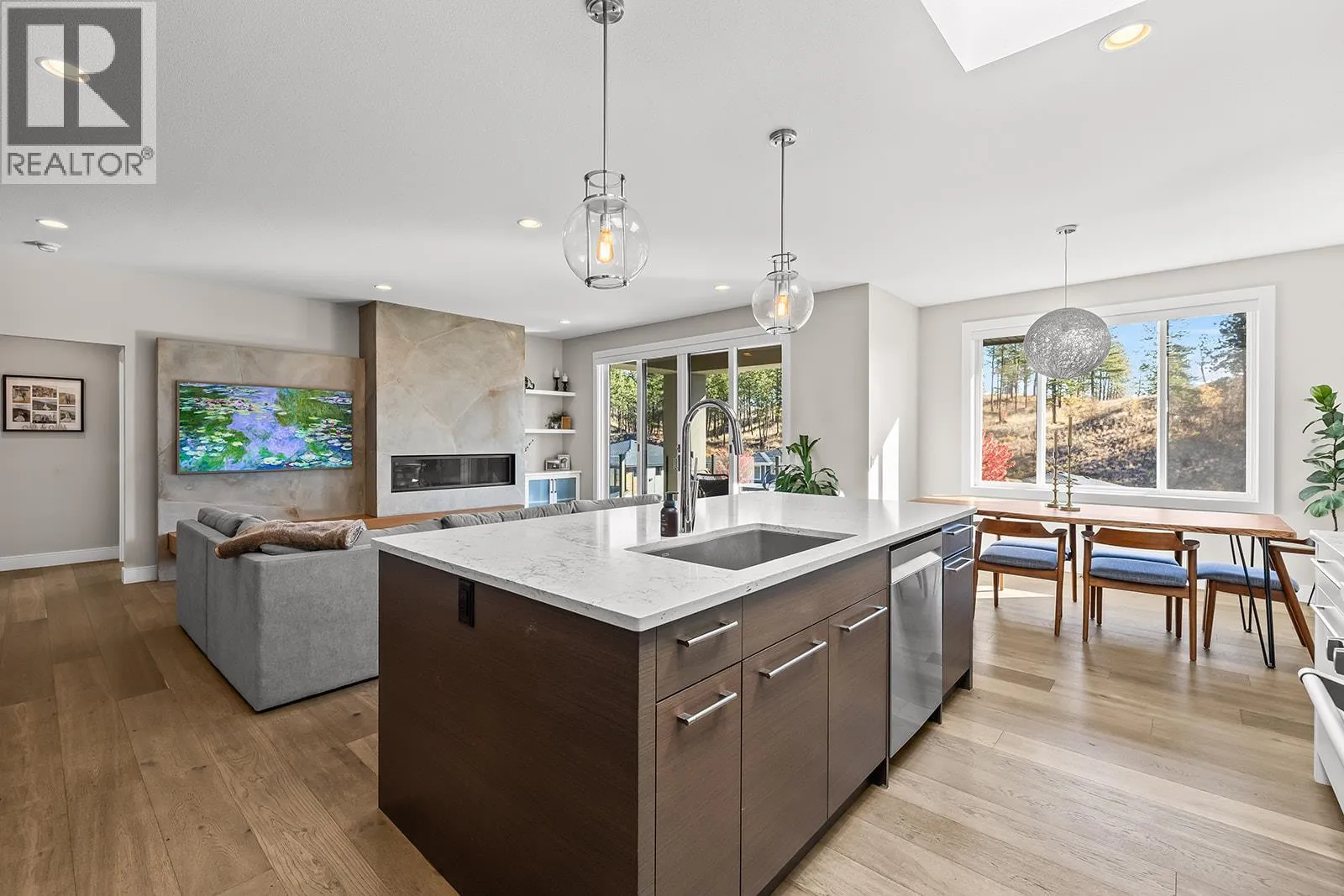 Welcome to your own private oasis with a pool, in the prestigious Wilden community. This modern residence sits on a quiet cul-de-sac, next to peaceful nature trails. Step inside to find wide plank oak flooring and an inviting living area highlighted by a stunning stamped concrete feature wall with a gas fireplace. The entertainers kitchen includes an oversized gas stove, quartz countertops, and a butlerâs pantry for added storage. Perfect for gatherings, the kitchen is open to the dining room, living room and to the covered deck with a built-in heater so you can enjoy outdoor living well into the cooler months. The primary bedroom is spacious, while the connected ensuite evokes the feeling of a Scandinavian spa, featuring double vanities, soaker tub, walk-in shower, and a full walk-in closet with custom shelving. You'll find closets throughout the home include custom built-ins for organized living. Downstairs, the walk-out opens to a private salt water pool oasis, complete with a new pool liner, new winter and summer pool covers, a pool shed for accessories, & a custom concrete gas fire pit surrounded by a lounging area and outdoor TV. There's also 2 more bedrooms & a den! The 2 car garage has added electric heat & built in shelving. There is also a separate entrance to the lower level (suite potential). Set on a quiet street, this property offers quick access to schools, parks, hiking trails, the airport & Downtown, all while providing a private retreat surrounded by nature (id:27476)