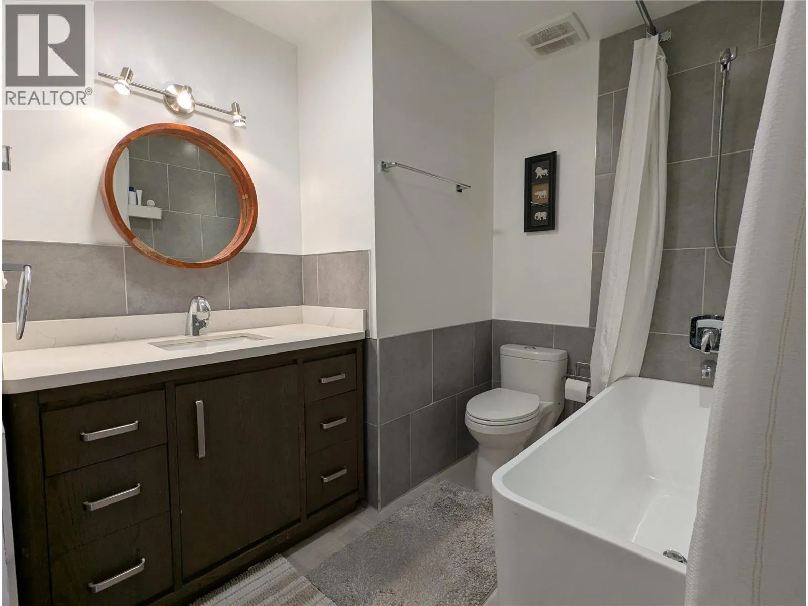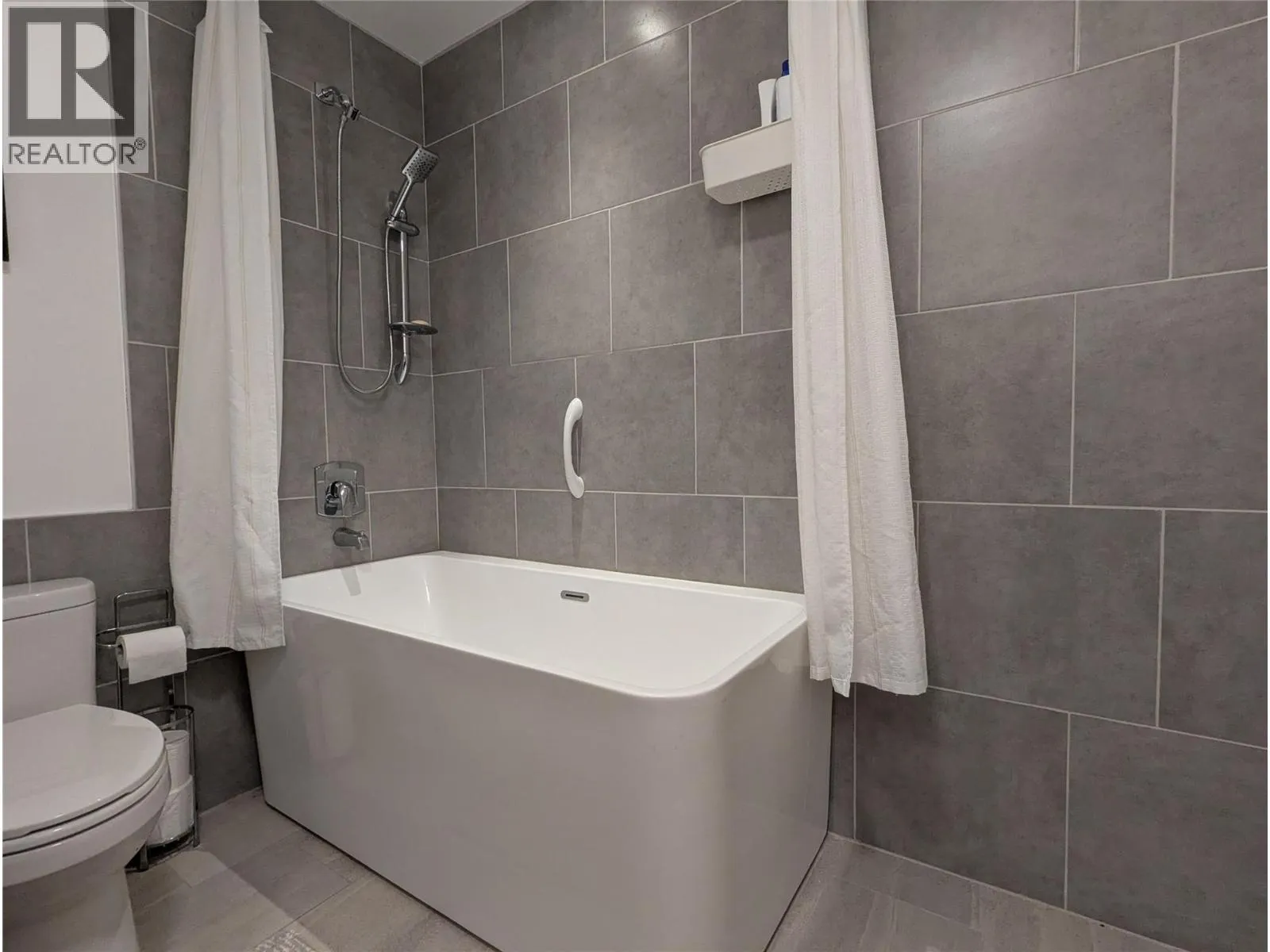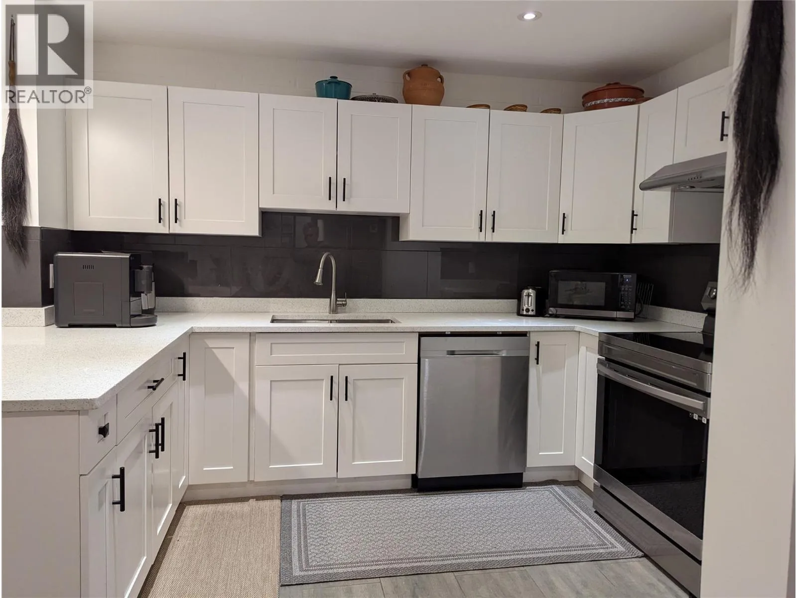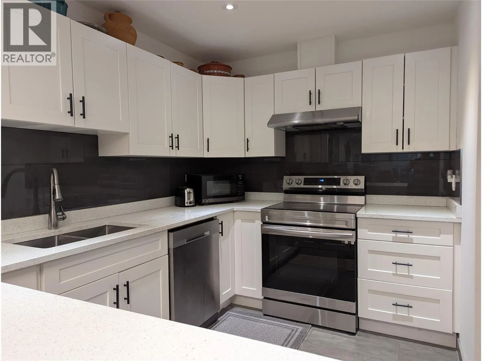Beautifully renovated move-in ready home in a steel and concrete building. This 2 bedroom home has been updated with new engineered hardwood floors, stylish quartz counter tops, new cabinets, appliances and sink in the kitchen, a stand-alone bathtub and new vanity and tiles in the bright and modern bathroom. The balcony has been enclosed and the baseboards are all new. Nothing to be done but move in. The strata fees are reasonable and include hot water and shared laundry on each floor as well as the use of the hot tub and sauna as well as the building maintenance and the use of the social rooms, including a kitchen and meeting/art room. It is possible to rent an additional covered parking spot and an additional storage unit if required. Enjoy the advantages of this great location, very close to the Parkinson Recreation Centre, the Capri Mall and Orchard Park. Rentals allowed with no age restriction, no pets allowed. (id:27476)