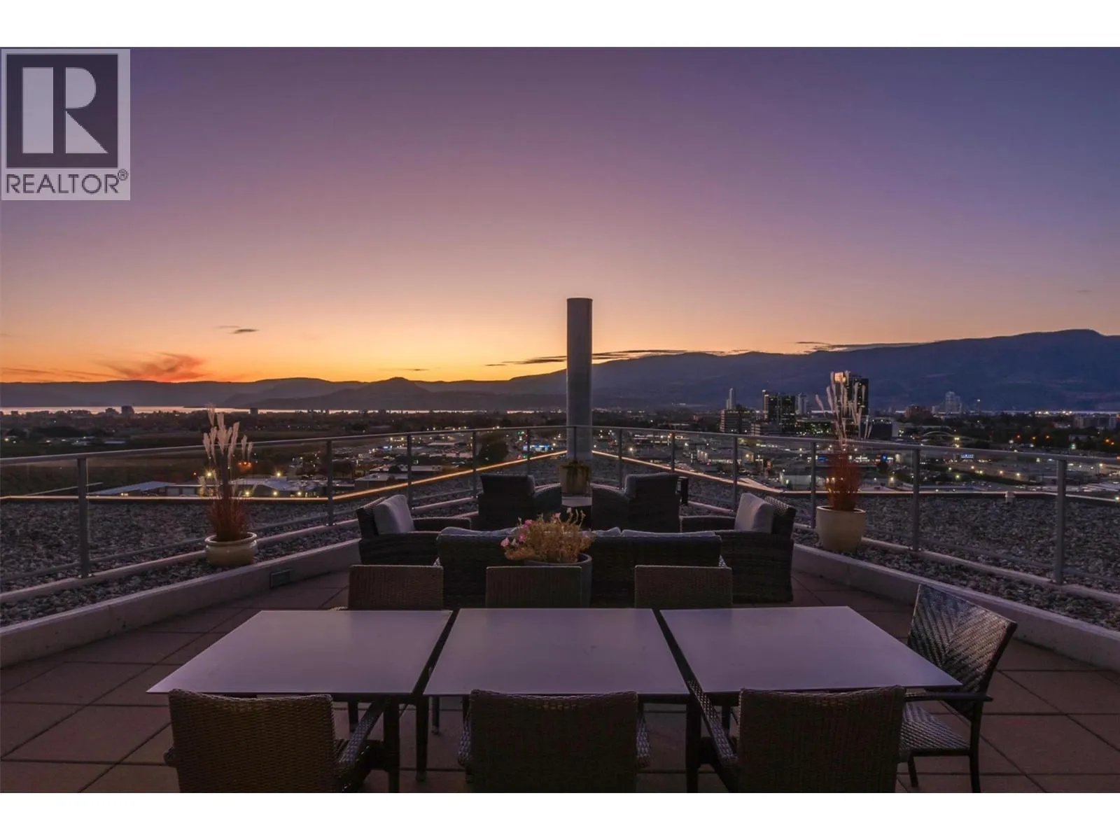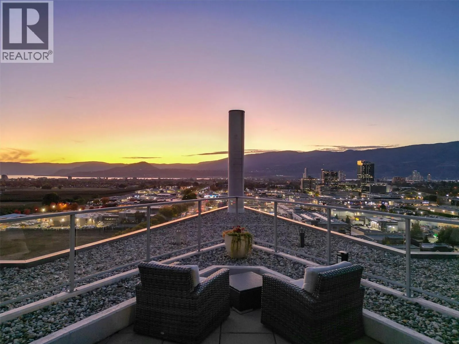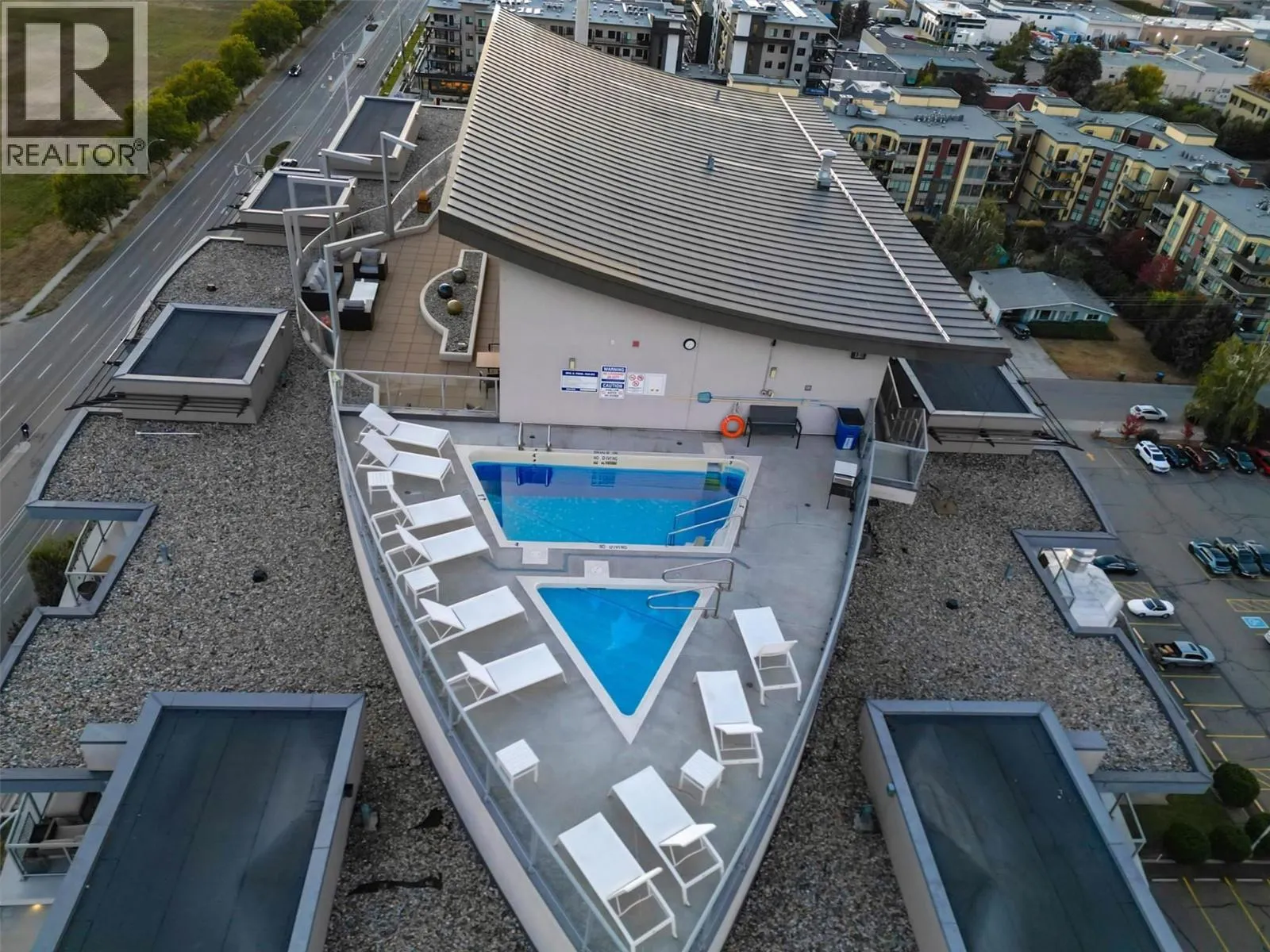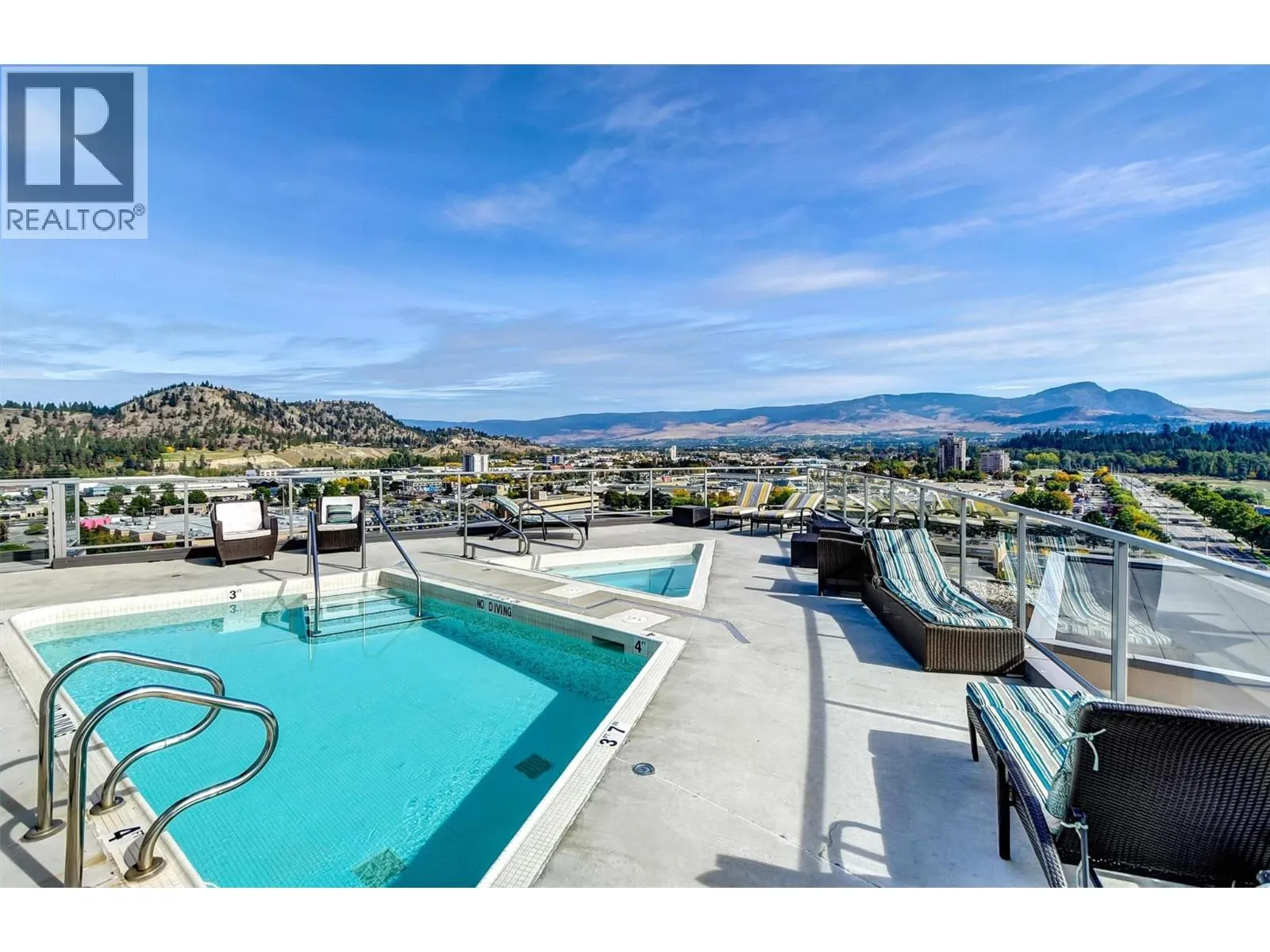 Invue, a stunning high-rise concrete building situated in the heart of Kelowna, featuring an impressive lobby and unparalleled amenities. This exceptional 1-bedroom condo has forced air heating/cooling and has been freshly painted with new hardwood flooring, vacant and ready to move in. The spacious bedroom w/double closets. well designed kitchen offers quartz countertops, stainless steel appliances and eating bar overlooking the living area with 2 accesses to the 'L' shaped sundeck. Invue stands out as one of the few affordable luxury complexes in Kelowna, featuring top-tier amenities. The expansive rooftop patio (on 15th fl) offers various seating areas with breathtaking 360-degree views of the lake, city and valley. The rooftop also features a pool & hot tub w/ladies & mens change rooms. On the second floor, you'll find a spacious fully-equipped gym with men & women changing rooms complete w/steam showers and saunas. Thereâs also a games area with a ping pong table, a gathering room with a billiard table, and a cozy lounge area. The building is also equipped with convenient features such as a car wash in the parkade and a dog wash station on the second floor, along with 2 guest suites for visitors. Invue is centrally located, providing easy access to downtown and nearby shopping centers. The unit comes with underground parking (#31) and a storage unit (# 59) located in the parkade. Pets are welcome. Remarkably low strata fees considering the luxurious amenities offered. (id:27476)