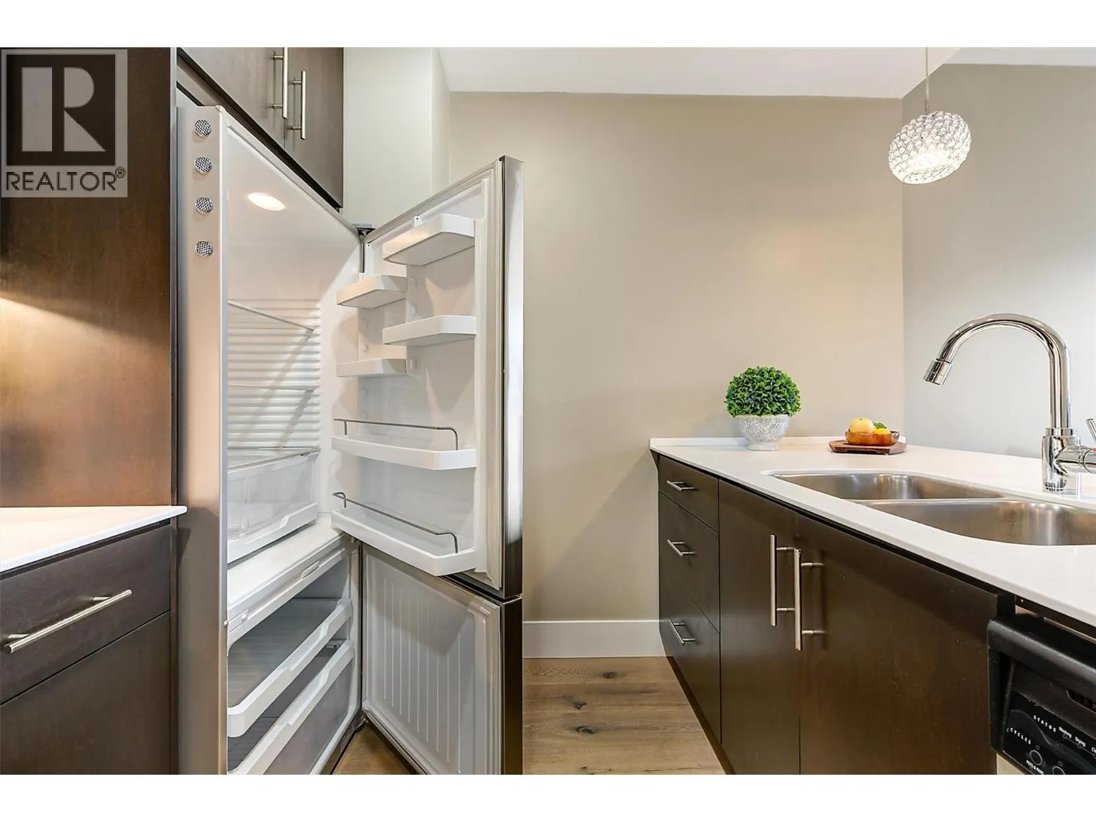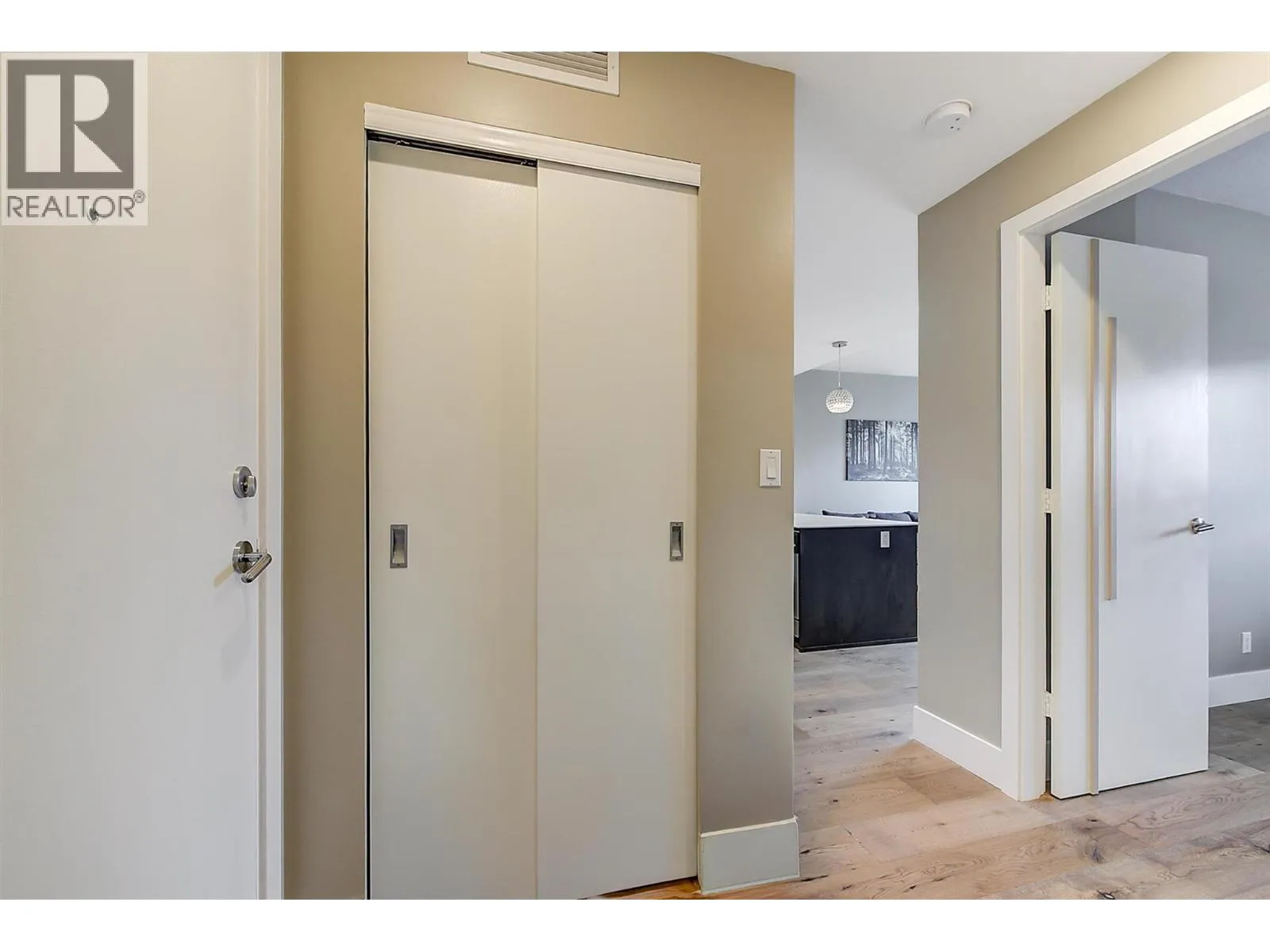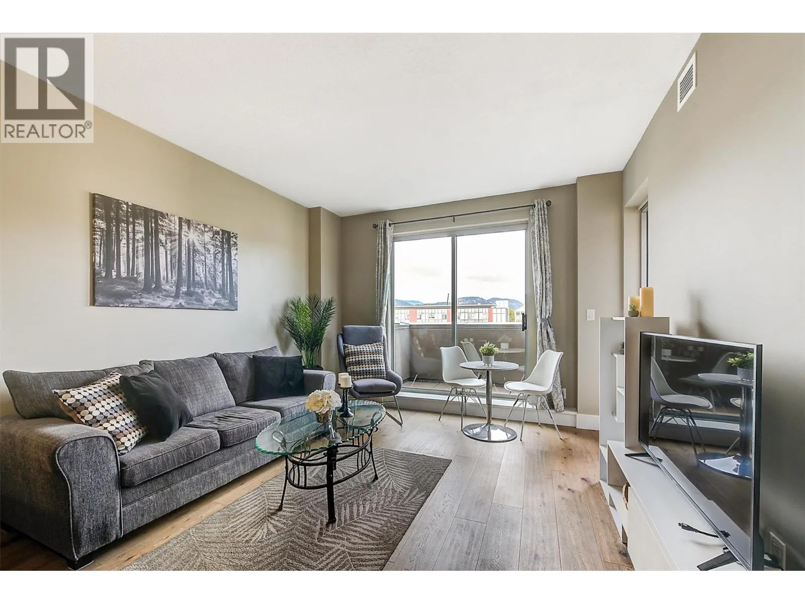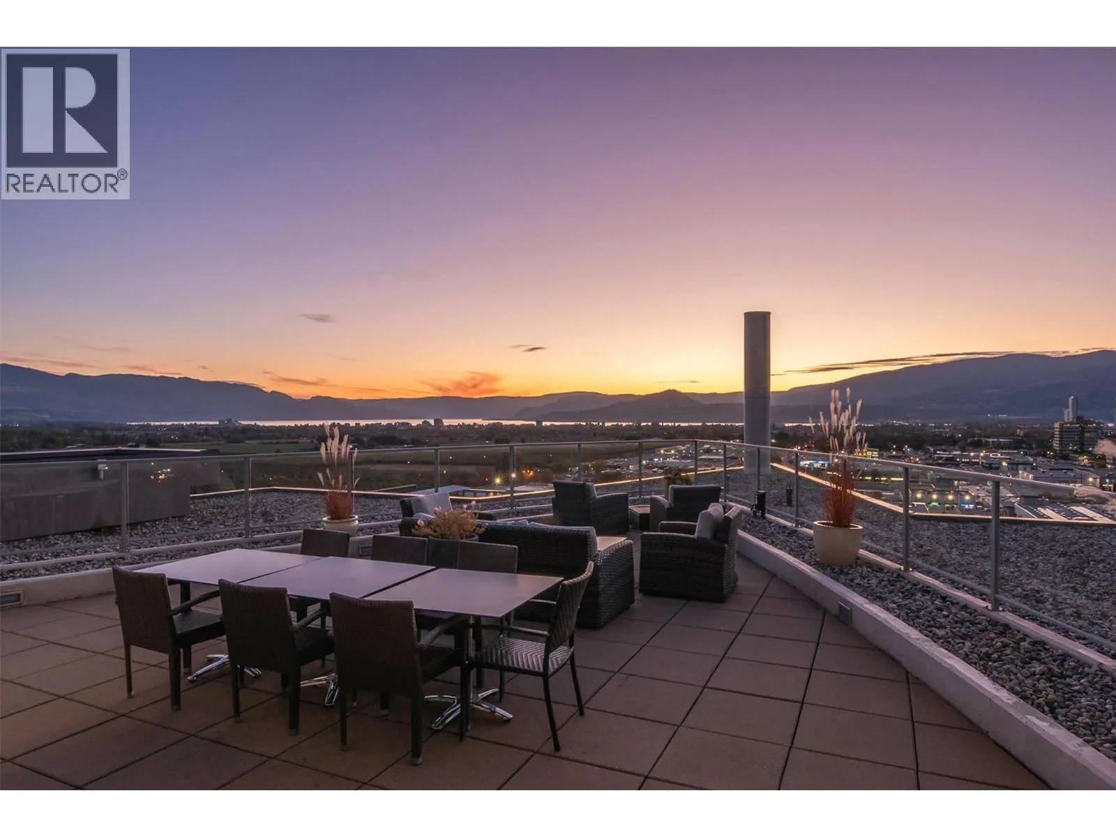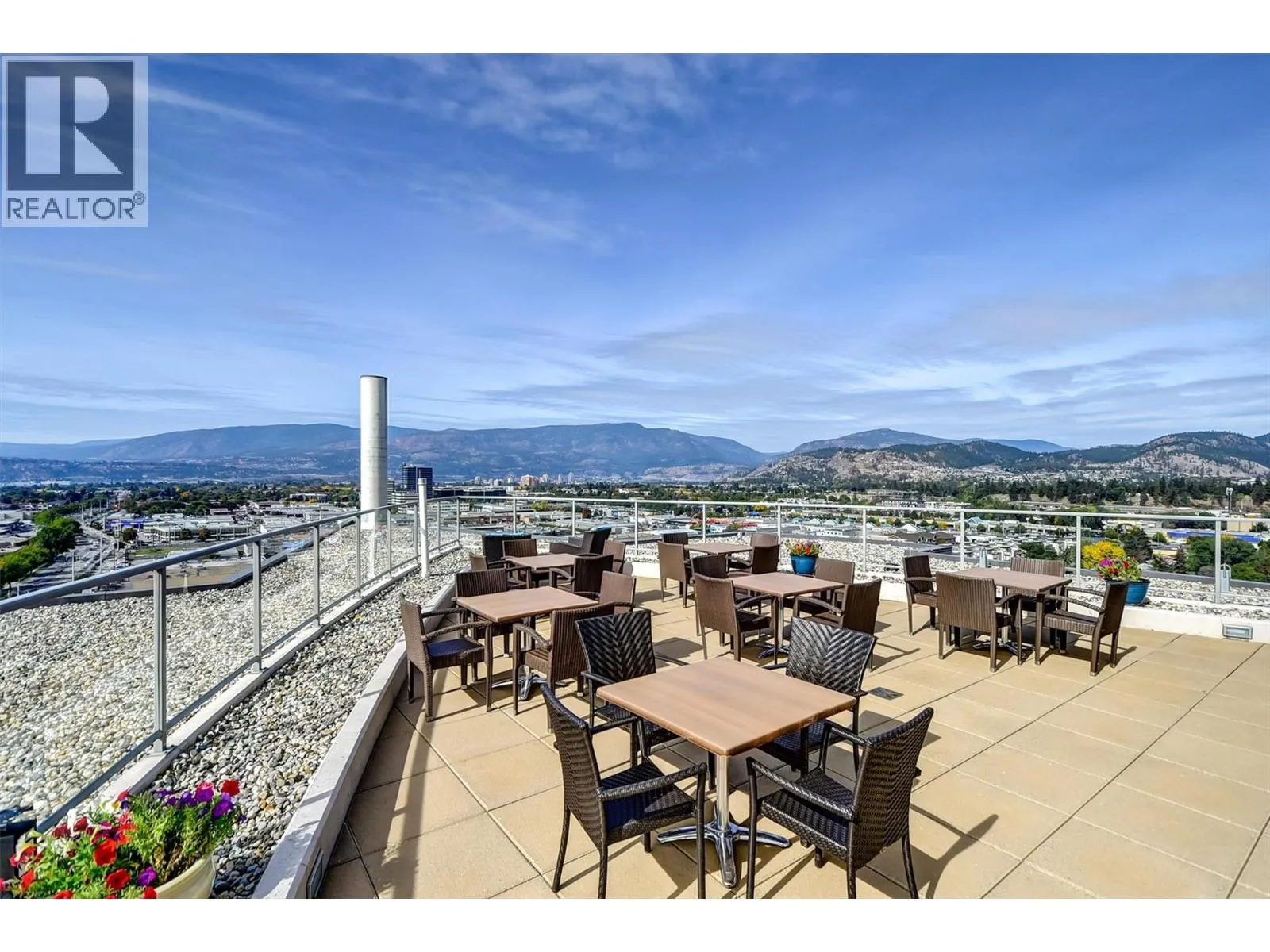 Invue, a stunning high-rise concrete building situated in the heart of Kelowna, featuring an impressive lobby and unparalleled amenities. This exceptional 1-bedroom condo has forced air heating/cooling and has been freshly painted with new hardwood flooring, vacant and ready to move in. The spacious bedroom w/double closets. well designed kitchen offers quartz countertops, stainless steel appliances and eating bar overlooking the living area with 2 accesses to the 'L' shaped sundeck. Invue stands out as one of the few affordable luxury complexes in Kelowna, featuring top-tier amenities. The expansive rooftop patio (on 15th fl) offers various seating areas with breathtaking 360-degree views of the lake, city and valley. The rooftop also features a pool & hot tub w/ladies & mens change rooms. On the second floor, you'll find a spacious fully-equipped gym with men & women changing rooms complete w/steam showers and saunas. Thereâs also a games area with a ping pong table, a gathering room with a billiard table, and a cozy lounge area. The building is also equipped with convenient features such as a car wash in the parkade and a dog wash station on the second floor, along with 2 guest suites for visitors. Invue is centrally located, providing easy access to downtown and nearby shopping centers. The unit comes with underground parking (#31) and a storage unit (# 59) located in the parkade. Pets are welcome. Remarkably low strata fees considering the luxurious amenities offered. (id:27476)