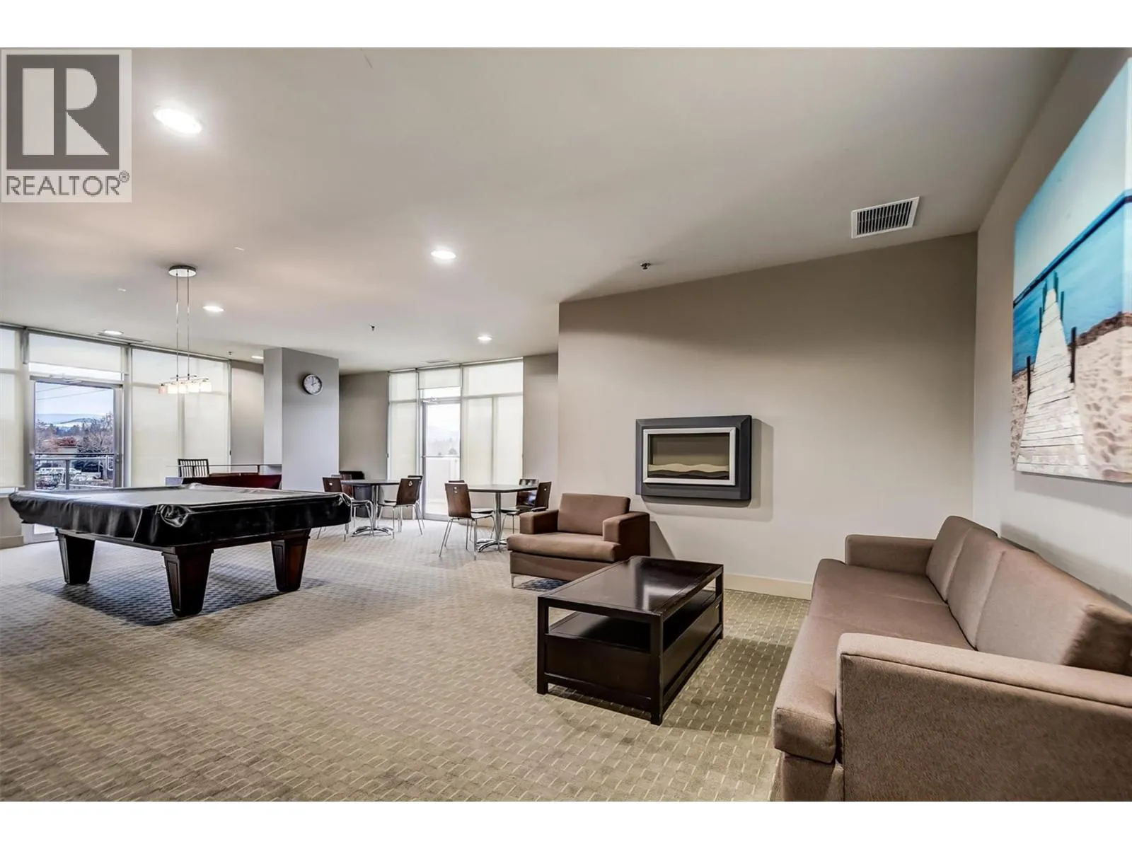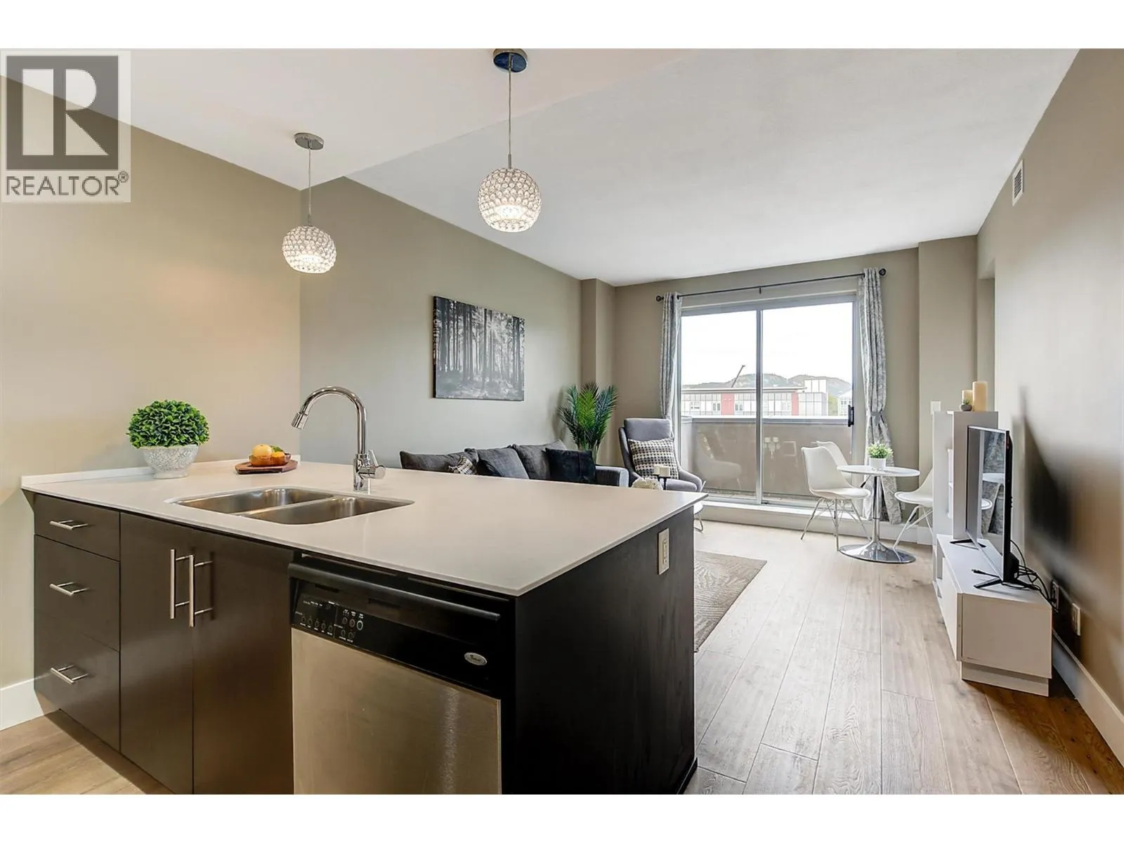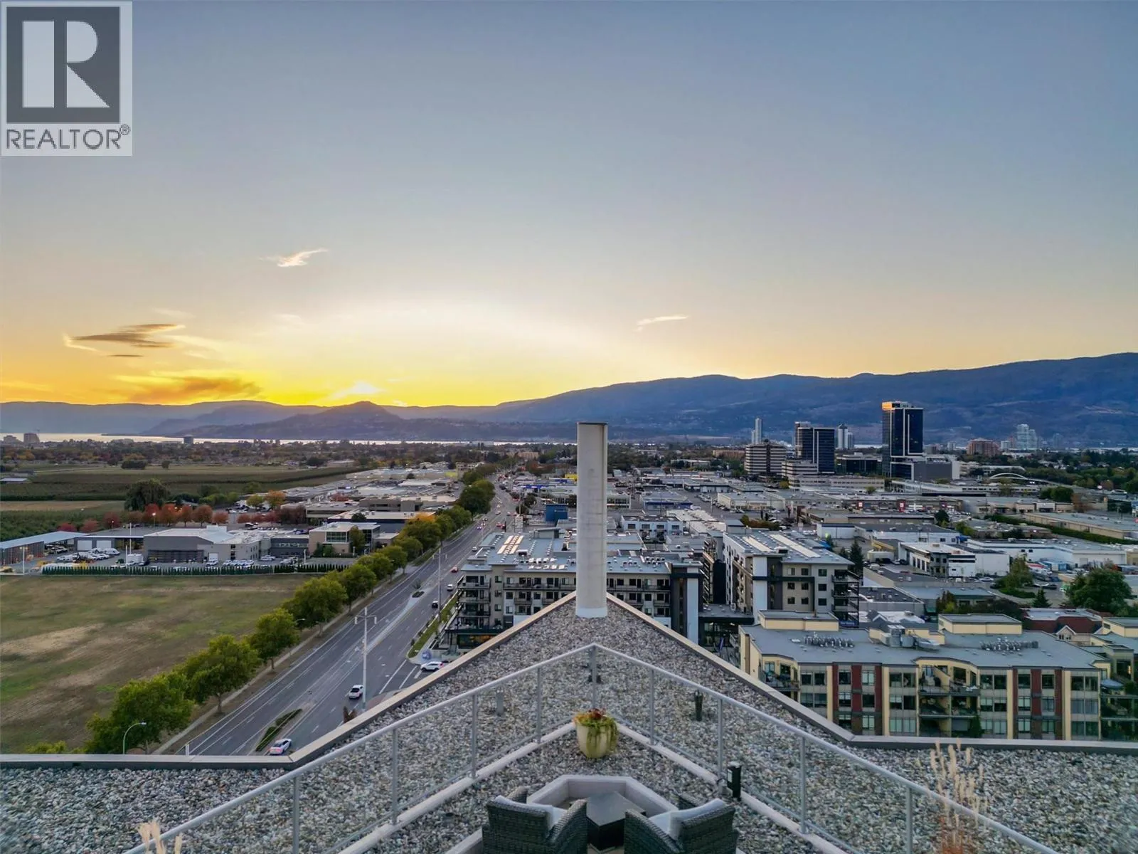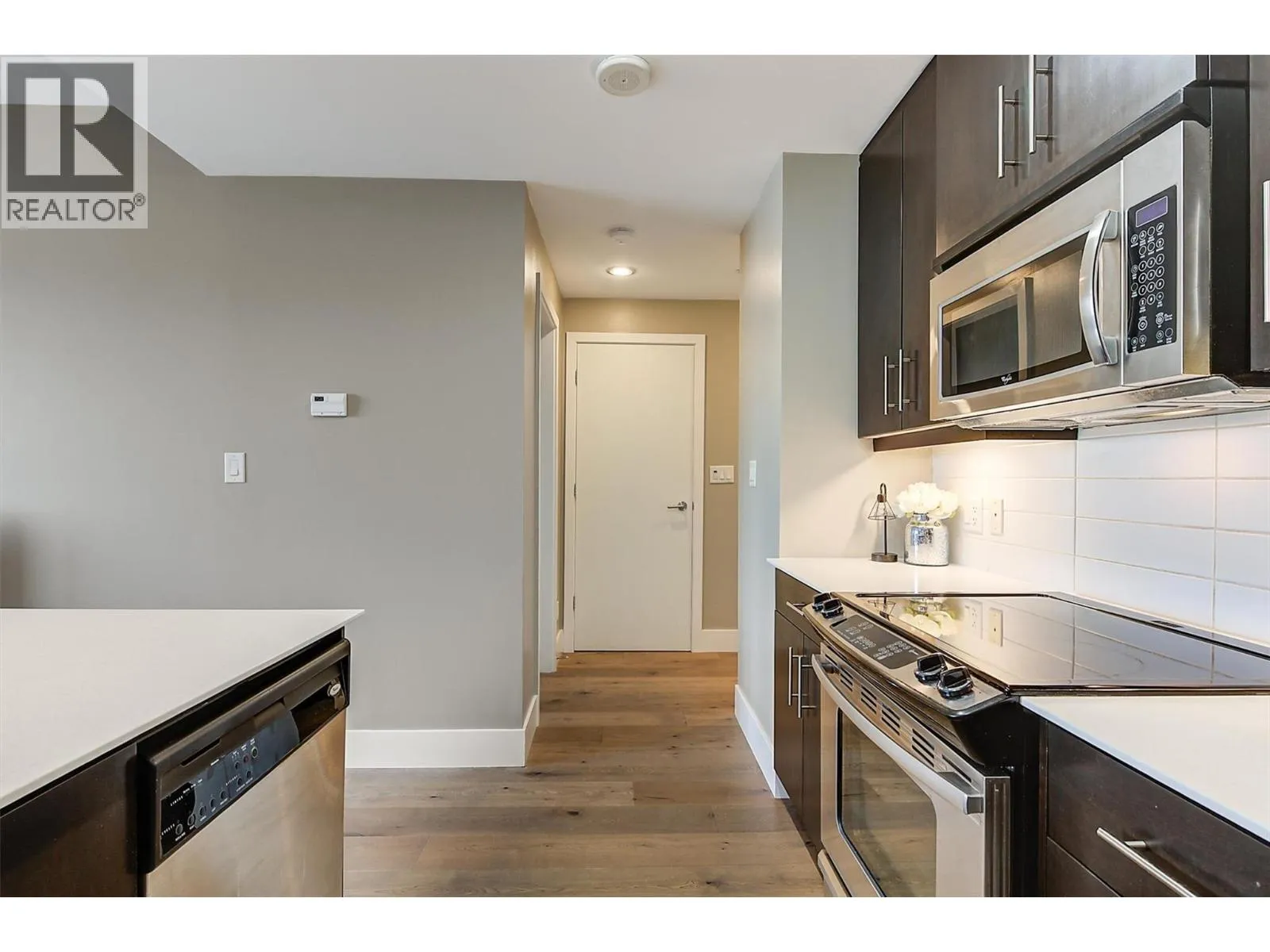 Invue, a stunning high-rise concrete building situated in the heart of Kelowna, featuring an impressive lobby and unparalleled amenities. This exceptional 1-bedroom condo has forced air heating/cooling and has been freshly painted with new hardwood flooring, vacant and ready to move in. The spacious bedroom w/double closets. well designed kitchen offers quartz countertops, stainless steel appliances and eating bar overlooking the living area with 2 accesses to the 'L' shaped sundeck. Invue stands out as one of the few affordable luxury complexes in Kelowna, featuring top-tier amenities. The expansive rooftop patio (on 15th fl) offers various seating areas with breathtaking 360-degree views of the lake, city and valley. The rooftop also features a pool & hot tub w/ladies & mens change rooms. On the second floor, you'll find a spacious fully-equipped gym with men & women changing rooms complete w/steam showers and saunas. Thereâs also a games area with a ping pong table, a gathering room with a billiard table, and a cozy lounge area. The building is also equipped with convenient features such as a car wash in the parkade and a dog wash station on the second floor, along with 2 guest suites for visitors. Invue is centrally located, providing easy access to downtown and nearby shopping centers. The unit comes with underground parking (#31) and a storage unit (# 59) located in the parkade. Pets are welcome. Remarkably low strata fees considering the luxurious amenities offered. (id:27476)