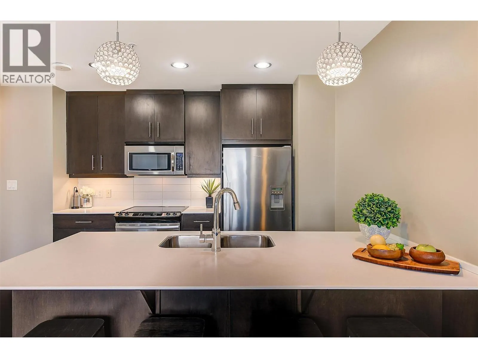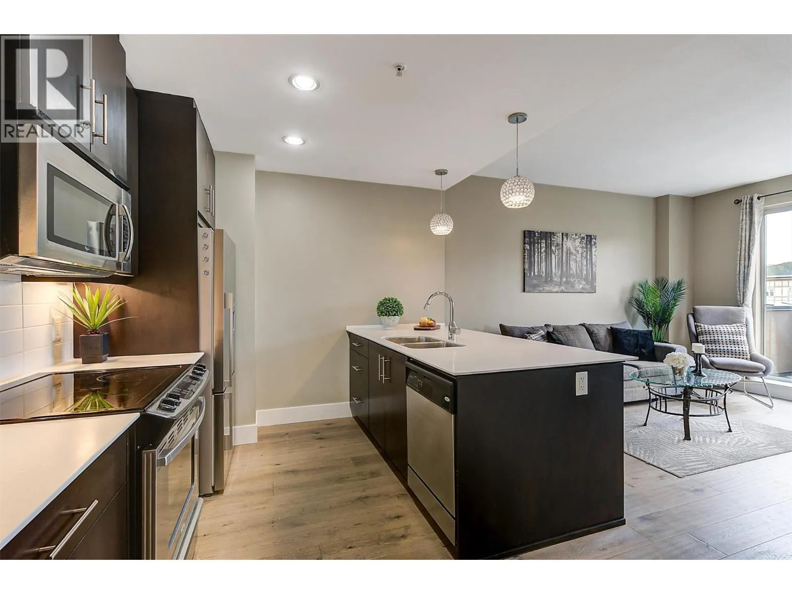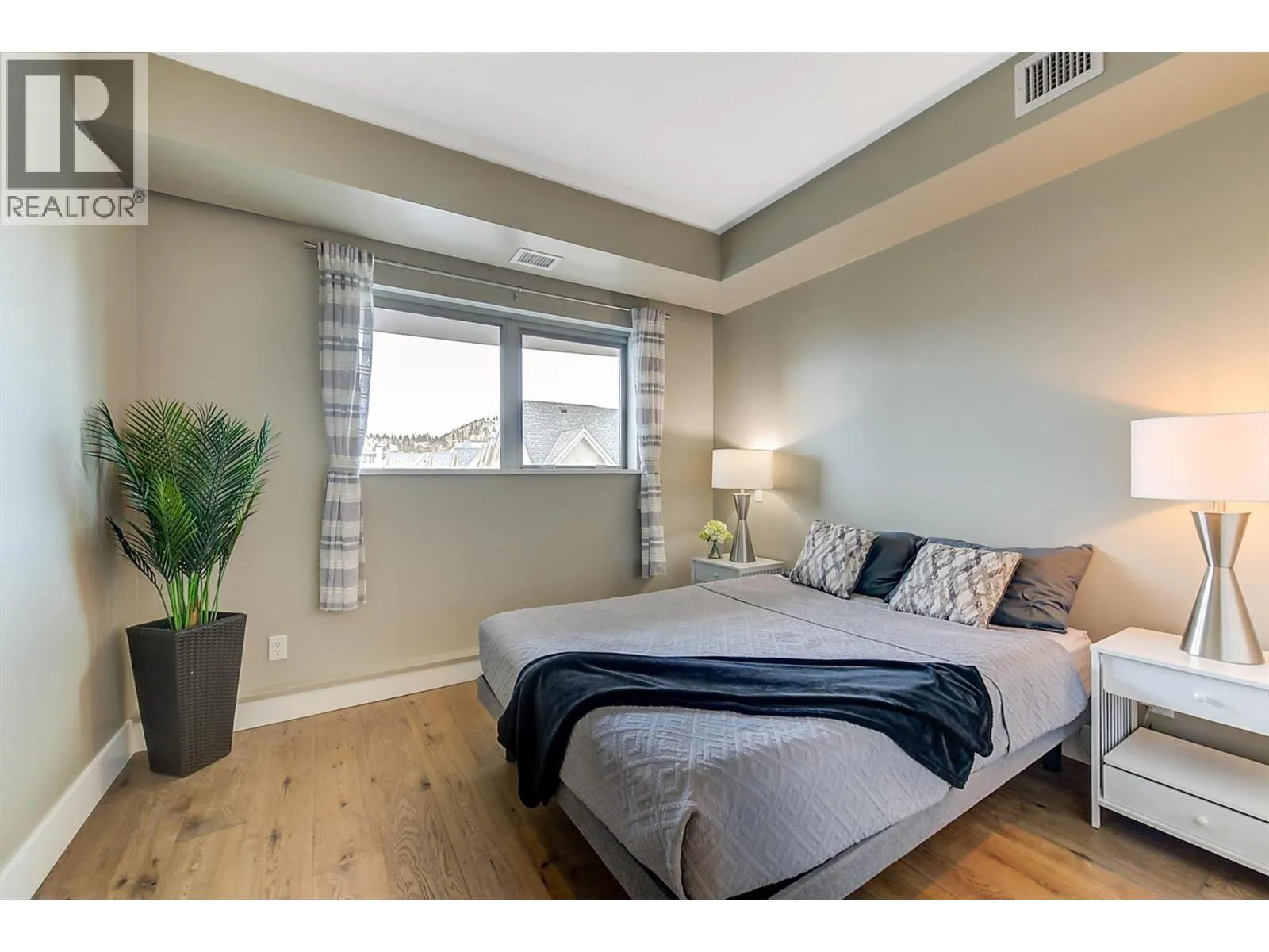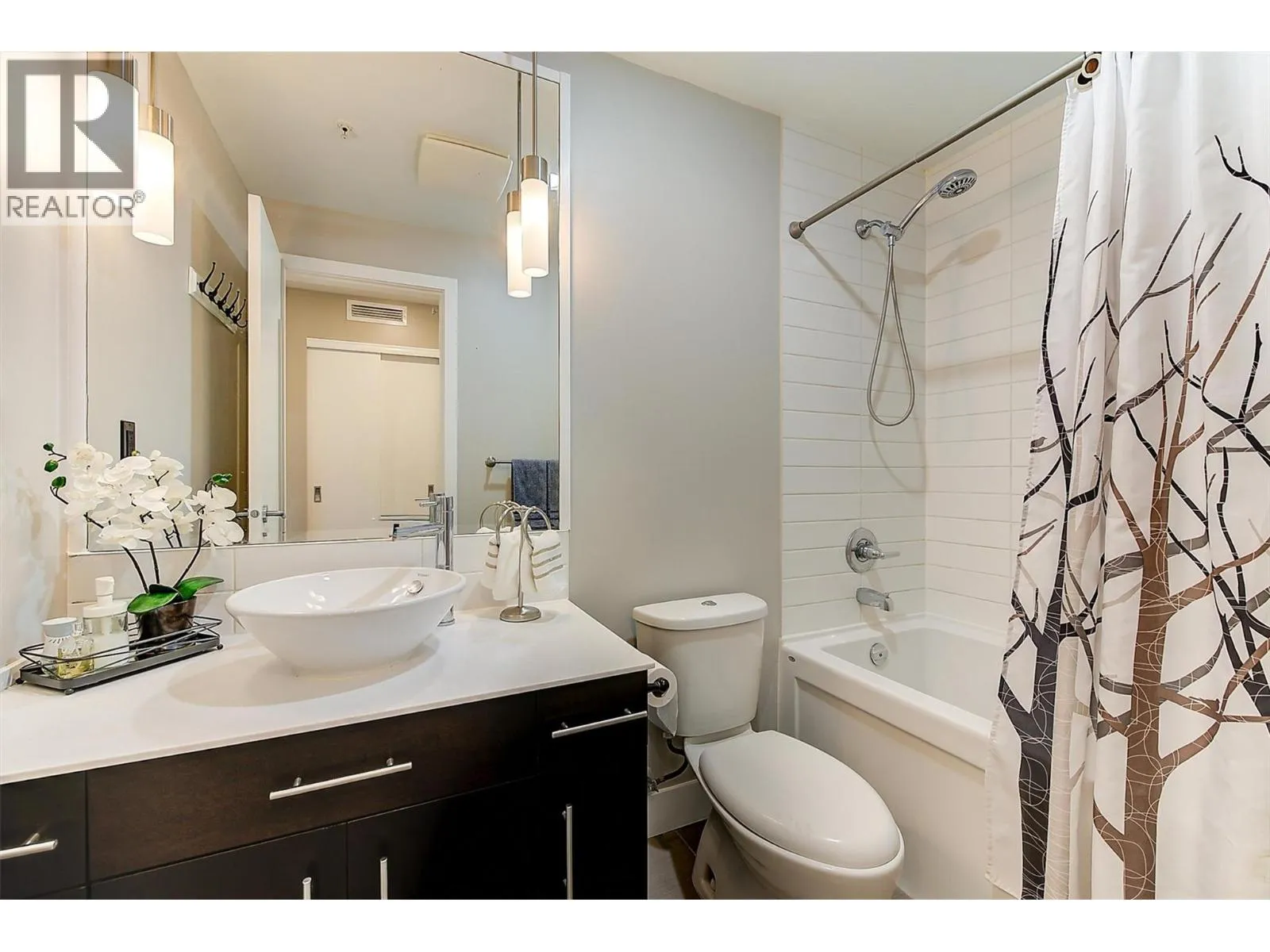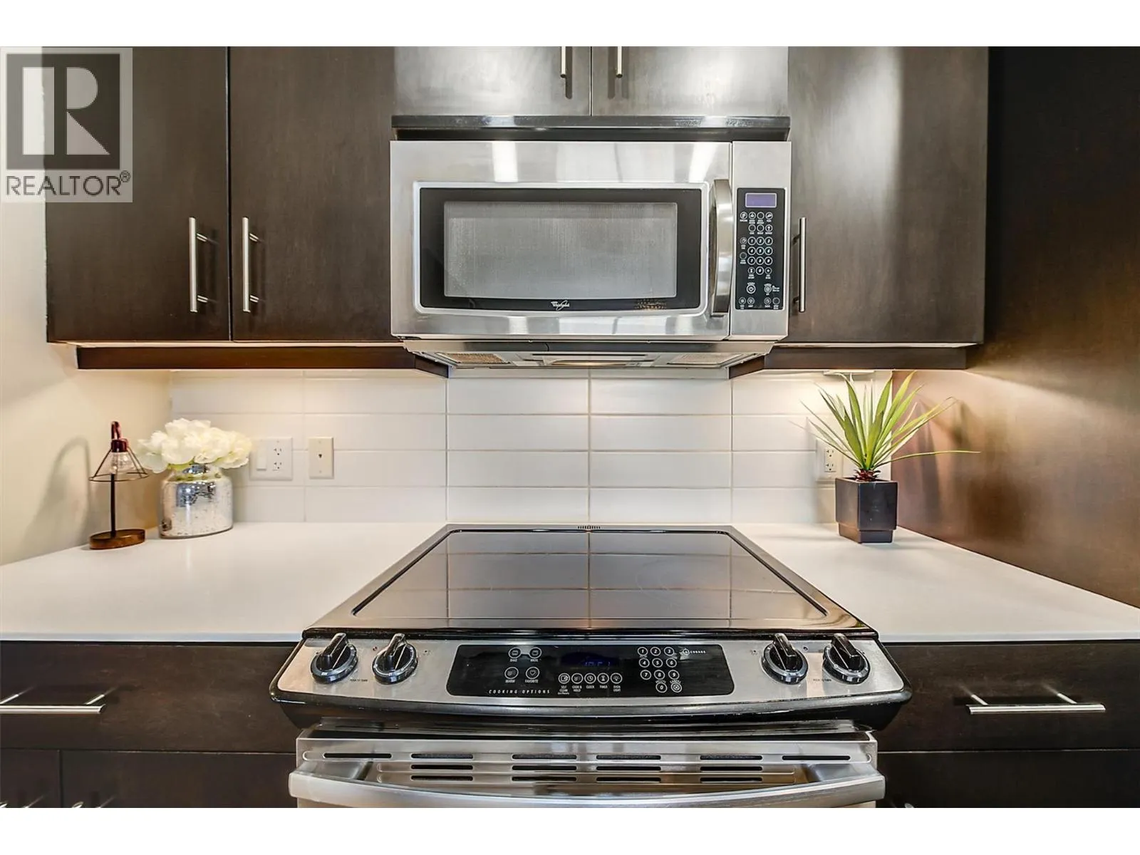 Invue, a stunning high-rise concrete building situated in the heart of Kelowna, featuring an impressive lobby and unparalleled amenities. This exceptional 1-bedroom condo has forced air heating/cooling and has been freshly painted with new hardwood flooring, vacant and ready to move in. The spacious bedroom w/double closets. well designed kitchen offers quartz countertops, stainless steel appliances and eating bar overlooking the living area with 2 accesses to the 'L' shaped sundeck. Invue stands out as one of the few affordable luxury complexes in Kelowna, featuring top-tier amenities. The expansive rooftop patio (on 15th fl) offers various seating areas with breathtaking 360-degree views of the lake, city and valley. The rooftop also features a pool & hot tub w/ladies & mens change rooms. On the second floor, you'll find a spacious fully-equipped gym with men & women changing rooms complete w/steam showers and saunas. Thereâs also a games area with a ping pong table, a gathering room with a billiard table, and a cozy lounge area. The building is also equipped with convenient features such as a car wash in the parkade and a dog wash station on the second floor, along with 2 guest suites for visitors. Invue is centrally located, providing easy access to downtown and nearby shopping centers. The unit comes with underground parking (#31) and a storage unit (# 59) located in the parkade. Pets are welcome. Remarkably low strata fees considering the luxurious amenities offered. (id:27476)