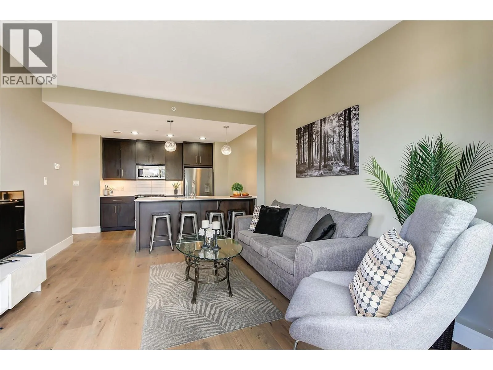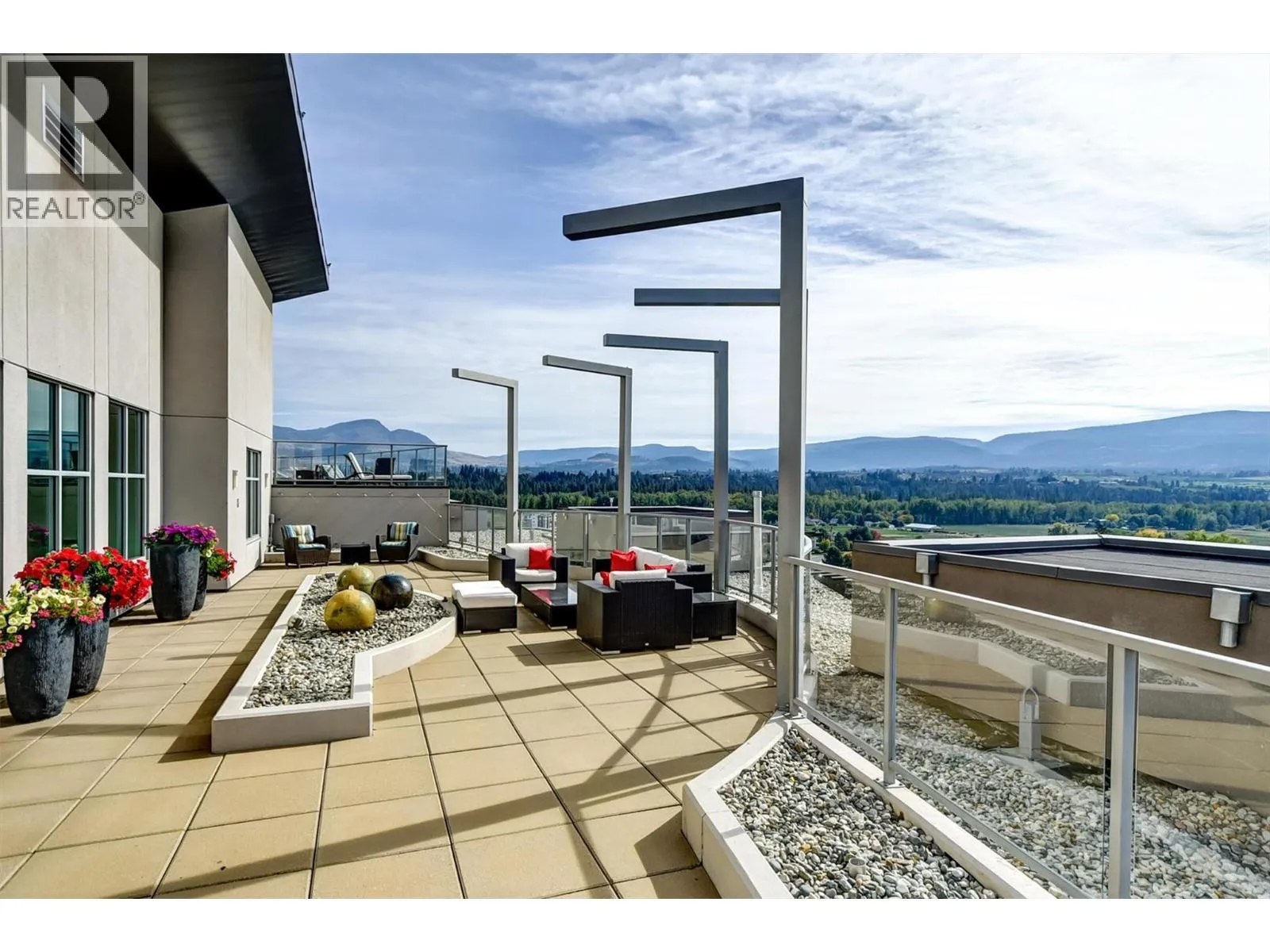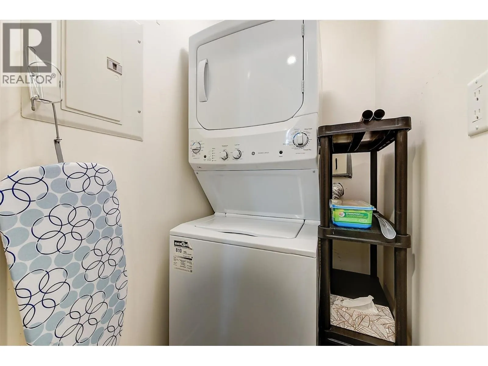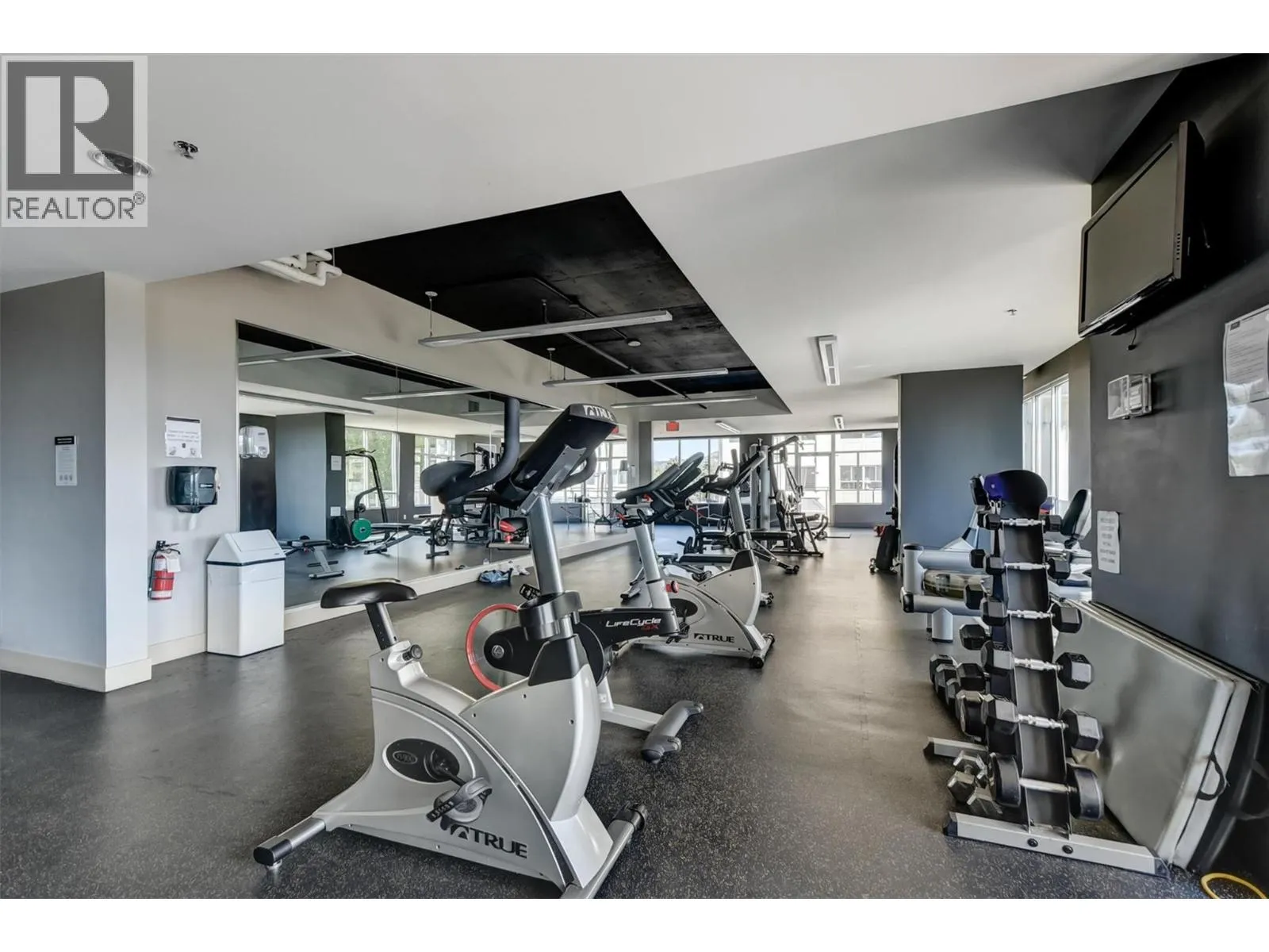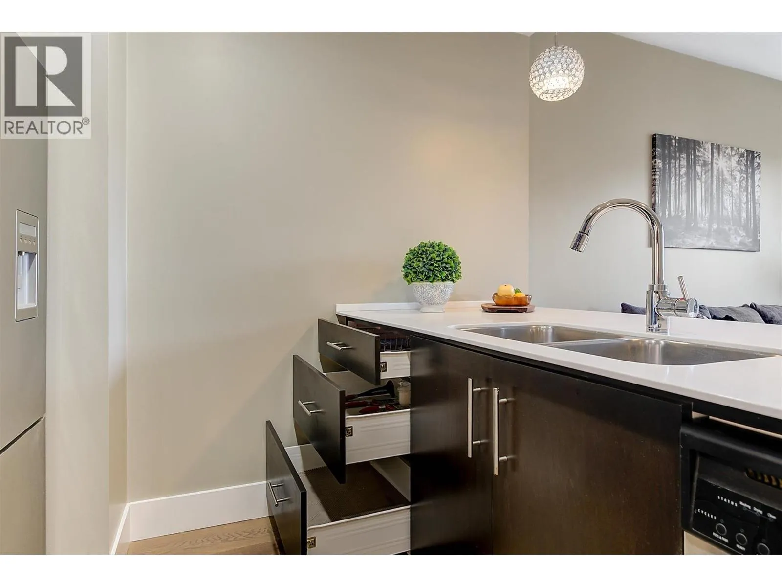 Invue, a stunning high-rise concrete building situated in the heart of Kelowna, featuring an impressive lobby and unparalleled amenities. This exceptional 1-bedroom condo has forced air heating/cooling and has been freshly painted with new hardwood flooring, vacant and ready to move in. The spacious bedroom w/double closets. well designed kitchen offers quartz countertops, stainless steel appliances and eating bar overlooking the living area with 2 accesses to the 'L' shaped sundeck. Invue stands out as one of the few affordable luxury complexes in Kelowna, featuring top-tier amenities. The expansive rooftop patio (on 15th fl) offers various seating areas with breathtaking 360-degree views of the lake, city and valley. The rooftop also features a pool & hot tub w/ladies & mens change rooms. On the second floor, you'll find a spacious fully-equipped gym with men & women changing rooms complete w/steam showers and saunas. Thereâs also a games area with a ping pong table, a gathering room with a billiard table, and a cozy lounge area. The building is also equipped with convenient features such as a car wash in the parkade and a dog wash station on the second floor, along with 2 guest suites for visitors. Invue is centrally located, providing easy access to downtown and nearby shopping centers. The unit comes with underground parking (#31) and a storage unit (# 59) located in the parkade. Pets are welcome. Remarkably low strata fees considering the luxurious amenities offered. (id:27476)
