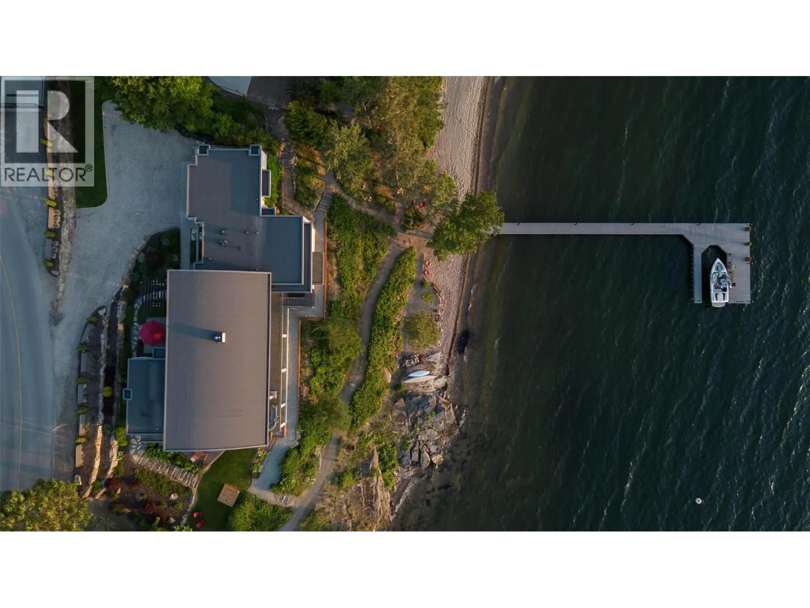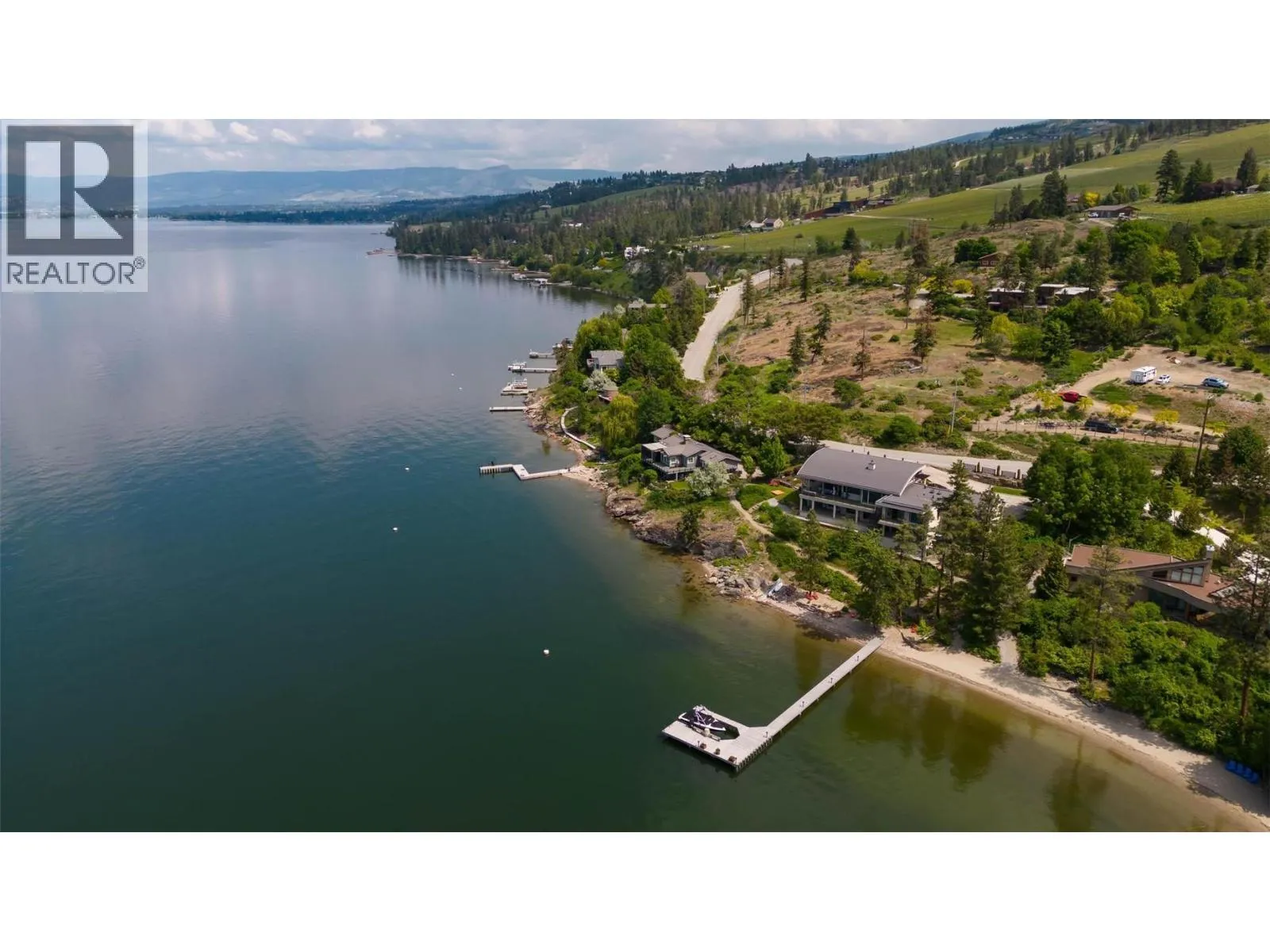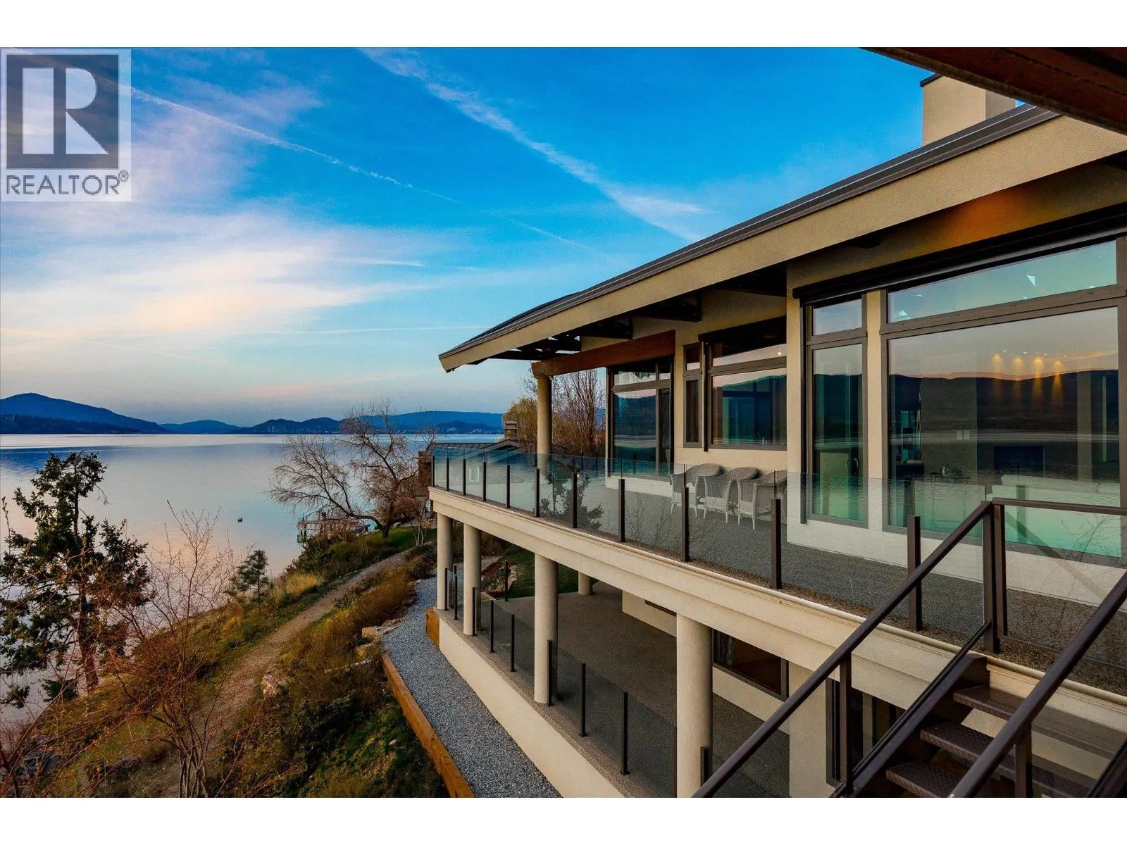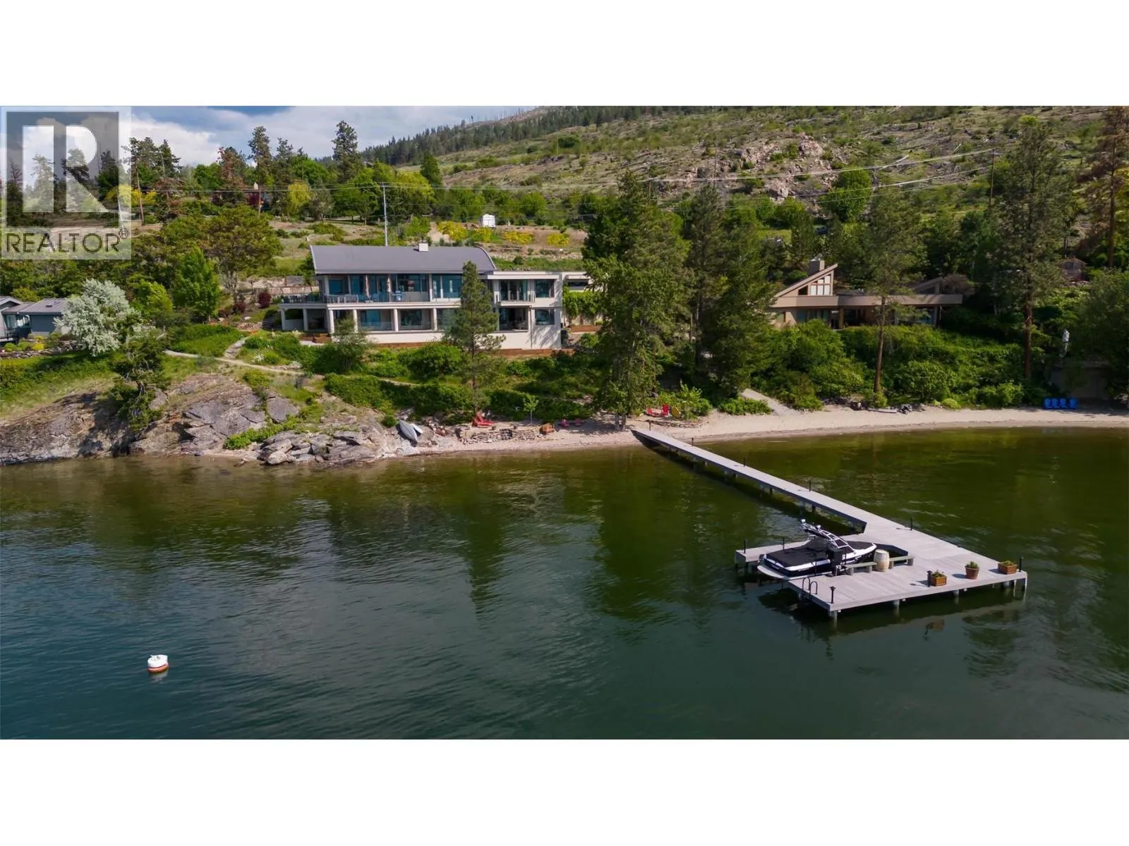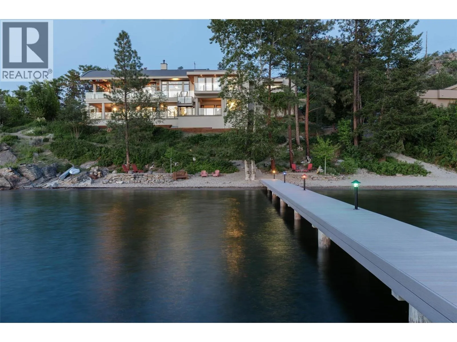 Known as Asparagus Bay, this home is built to celebrate Okanagan life. Its 1.297 acres - nurtured into an award-winning water-wise garden - offer a 5000 plus square foot house designed by Architect Robert Turik to create ideal views, a roofline that honors the surrounding hillsides, access to outdoor living spaces, sunlight exposure, & privacy. Six bedrooms & four bathrooms total! Inside, the ceiling follows curved trusses varying from 12.5 feet to 20 feet high; the main south-facing windows ensure year-round sun; European tilt windows allow for extra airflow and cross breezes; & a bank of upper windows draw in the morning light. Upstairs, the kitchen is book-ended by living spaces, the master & ensuite both provide lake views, and a one bedroom suite offers privacy to guests. Every room provides seamless access to outside, including 1100+ square feet of patio space w/ stairs to another deck below. Downstairs offers two bedrooms and one bathroom, a kitchenette, access to outdoors, storage, and another roughed-in suite with kitchen and bathroom plumbing. Outside, walk down an accessible path (the old orchard-donkey path!) to 219 feet of lakeshore frontage with beach-entrance swimming and a private 130 foot dock built in 2018, and featuring both a three tonne hoist and parking for guests. The lot is bisected by Lakeshore Road, so landscaped uplands offer additional parking, a deer-fenced garden with fruit trees and berries, space for a workshop, and long-term development/subdivision potential. Walking distance to Cedar Creek Winery, Martin's Lane, waterfront parks, & more. (id:27476)