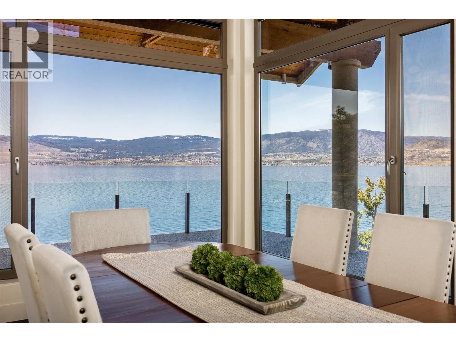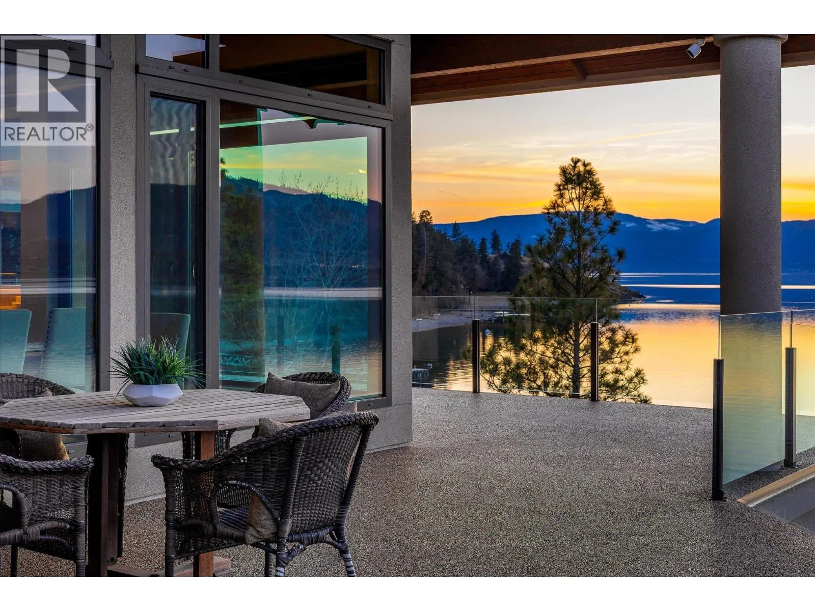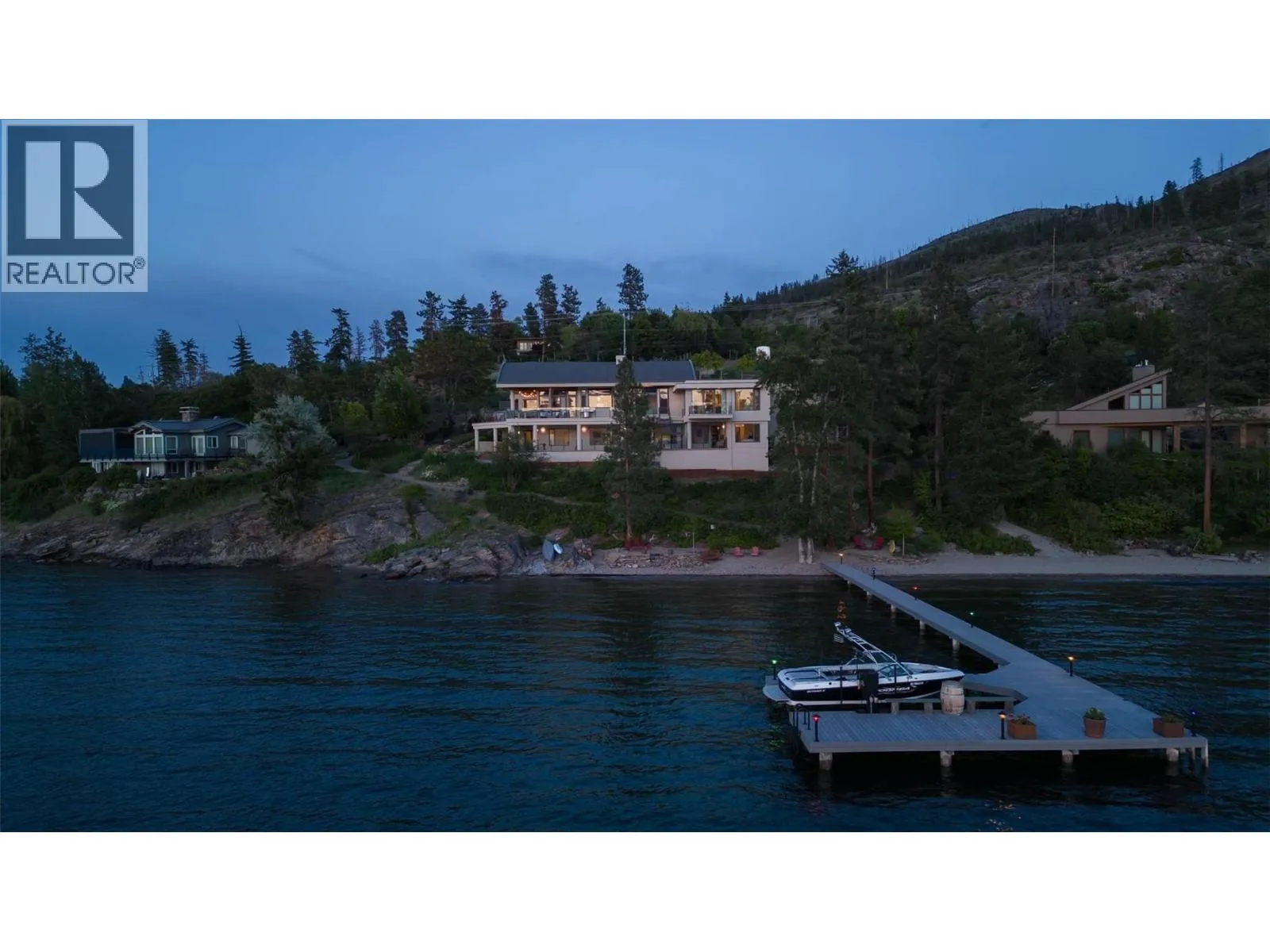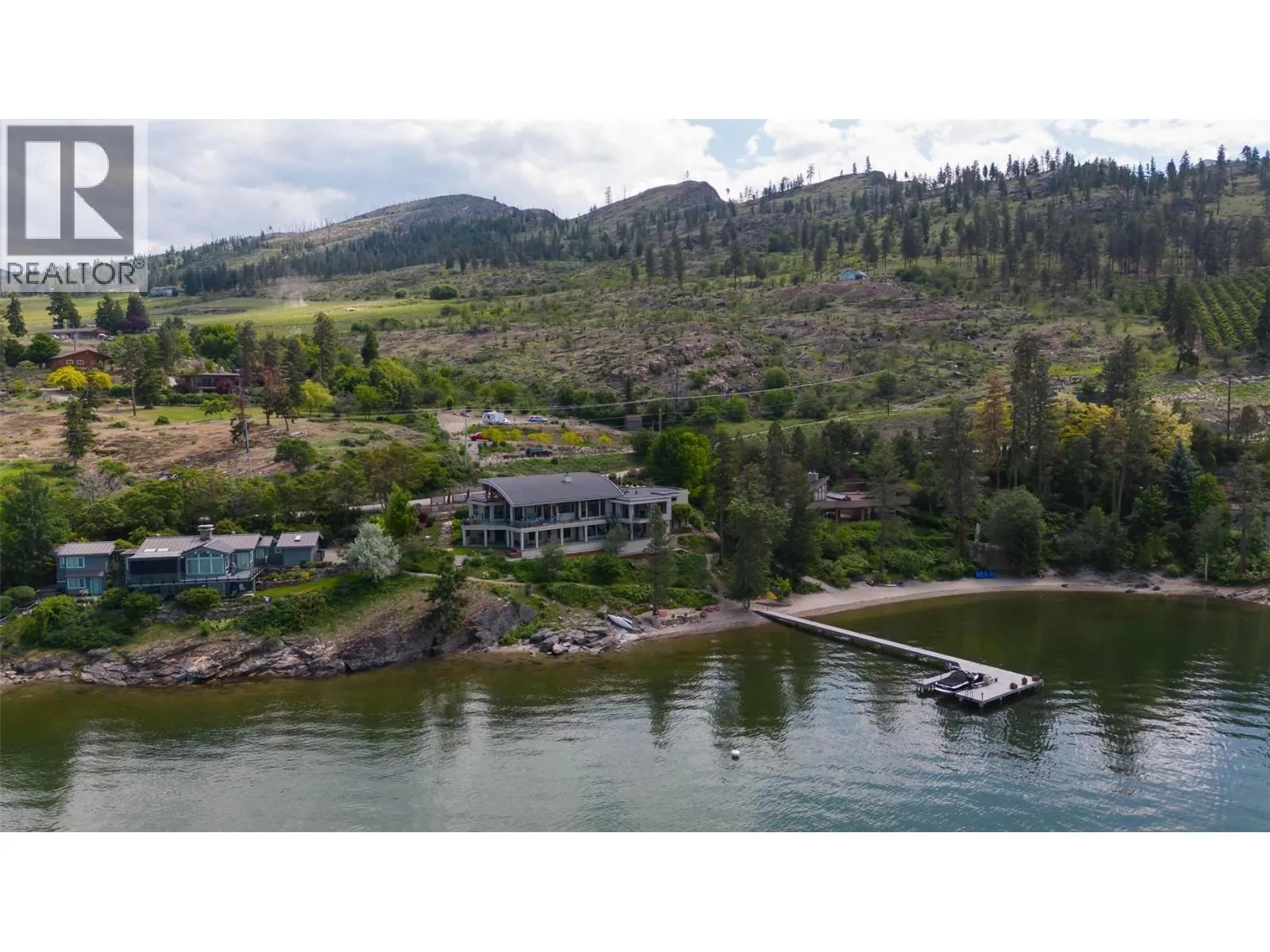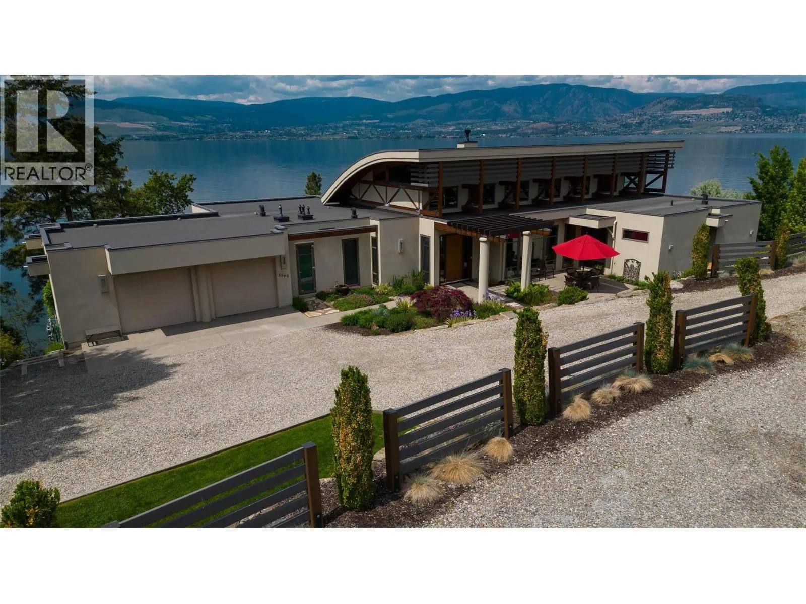 Known as Asparagus Bay, this home is built to celebrate Okanagan life. Its 1.297 acres - nurtured into an award-winning water-wise garden - offer a 5000 plus square foot house designed by Architect Robert Turik to create ideal views, a roofline that honors the surrounding hillsides, access to outdoor living spaces, sunlight exposure, & privacy. Six bedrooms & four bathrooms total! Inside, the ceiling follows curved trusses varying from 12.5 feet to 20 feet high; the main south-facing windows ensure year-round sun; European tilt windows allow for extra airflow and cross breezes; & a bank of upper windows draw in the morning light. Upstairs, the kitchen is book-ended by living spaces, the master & ensuite both provide lake views, and a one bedroom suite offers privacy to guests. Every room provides seamless access to outside, including 1100+ square feet of patio space w/ stairs to another deck below. Downstairs offers two bedrooms and one bathroom, a kitchenette, access to outdoors, storage, and another roughed-in suite with kitchen and bathroom plumbing. Outside, walk down an accessible path (the old orchard-donkey path!) to 219 feet of lakeshore frontage with beach-entrance swimming and a private 130 foot dock built in 2018, and featuring both a three tonne hoist and parking for guests. The lot is bisected by Lakeshore Road, so landscaped uplands offer additional parking, a deer-fenced garden with fruit trees and berries, space for a workshop, and long-term development/subdivision potential. Walking distance to Cedar Creek Winery, Martin's Lane, waterfront parks, & more. (id:27476)