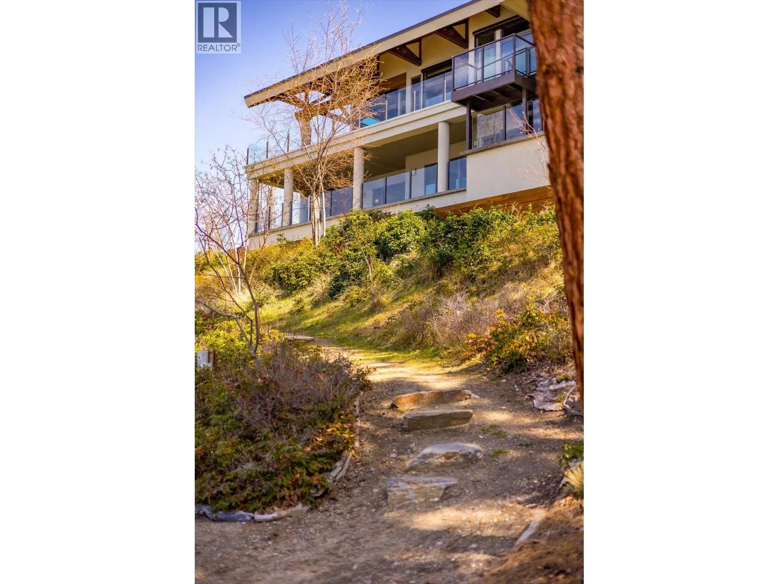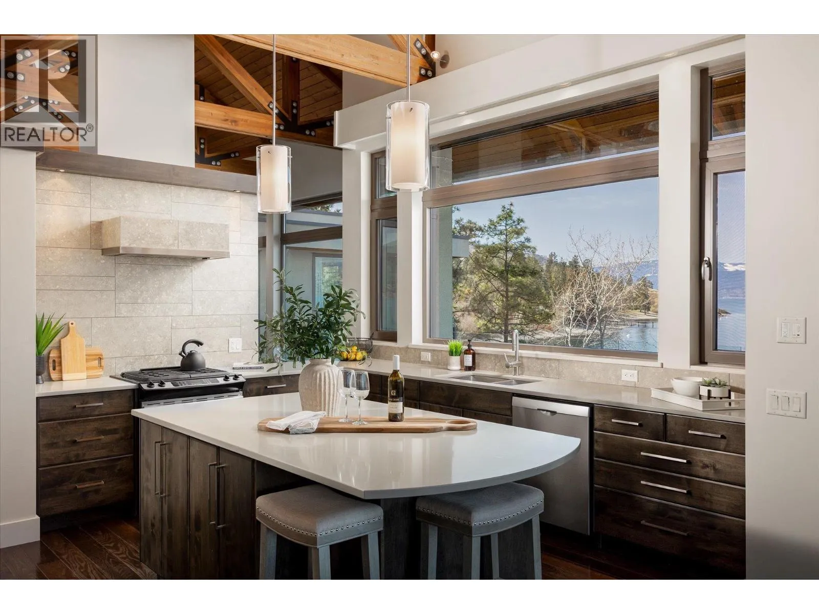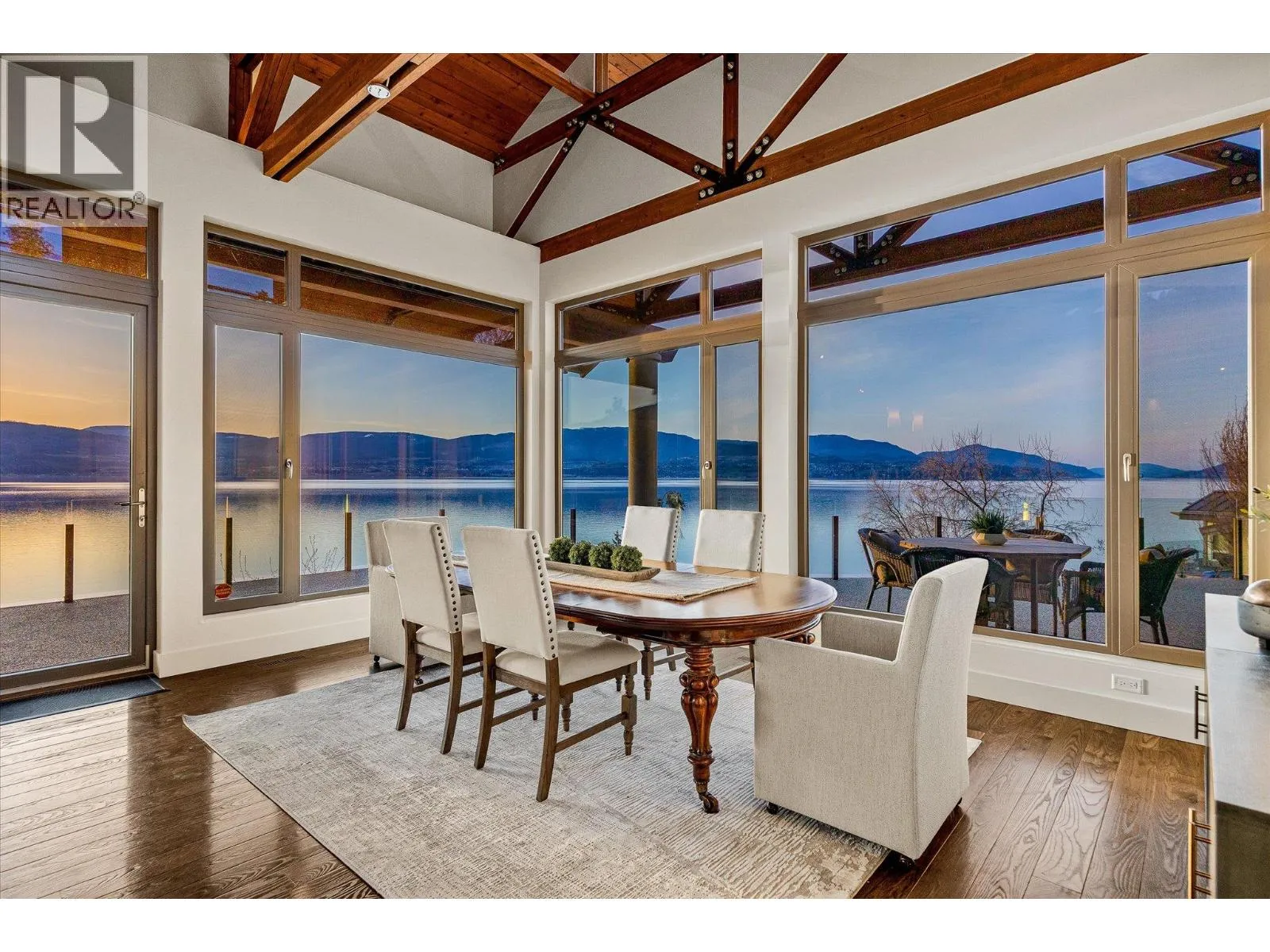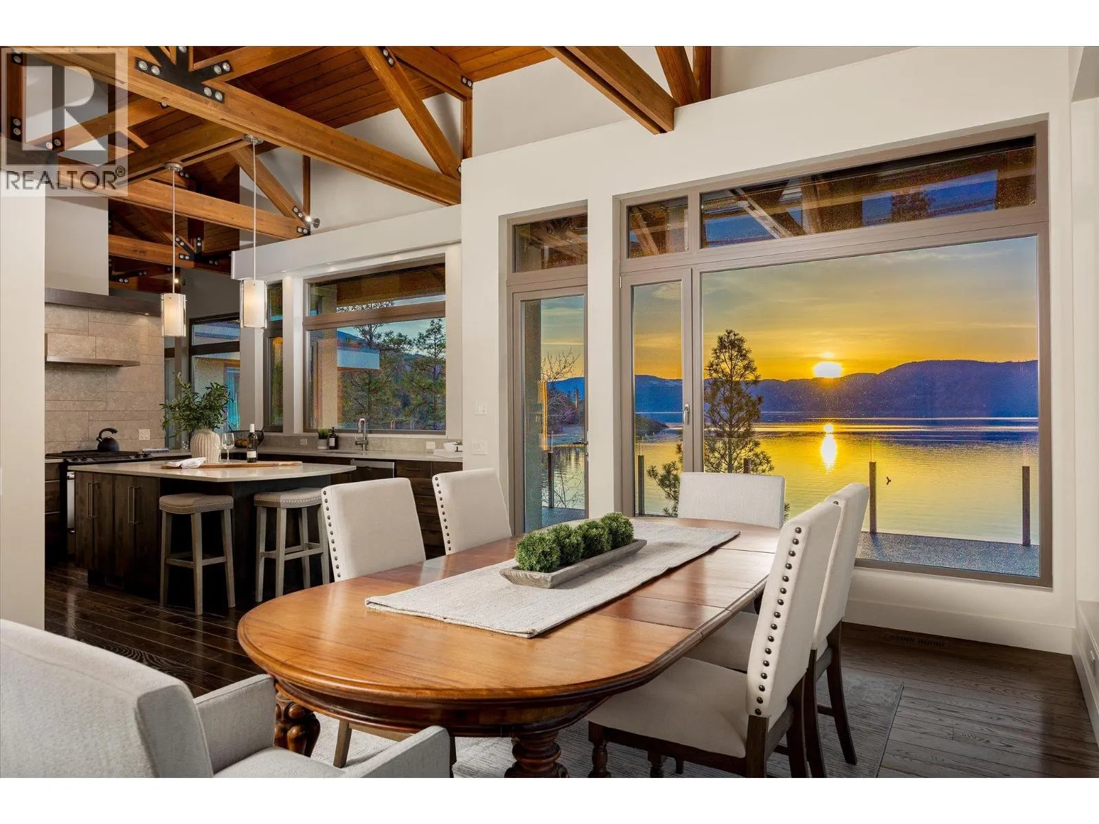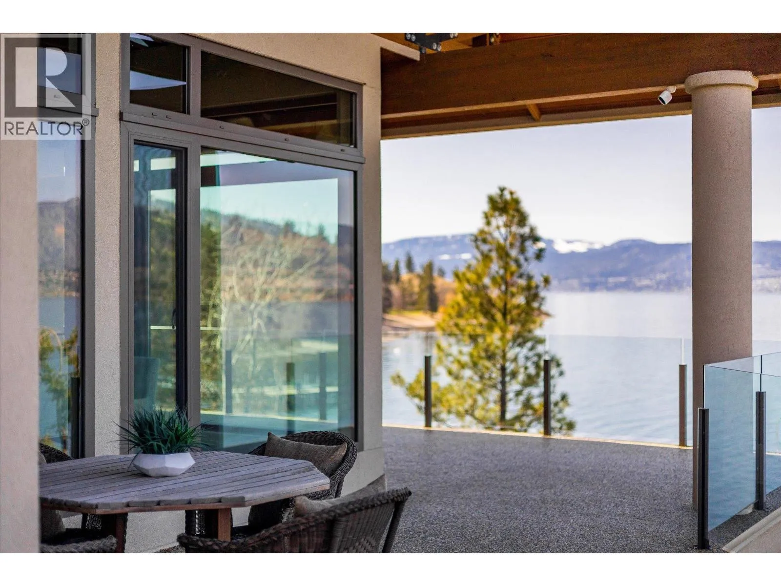 Known as Asparagus Bay, this home is built to celebrate Okanagan life. Its 1.297 acres - nurtured into an award-winning water-wise garden - offer a 5000 plus square foot house designed by Architect Robert Turik to create ideal views, a roofline that honors the surrounding hillsides, access to outdoor living spaces, sunlight exposure, & privacy. Six bedrooms & four bathrooms total! Inside, the ceiling follows curved trusses varying from 12.5 feet to 20 feet high; the main south-facing windows ensure year-round sun; European tilt windows allow for extra airflow and cross breezes; & a bank of upper windows draw in the morning light. Upstairs, the kitchen is book-ended by living spaces, the master & ensuite both provide lake views, and a one bedroom suite offers privacy to guests. Every room provides seamless access to outside, including 1100+ square feet of patio space w/ stairs to another deck below. Downstairs offers two bedrooms and one bathroom, a kitchenette, access to outdoors, storage, and another roughed-in suite with kitchen and bathroom plumbing. Outside, walk down an accessible path (the old orchard-donkey path!) to 219 feet of lakeshore frontage with beach-entrance swimming and a private 130 foot dock built in 2018, and featuring both a three tonne hoist and parking for guests. The lot is bisected by Lakeshore Road, so landscaped uplands offer additional parking, a deer-fenced garden with fruit trees and berries, space for a workshop, and long-term development/subdivision potential. Walking distance to Cedar Creek Winery, Martin's Lane, waterfront parks, & more. (id:27476)