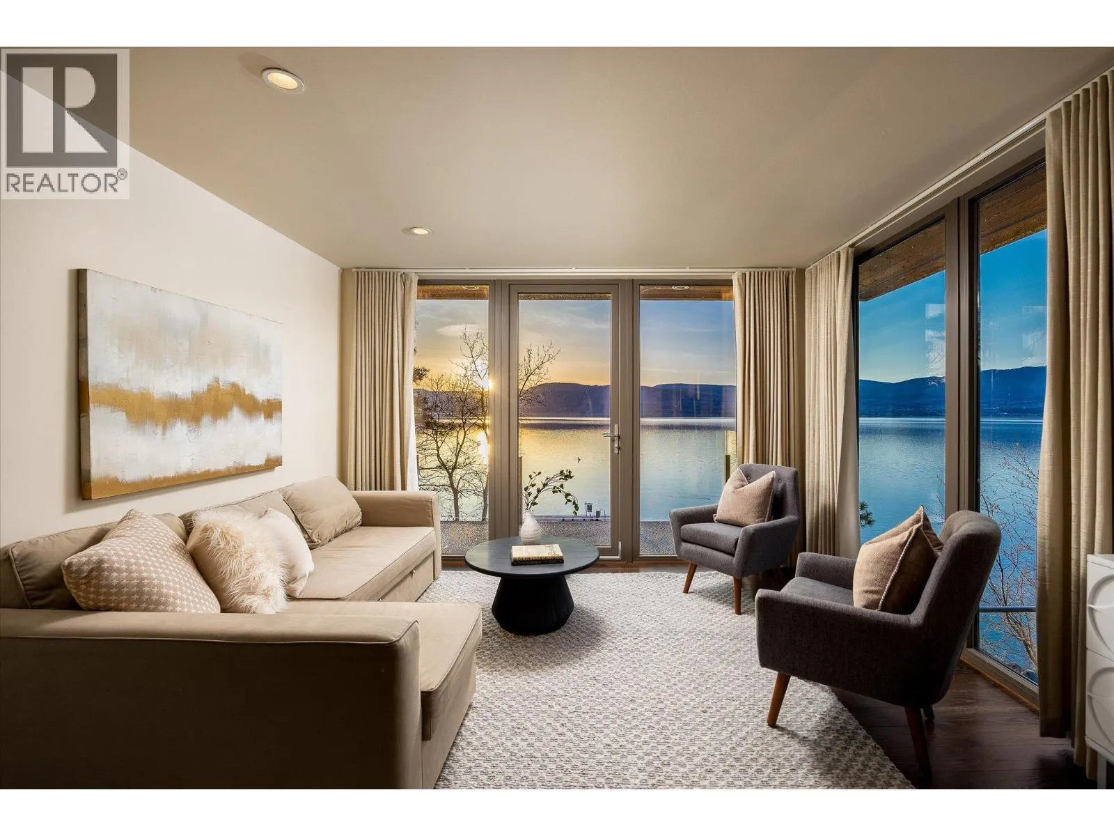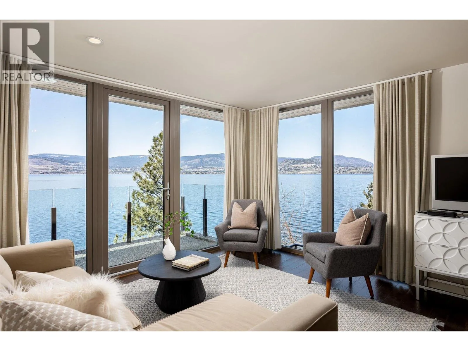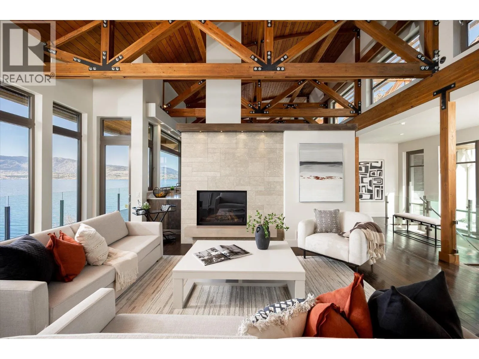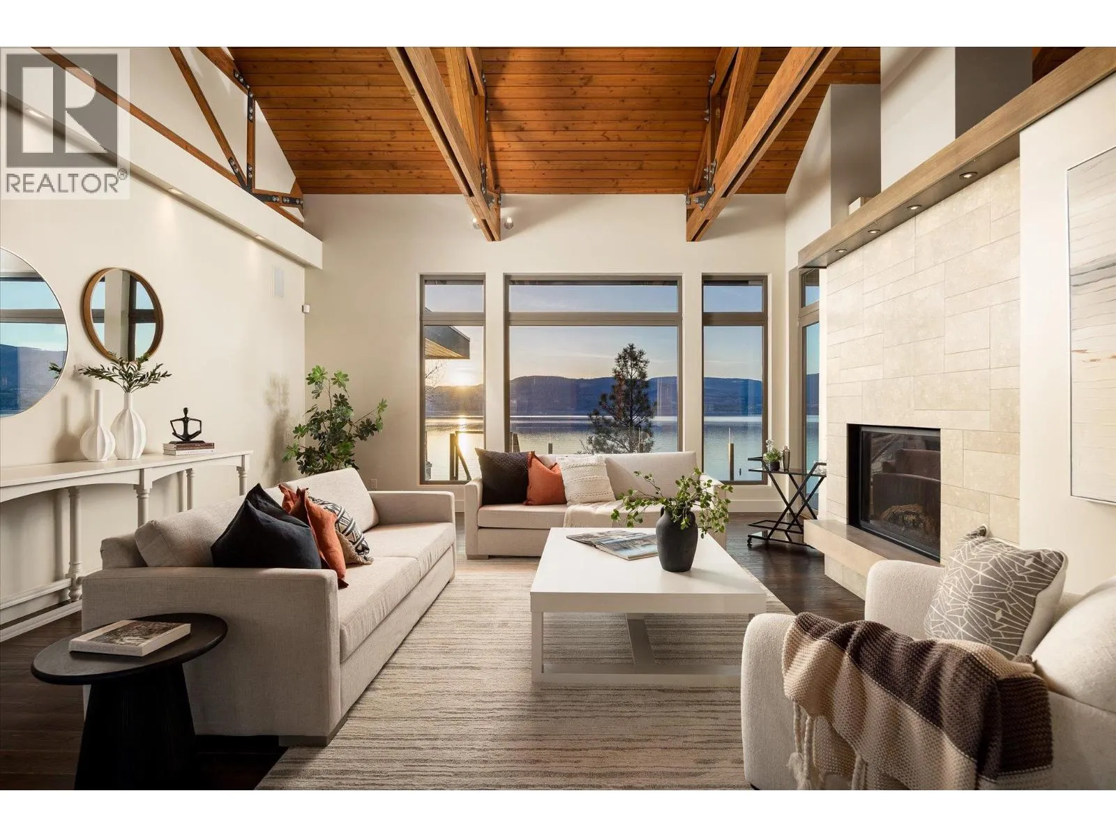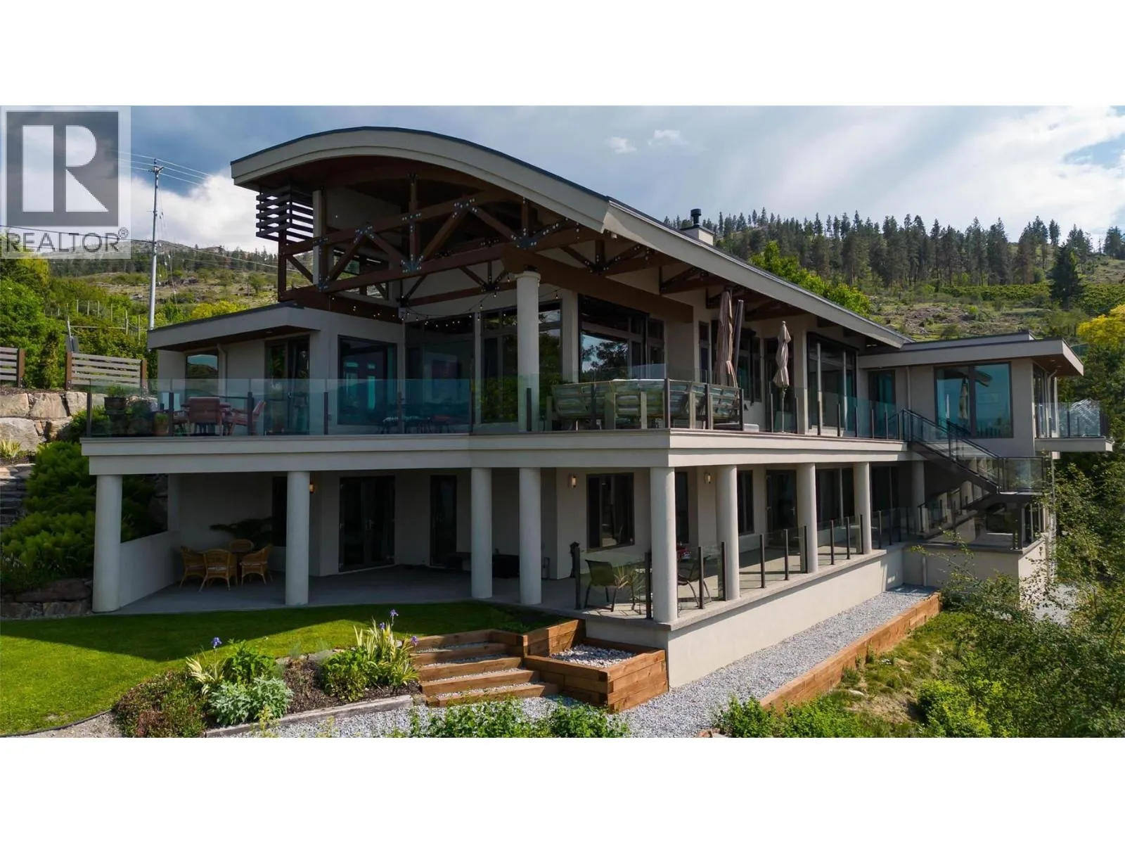 Known as Asparagus Bay, this home is built to celebrate Okanagan life. Its 1.297 acres - nurtured into an award-winning water-wise garden - offer a 5000 plus square foot house designed by Architect Robert Turik to create ideal views, a roofline that honors the surrounding hillsides, access to outdoor living spaces, sunlight exposure, & privacy. Six bedrooms & four bathrooms total! Inside, the ceiling follows curved trusses varying from 12.5 feet to 20 feet high; the main south-facing windows ensure year-round sun; European tilt windows allow for extra airflow and cross breezes; & a bank of upper windows draw in the morning light. Upstairs, the kitchen is book-ended by living spaces, the master & ensuite both provide lake views, and a one bedroom suite offers privacy to guests. Every room provides seamless access to outside, including 1100+ square feet of patio space w/ stairs to another deck below. Downstairs offers two bedrooms and one bathroom, a kitchenette, access to outdoors, storage, and another roughed-in suite with kitchen and bathroom plumbing. Outside, walk down an accessible path (the old orchard-donkey path!) to 219 feet of lakeshore frontage with beach-entrance swimming and a private 130 foot dock built in 2018, and featuring both a three tonne hoist and parking for guests. The lot is bisected by Lakeshore Road, so landscaped uplands offer additional parking, a deer-fenced garden with fruit trees and berries, space for a workshop, and long-term development/subdivision potential. Walking distance to Cedar Creek Winery, Martin's Lane, waterfront parks, & more. (id:27476)