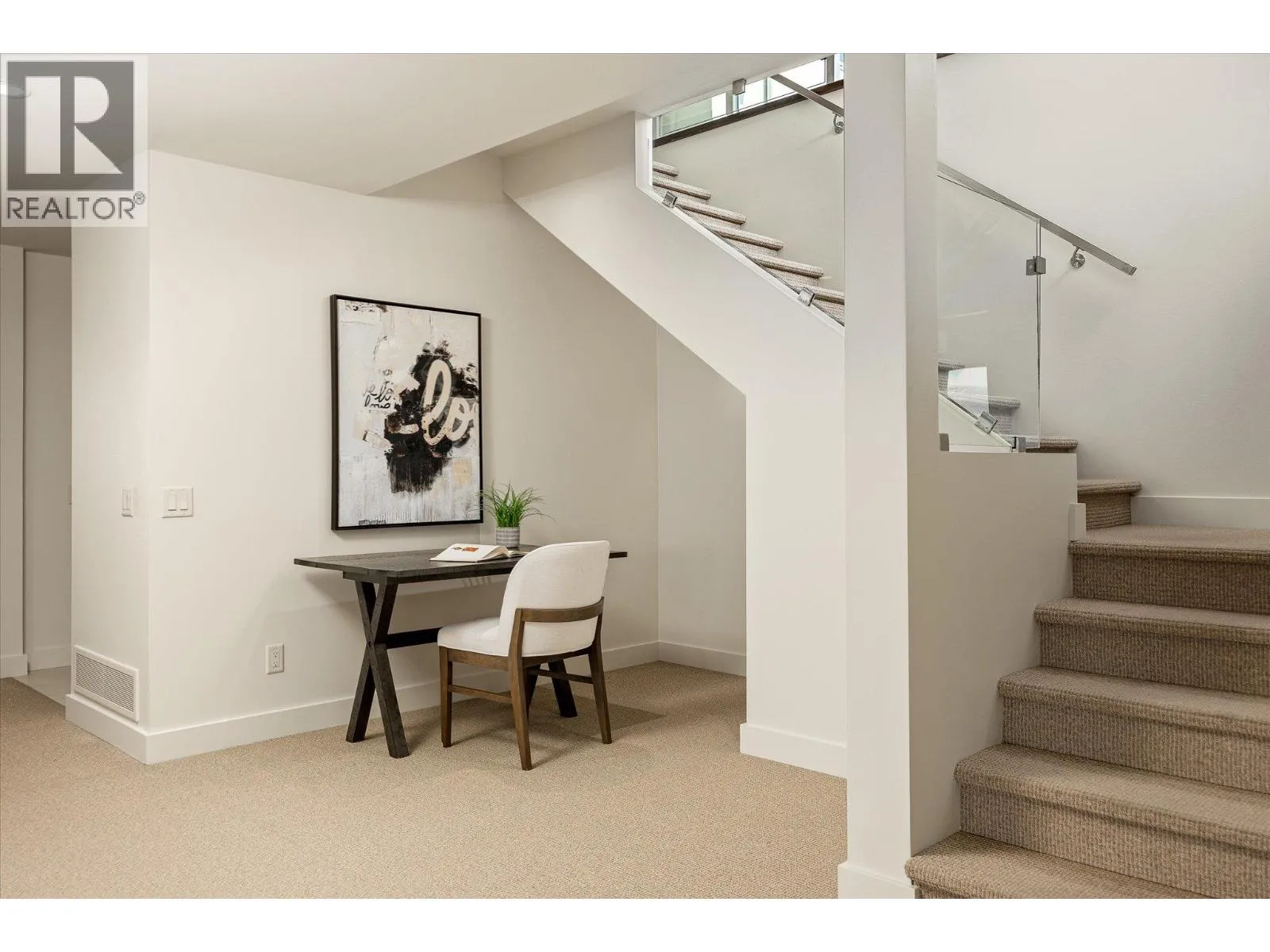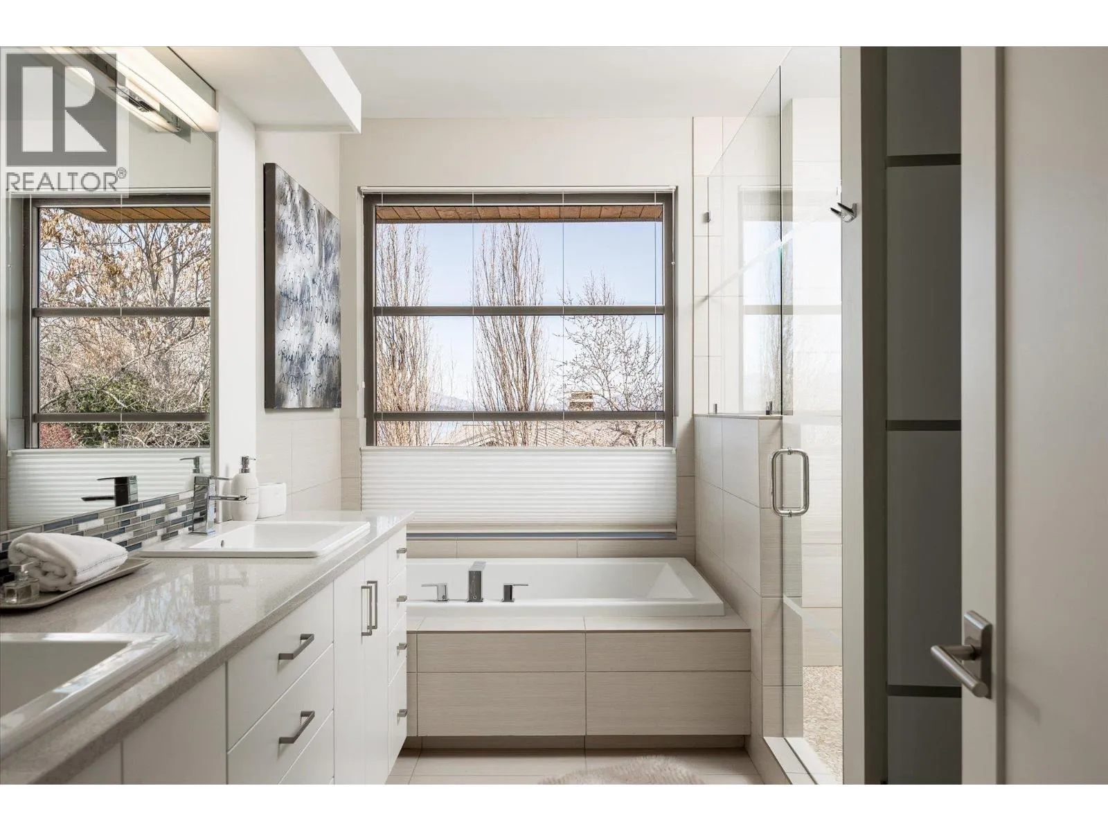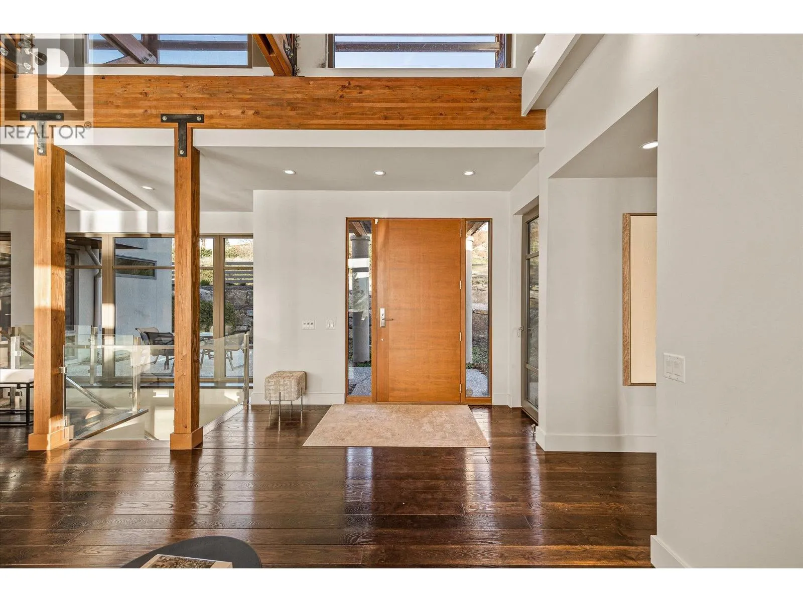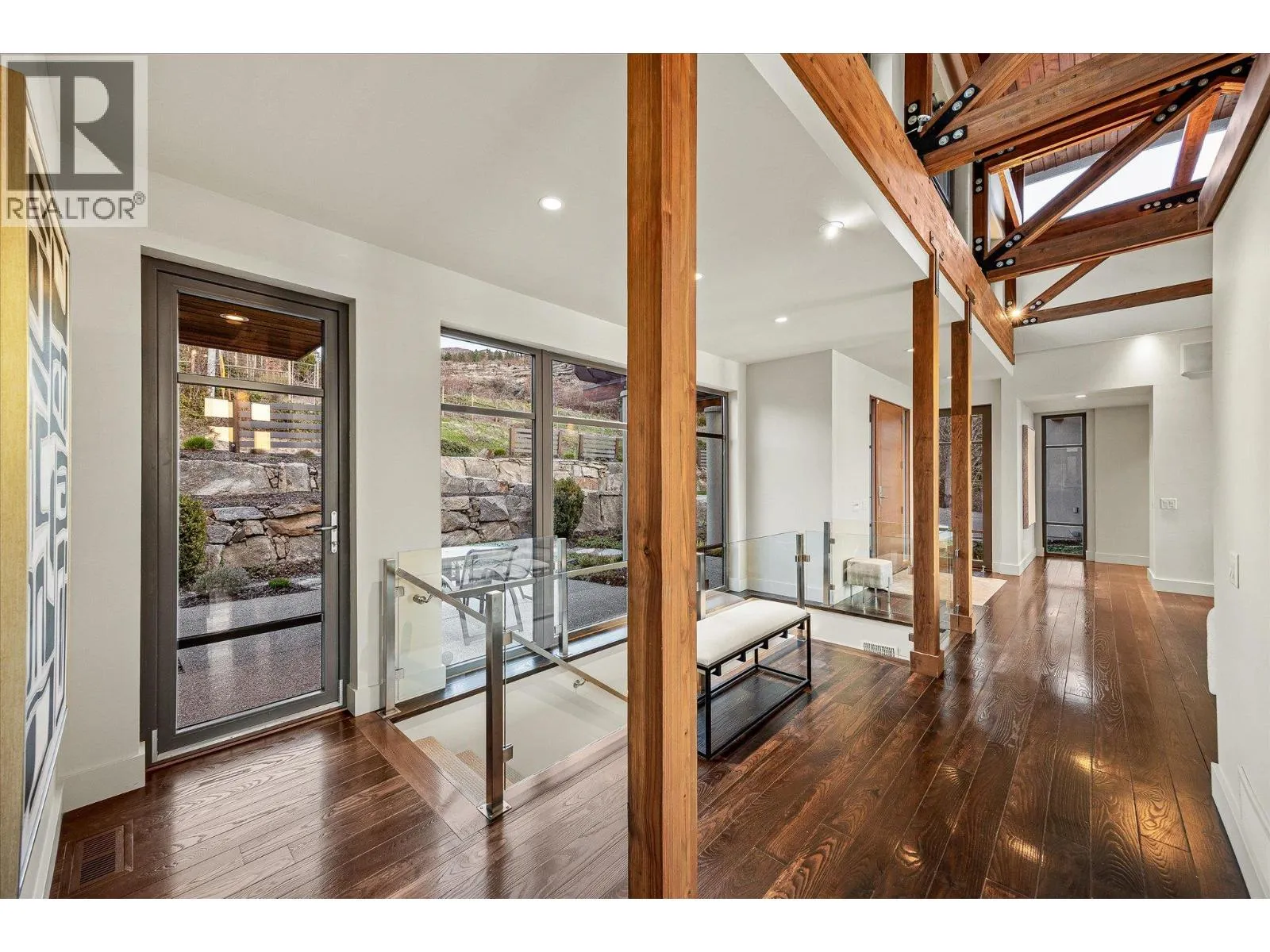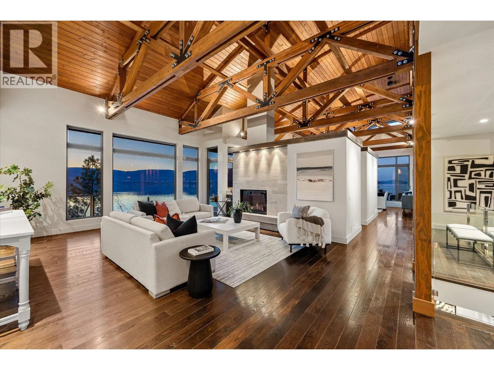 Known as Asparagus Bay, this home is built to celebrate Okanagan life. Its 1.297 acres - nurtured into an award-winning water-wise garden - offer a 5000 plus square foot house designed by Architect Robert Turik to create ideal views, a roofline that honors the surrounding hillsides, access to outdoor living spaces, sunlight exposure, & privacy. Six bedrooms & four bathrooms total! Inside, the ceiling follows curved trusses varying from 12.5 feet to 20 feet high; the main south-facing windows ensure year-round sun; European tilt windows allow for extra airflow and cross breezes; & a bank of upper windows draw in the morning light. Upstairs, the kitchen is book-ended by living spaces, the master & ensuite both provide lake views, and a one bedroom suite offers privacy to guests. Every room provides seamless access to outside, including 1100+ square feet of patio space w/ stairs to another deck below. Downstairs offers two bedrooms and one bathroom, a kitchenette, access to outdoors, storage, and another roughed-in suite with kitchen and bathroom plumbing. Outside, walk down an accessible path (the old orchard-donkey path!) to 219 feet of lakeshore frontage with beach-entrance swimming and a private 130 foot dock built in 2018, and featuring both a three tonne hoist and parking for guests. The lot is bisected by Lakeshore Road, so landscaped uplands offer additional parking, a deer-fenced garden with fruit trees and berries, space for a workshop, and long-term development/subdivision potential. Walking distance to Cedar Creek Winery, Martin's Lane, waterfront parks, & more. (id:27476)