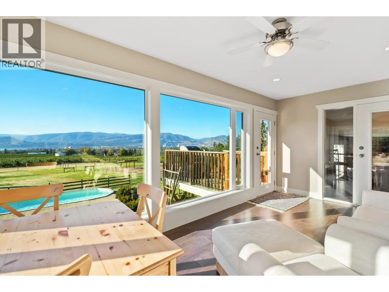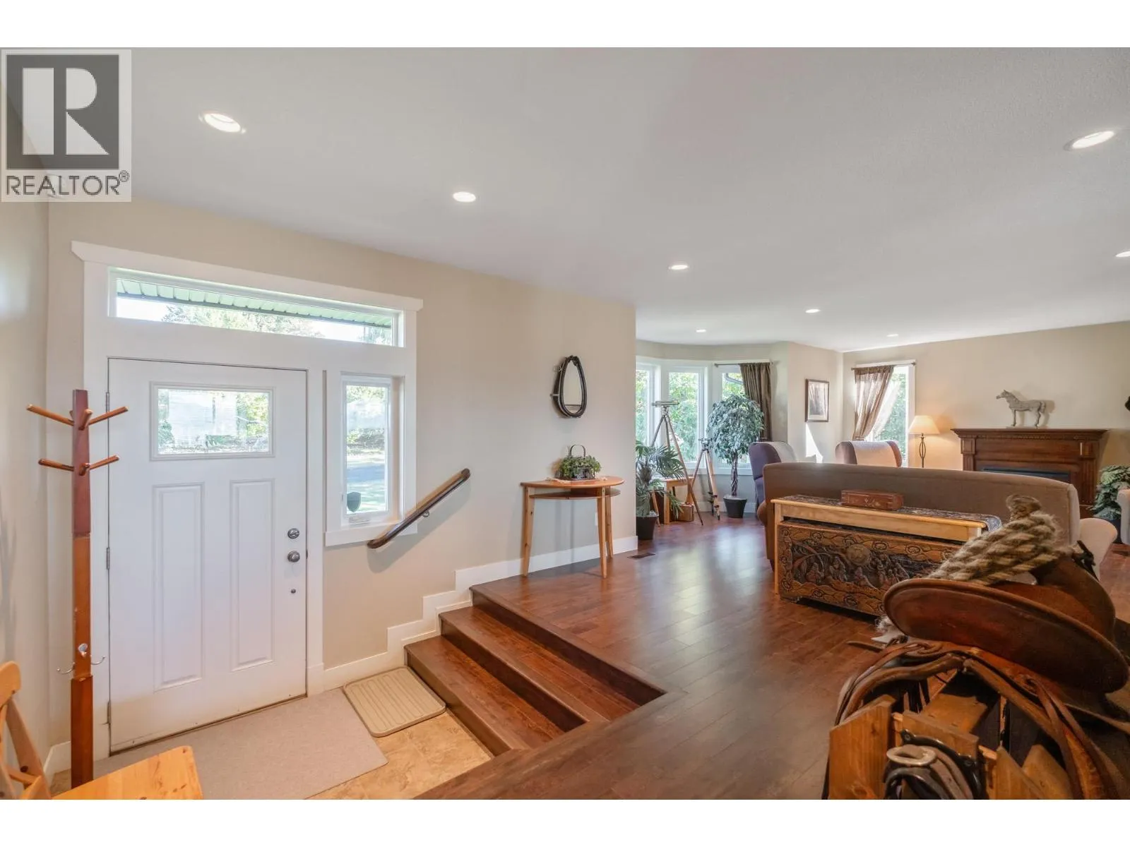Immerse yourself in some of the most captivating views Kelowna has to offer from this sought-after East Kelowna estate acreage. Gaze across Okanagan Lake as it winds from Peachland to Knox Mountain, framed by sparkling city lights and mountain silhouettes. Set amid orchard and vineyard estates, this serene location is just minutes from Orchard Park and downtown Kelowna. The renovated 4,280+ sq. ft. home is in pristine condition, thoughtfully designed to showcase the sweeping viewsâespecially from the expansive kitchen, where view facing cabinets sit below window height for uninterrupted sight lines. A bright, inviting sunroom quickly becomes everyoneâs favourite spot to relax. The versatile layout suits family living with multiple open concept gathering spaces, four bedrooms, a mudroom with dog wash, and a lower level easily suited thanks to a summer kitchen. Outdoors, unwind in the above-ground pool with its professionally designed deck and micro hot tubâperfect after a day of riding. The upper-level primary suite enjoys the homeâs best view, featuring large windows, his-and-hers closets, and a spa-style ensuite with separate tub and shower. Equestrians will love the two paddocks with shelters, riding ring, and two substantial shopsâone with a heated tack roomâplus an oversized double garage and several outbuildings. A modern apple and cherry orchard provides farm status for low taxes and easy, low-impact farming, all on this incredible 7 acre estate. (id:27476)