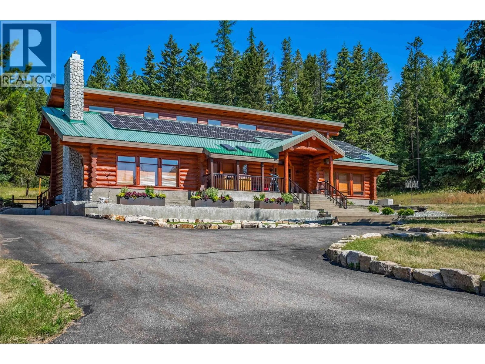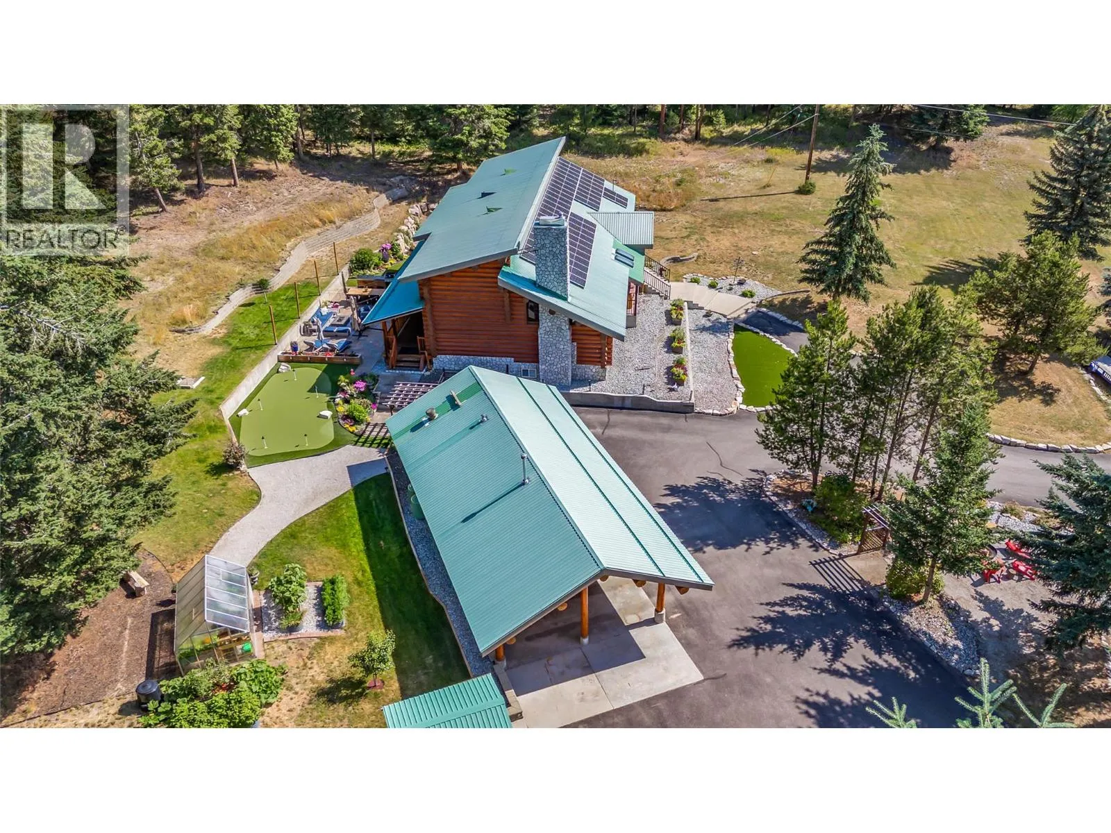 Reconnect with nature on this RARE 20-ACRE ESTATE featuring a custom 5 bed/3 bath CANADIAN BUILT LOG HOME that combines timeless charm with modern luxury. BONUS 3 bed/2 bath SECONDARY DWELLING w/ two suites for extended family, rental income / Airbnb opportunities. Located just mins to town, this beautiful property has seen an extreme amount of updating (500k+) in the last few years: paved driveway, solar panels, 24x28 shop, putting green, elec updates, hw tank, windows, substantial chinking, kitchen counters & so much more (Update details in PHOTOS). The gourmet kitchen is an entertainerâs dream with new quartzite surfaces, gas range, and a walk-in pantry. Enjoy two spacious living areas w/ vaulted ceilings & two new fireplaces. Top floor boasts a massive primary w/ spa-like ensuite & walk-in closet, plus two more spacious bedrooms & full bath. Huge games room w/ two extra bedrooms in the basement - perfect for Teens! Pet lovers will appreciate the pet wash station! Eco-friendly geothermal and solar heating, hot tub, heated garage/workshop w/ 220V, outbuilding + additional sheds for equipment/storage complete this exceptional offering. Surrounded by rolling lawns, wooded grounds and groomed trails this is an ideal setting for horses, nature enthusiasts and provides endless outdoor recreation. Located near Black Mtn Golf course and elementary school, parks & hiking. 10 mins to Orchard Park - 30 mins to Big White! SHOWS AA+ A MUST SEE! FLYTHROUGH: https://youtu.be/EfX4jZq-6rg (id:27476)