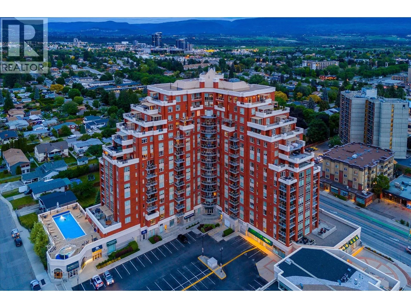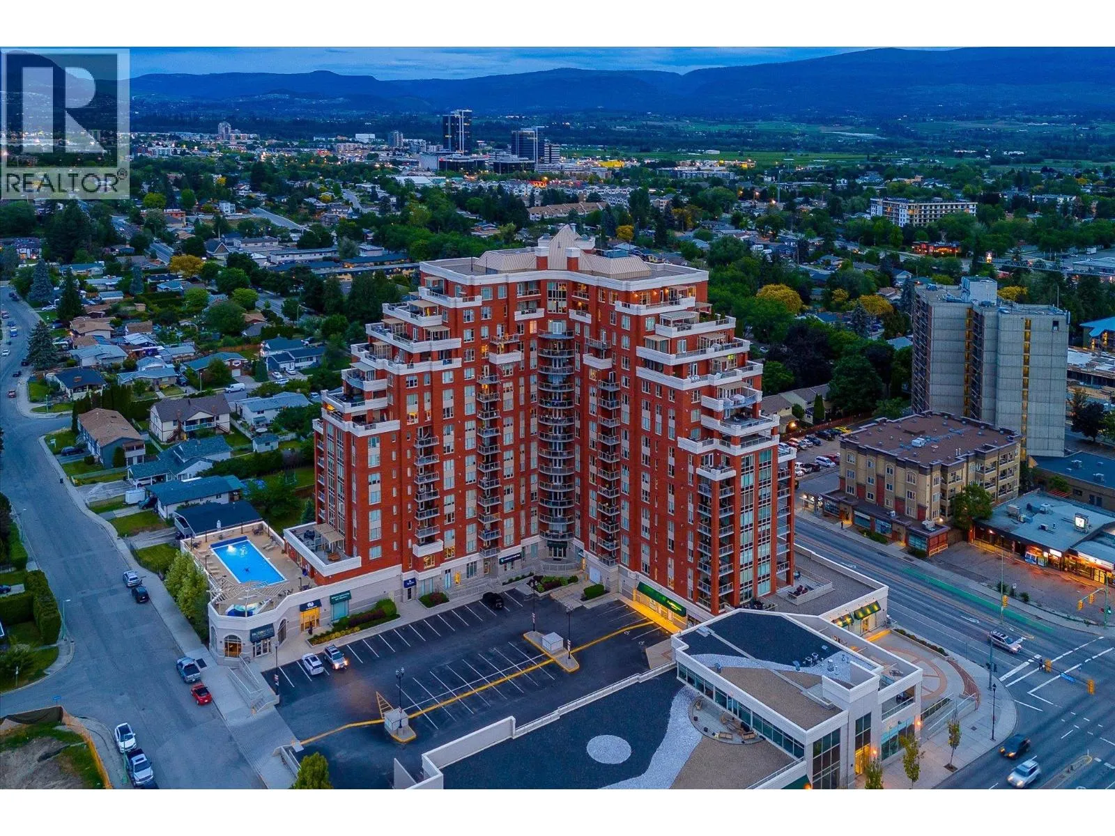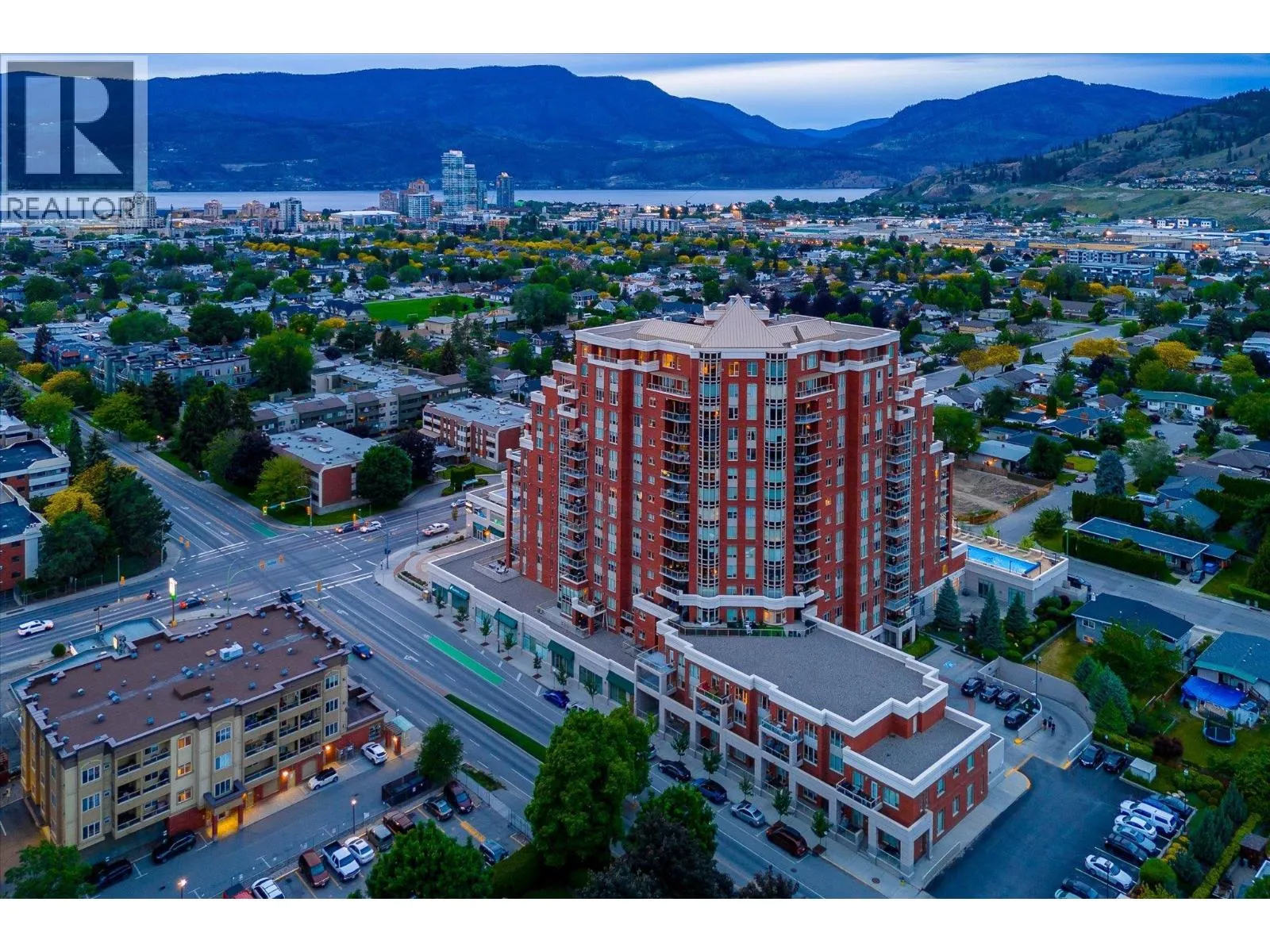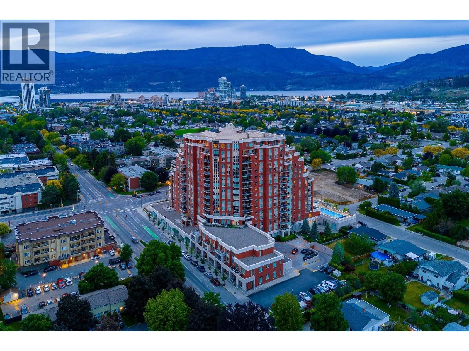 Two Bedroom + Den with 2 parking stallsâthis condo puts you right on the edge of downtown Kelowna. Lake, city, and mountain views from the 12th floor. Located in one of the cityâs most sought-after buildings, residents enjoy premium amenities including a pool, hot tub, dry sauna, steam room, and gym, with groceries just an elevator ride away. The unit itself is spacious and features a smart split-bedroom floor plan and a den with sliding doors complete with a built-in Murphy bedâ perfect for guests or an ultra flexible work or hobby space. Enjoy a generous kitchen with new stainless steel appliances, an oversized island, plenty of storage, and ample prep spaceâperfect for hosting or everyday living. In the living room, a cozy gas fireplace anchors the space, framed by big windows and stunning views. Retreat to the primary bedroom, where you will find a spacious walk in closet, as well as an ensuite with dual vanities and a separate soaker tub. Step out onto the private balcony to soak up the scenery, all framing those iconic Kelowna views. This condo also comes with two parking spots and a storage locker, and the building welcomes 2 dogs (up to 14"" at the shoulder) or 2 cats! Whether itâs biking the nearby trails, beach days, brewery hopping, or dining out, this location connects you to everything If youâre looking for comfort, convenience, and a view, this condo is sure to check all of the boxes! (id:27476)