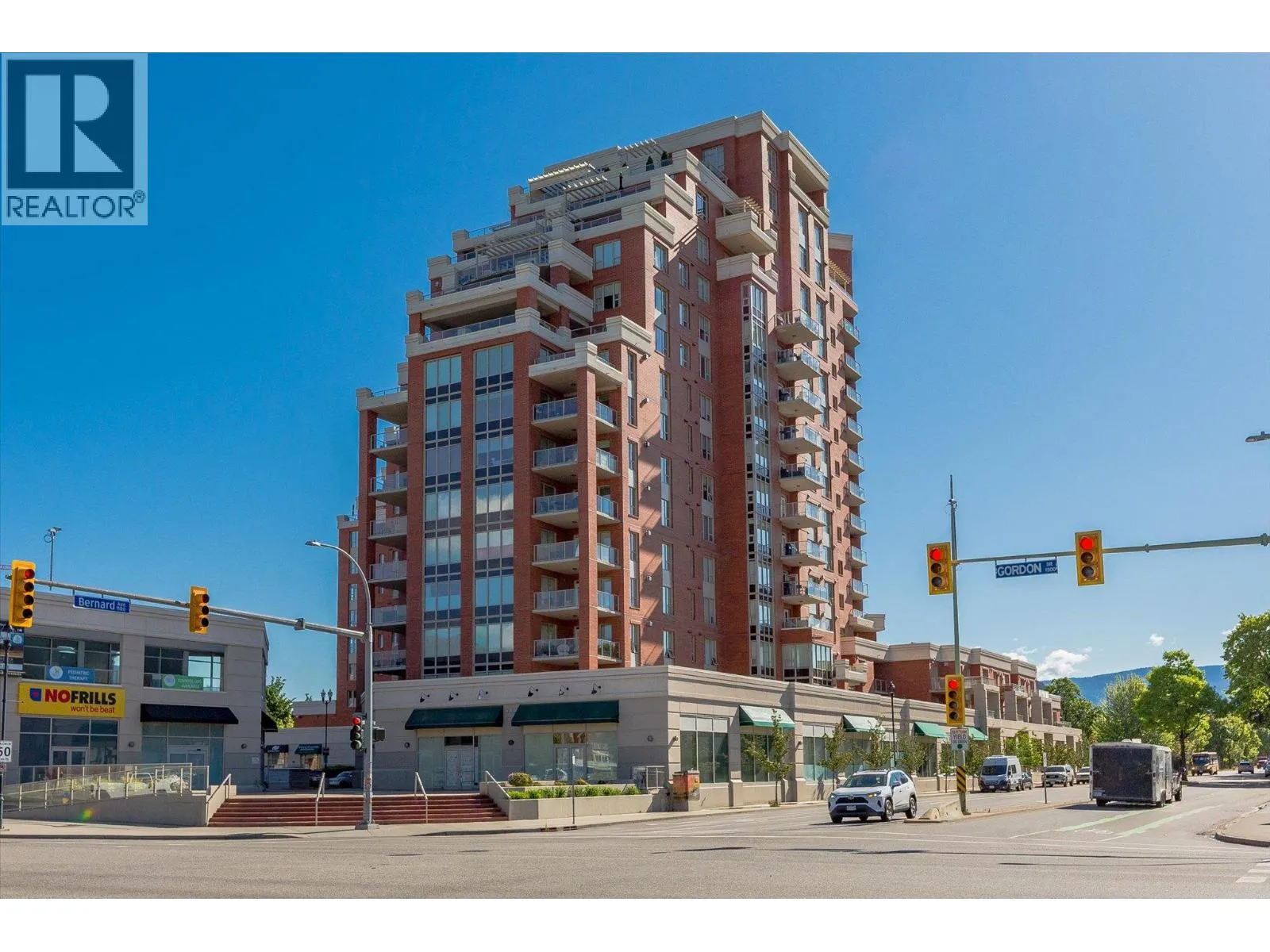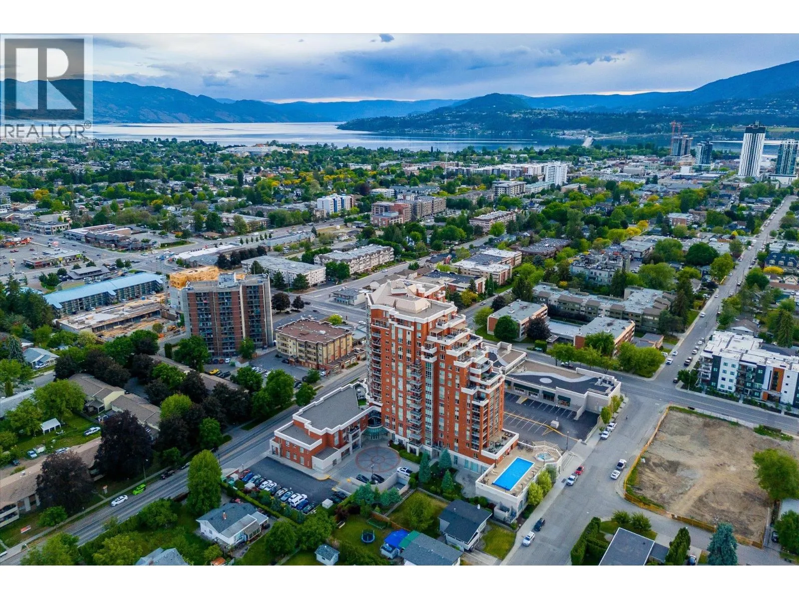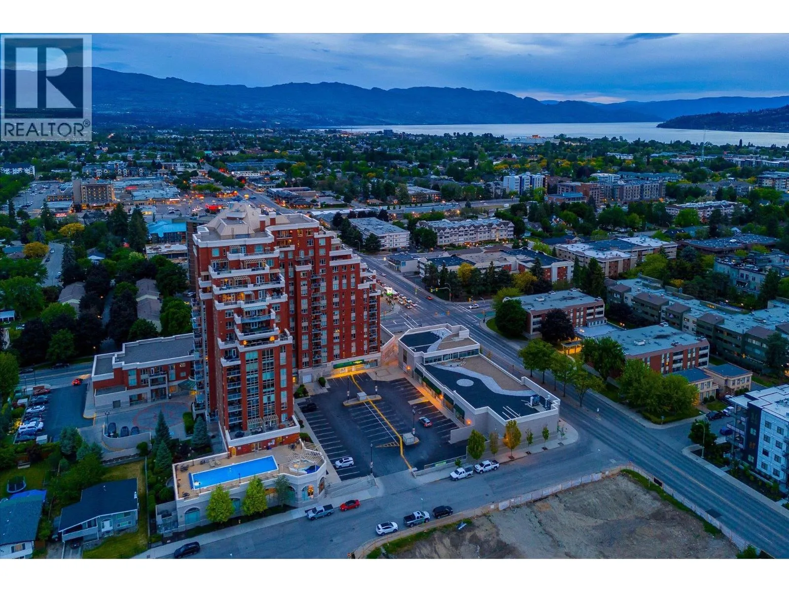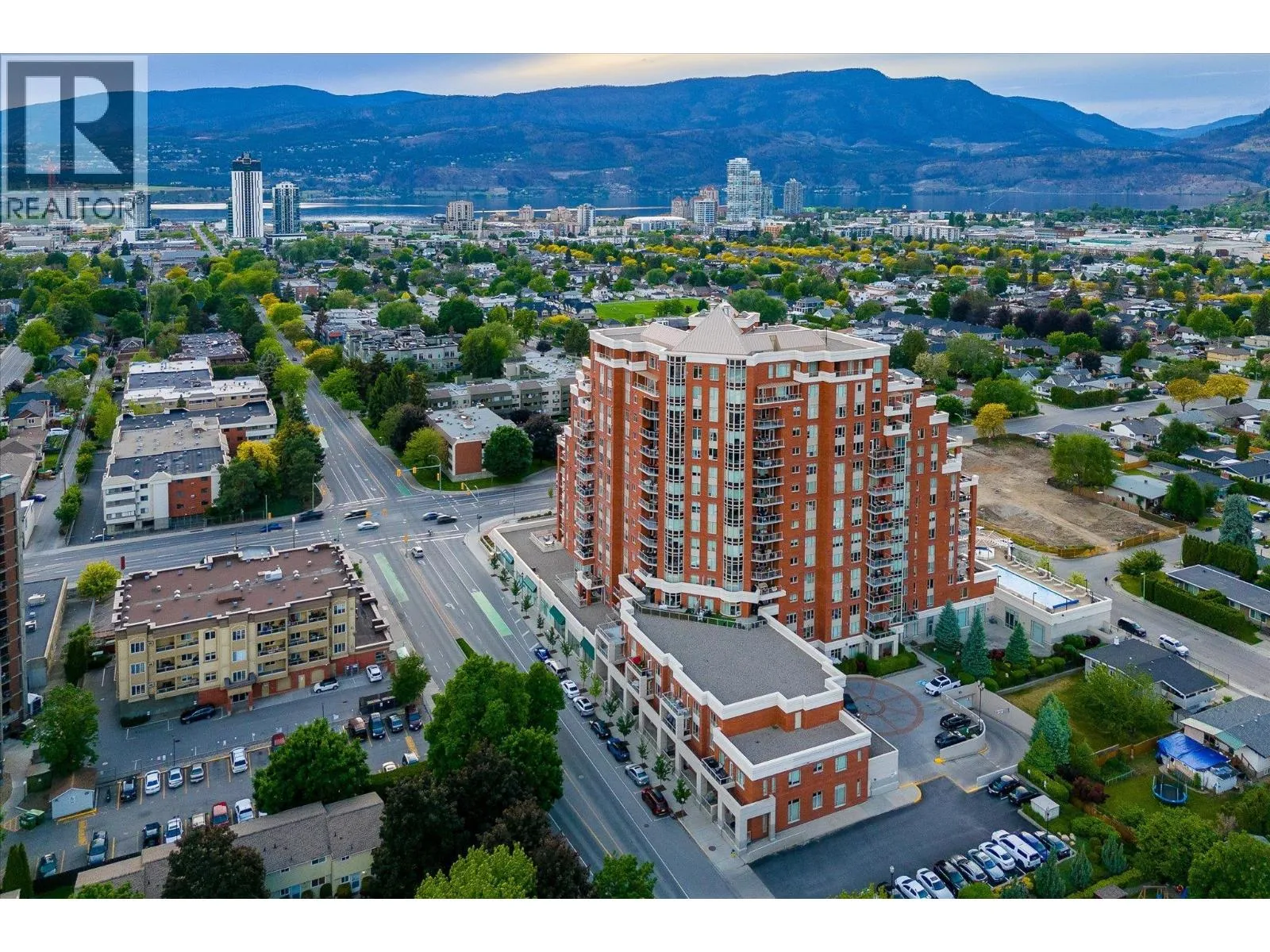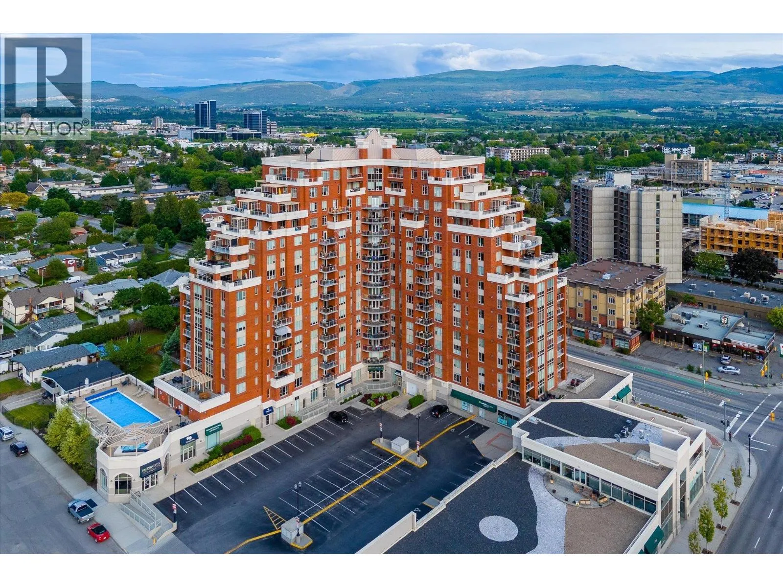 Two Bedroom + Den with 2 parking stallsâthis condo puts you right on the edge of downtown Kelowna. Lake, city, and mountain views from the 12th floor. Located in one of the cityâs most sought-after buildings, residents enjoy premium amenities including a pool, hot tub, dry sauna, steam room, and gym, with groceries just an elevator ride away. The unit itself is spacious and features a smart split-bedroom floor plan and a den with sliding doors complete with a built-in Murphy bedâ perfect for guests or an ultra flexible work or hobby space. Enjoy a generous kitchen with new stainless steel appliances, an oversized island, plenty of storage, and ample prep spaceâperfect for hosting or everyday living. In the living room, a cozy gas fireplace anchors the space, framed by big windows and stunning views. Retreat to the primary bedroom, where you will find a spacious walk in closet, as well as an ensuite with dual vanities and a separate soaker tub. Step out onto the private balcony to soak up the scenery, all framing those iconic Kelowna views. This condo also comes with two parking spots and a storage locker, and the building welcomes 2 dogs (up to 14"" at the shoulder) or 2 cats! Whether itâs biking the nearby trails, beach days, brewery hopping, or dining out, this location connects you to everything If youâre looking for comfort, convenience, and a view, this condo is sure to check all of the boxes! (id:27476)