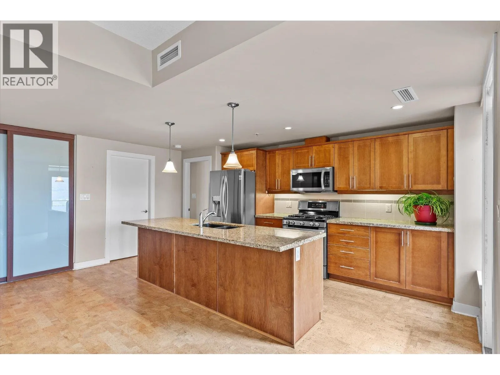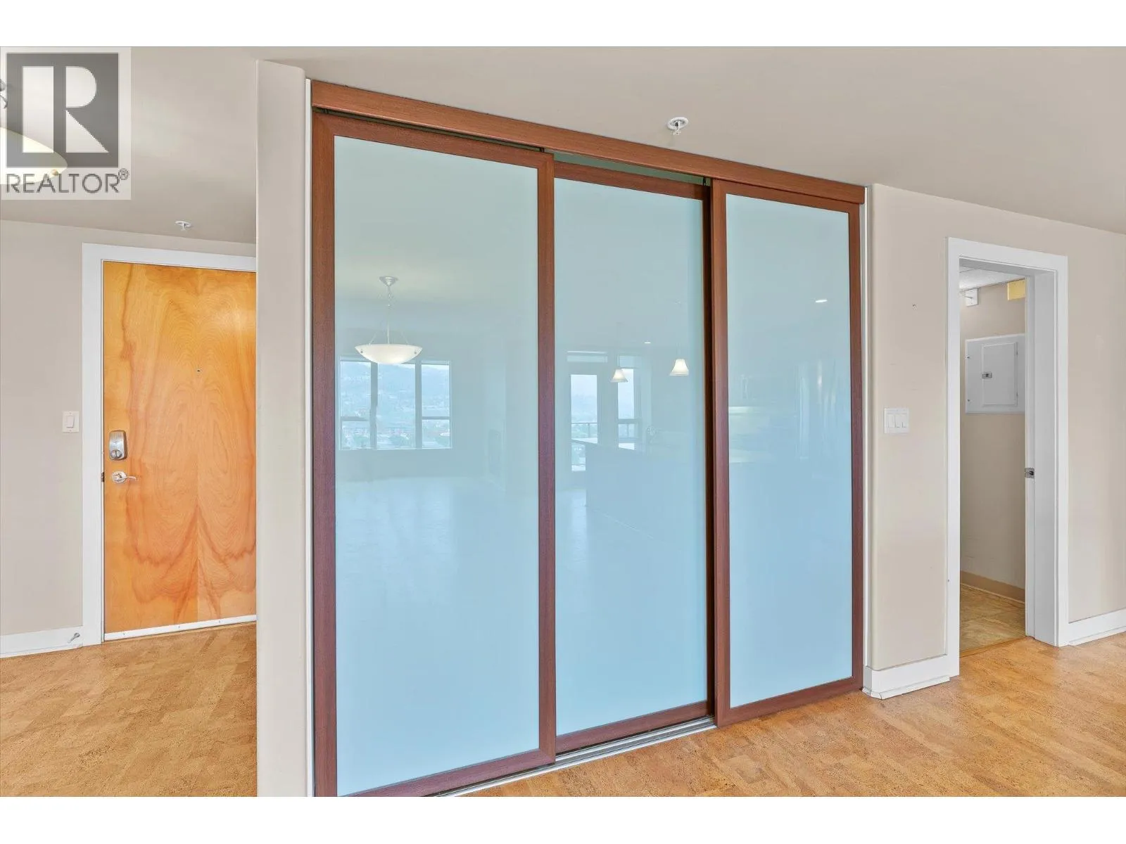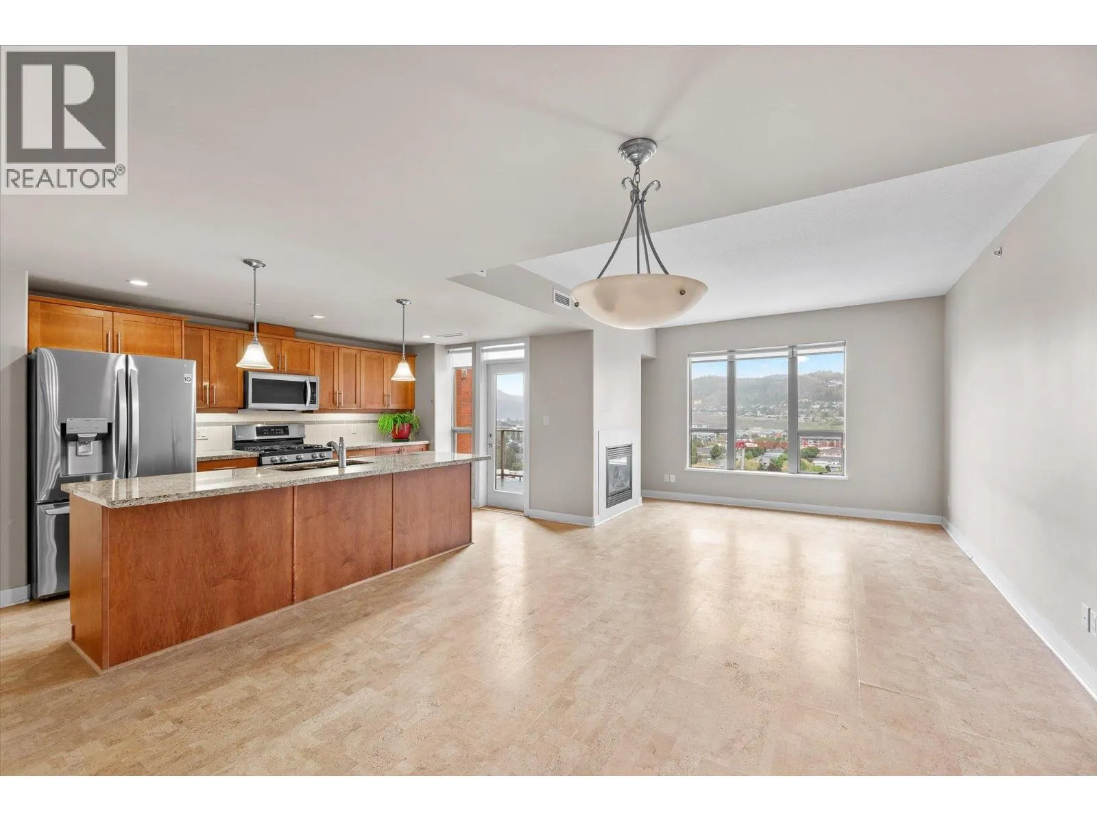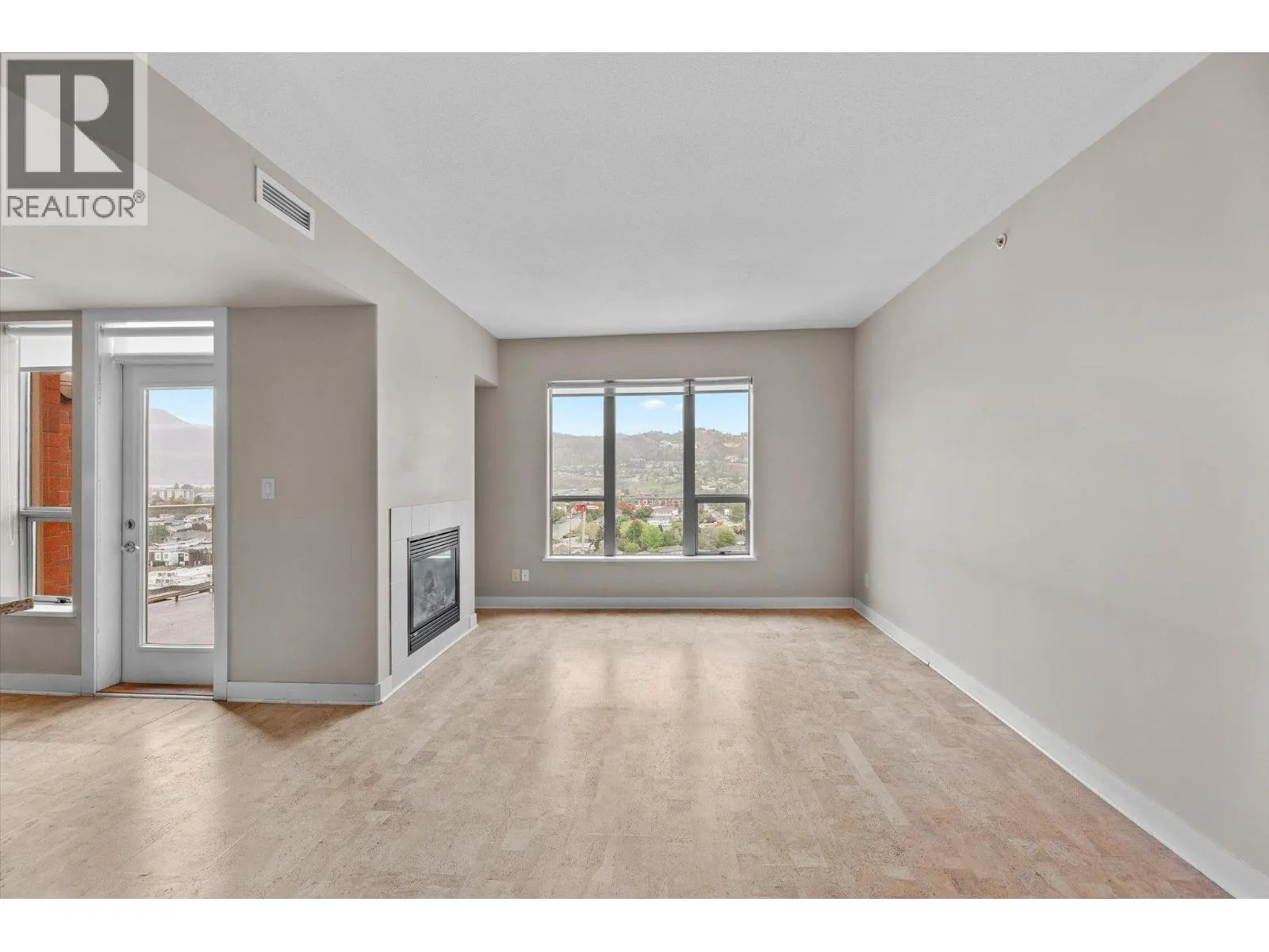 Two Bedroom + Den with 2 parking stallsâthis condo puts you right on the edge of downtown Kelowna. Lake, city, and mountain views from the 12th floor. Located in one of the cityâs most sought-after buildings, residents enjoy premium amenities including a pool, hot tub, dry sauna, steam room, and gym, with groceries just an elevator ride away. The unit itself is spacious and features a smart split-bedroom floor plan and a den with sliding doors complete with a built-in Murphy bedâ perfect for guests or an ultra flexible work or hobby space. Enjoy a generous kitchen with new stainless steel appliances, an oversized island, plenty of storage, and ample prep spaceâperfect for hosting or everyday living. In the living room, a cozy gas fireplace anchors the space, framed by big windows and stunning views. Retreat to the primary bedroom, where you will find a spacious walk in closet, as well as an ensuite with dual vanities and a separate soaker tub. Step out onto the private balcony to soak up the scenery, all framing those iconic Kelowna views. This condo also comes with two parking spots and a storage locker, and the building welcomes 2 dogs (up to 14"" at the shoulder) or 2 cats! Whether itâs biking the nearby trails, beach days, brewery hopping, or dining out, this location connects you to everything If youâre looking for comfort, convenience, and a view, this condo is sure to check all of the boxes! (id:27476)