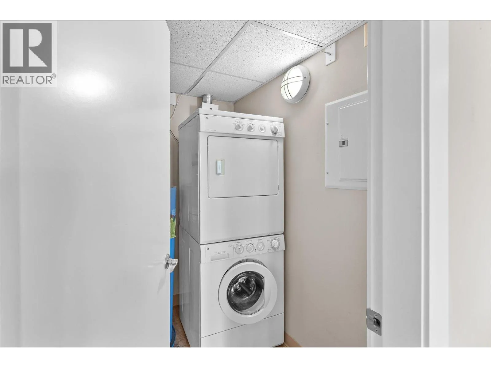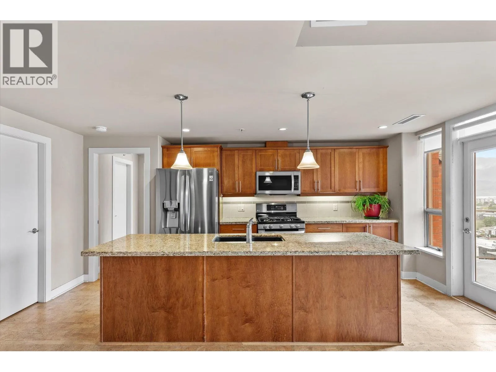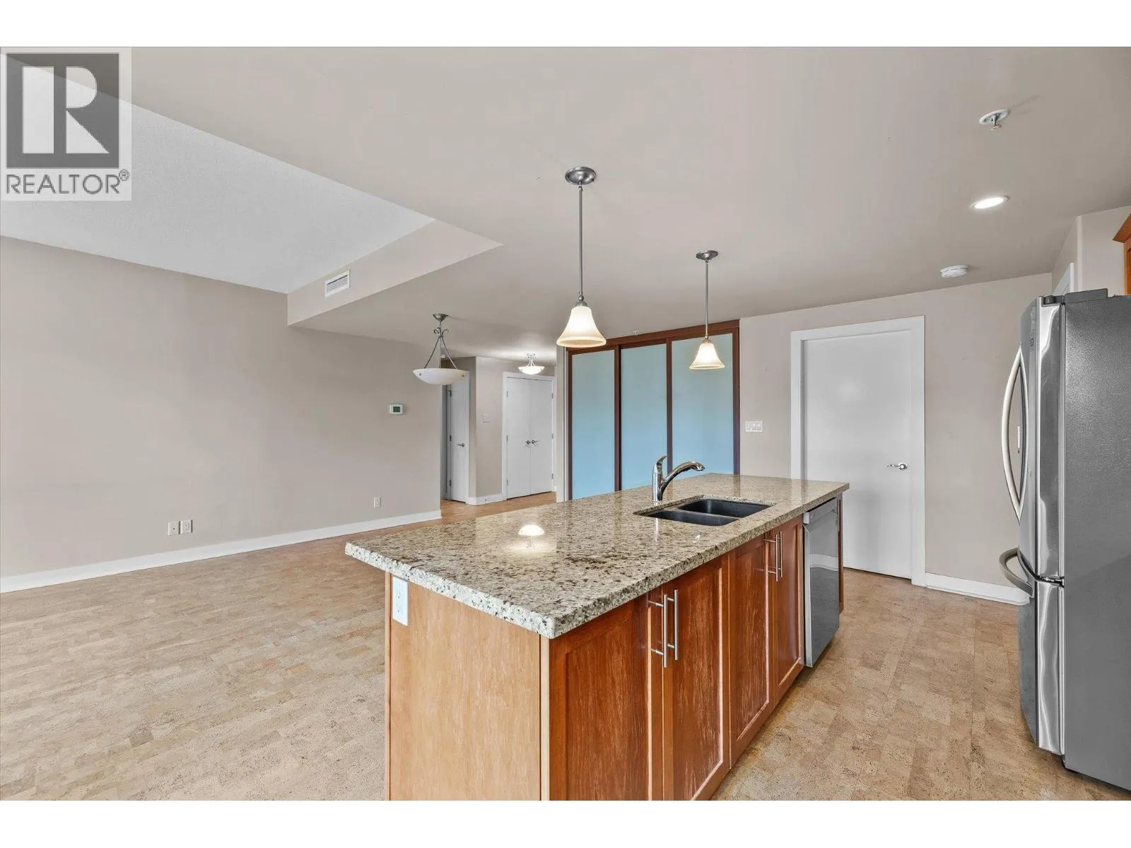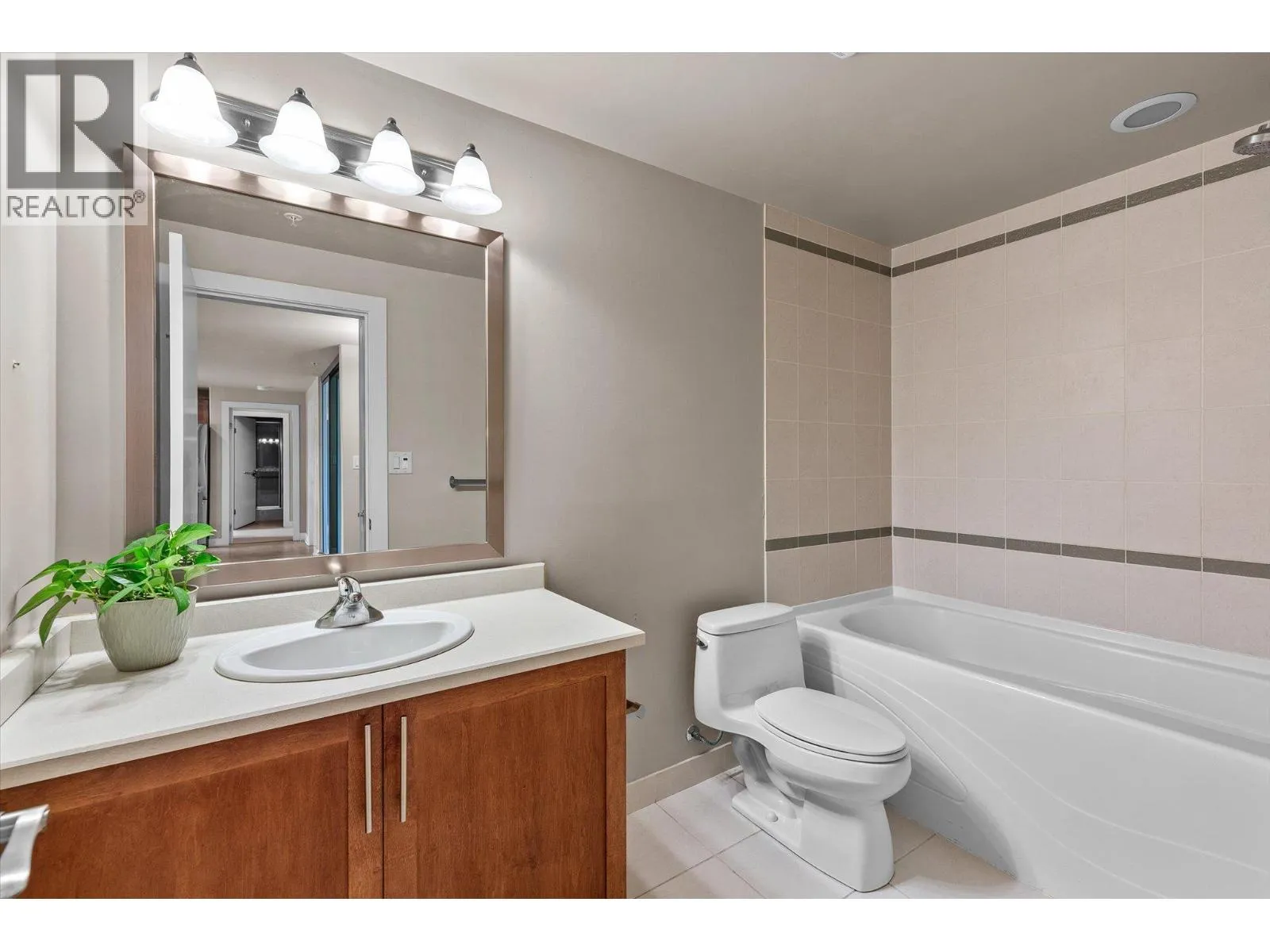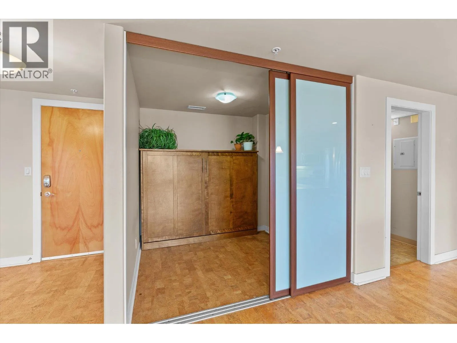 Two Bedroom + Den with 2 parking stallsâthis condo puts you right on the edge of downtown Kelowna. Lake, city, and mountain views from the 12th floor. Located in one of the cityâs most sought-after buildings, residents enjoy premium amenities including a pool, hot tub, dry sauna, steam room, and gym, with groceries just an elevator ride away. The unit itself is spacious and features a smart split-bedroom floor plan and a den with sliding doors complete with a built-in Murphy bedâ perfect for guests or an ultra flexible work or hobby space. Enjoy a generous kitchen with new stainless steel appliances, an oversized island, plenty of storage, and ample prep spaceâperfect for hosting or everyday living. In the living room, a cozy gas fireplace anchors the space, framed by big windows and stunning views. Retreat to the primary bedroom, where you will find a spacious walk in closet, as well as an ensuite with dual vanities and a separate soaker tub. Step out onto the private balcony to soak up the scenery, all framing those iconic Kelowna views. This condo also comes with two parking spots and a storage locker, and the building welcomes 2 dogs (up to 14"" at the shoulder) or 2 cats! Whether itâs biking the nearby trails, beach days, brewery hopping, or dining out, this location connects you to everything If youâre looking for comfort, convenience, and a view, this condo is sure to check all of the boxes! (id:27476)