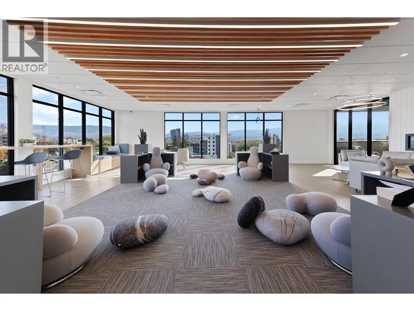 Five Crossings is an super cool building. It's so amenity rich and truly a lifestyle unlike any other. This thoughtfully designed micro suite maximizes space with a built-in Murphy bed, clever storage, a sleek galley kitchen, and a fully curated furniture package. The building offers resort-style amenities including a well equipped fitness centre, bike storage, dog wash, and a sophisticated lounge with a full kitchen, golf simulator, pool table, and elegant fireplace. The sixth floor reveals a serene yoga lounge and an expansive rooftop deck with BBQ area, covered outdoor dining/fireplace with breathtaking city and mountain views. The rooftop also features many cozy fire pit areas to enjoy with friends. On the ground level, enjoy a bocce area and a dog run. Additional conveniences include MODO car share, EV chargers, and a nice park across the street, all steps from Capri shopping and many restaurants. This condo combines style, comfort, and an unrivaled urban lifestyle. (id:27476)