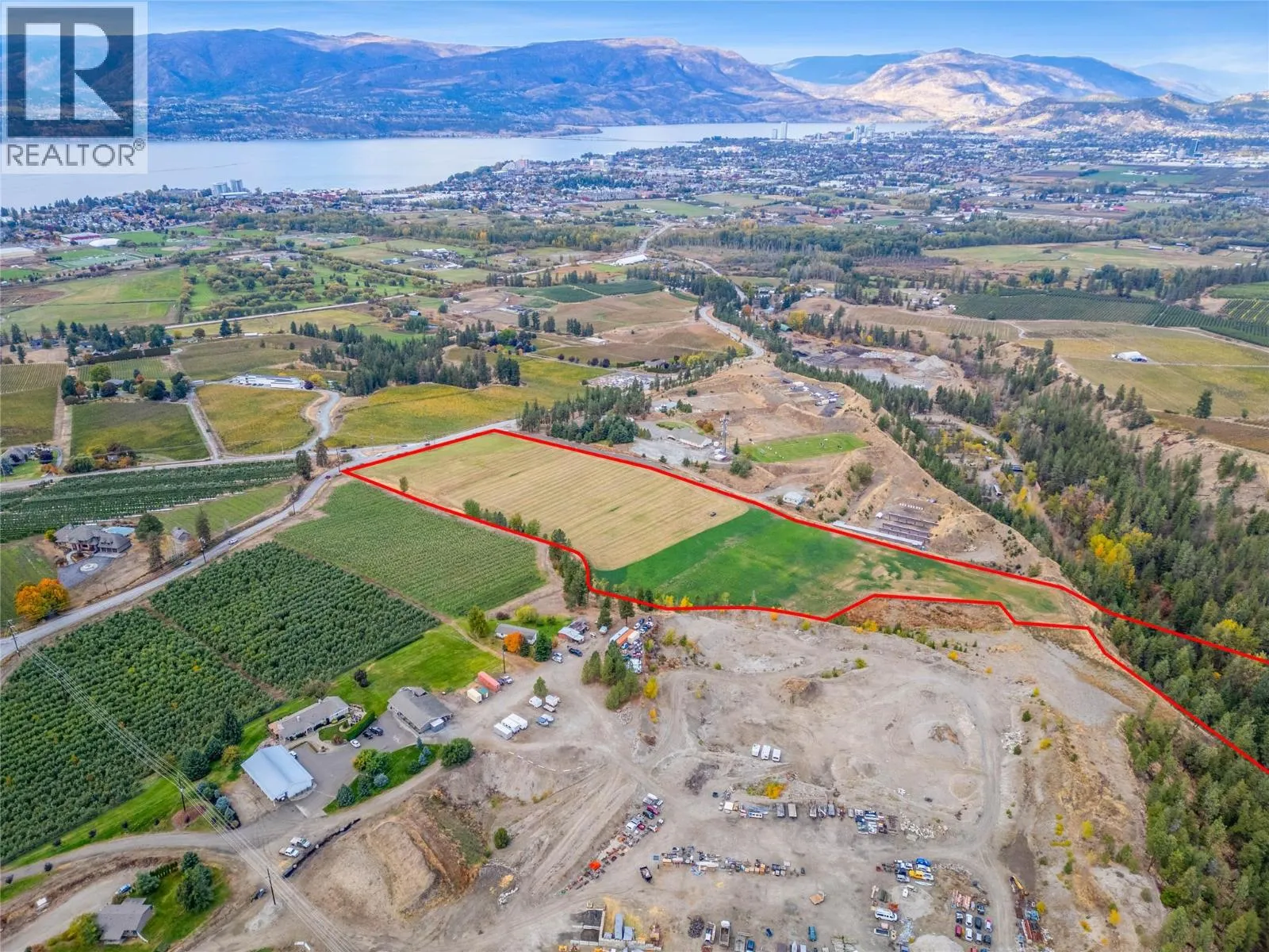Discover nearly 20 acres of level, fertile land in a supreme Kelowna location. This is an extremely rare opportunity to own an exceptional agricultural and lifestyle property. The property offers unmatched privacy and spectacular panoramic views of Okanagan Lake and the city below, creating a stunning backdrop for your future dream home. Here, you can embrace the tranquility of nature without sacrificing the conveniences of city living. Perfectly positioned just minutes from schools, parks, shopping, and the beach, this property provides an ideal balance between serene country living and modern accessibility. Currently planted in alfalfa, this versatile acreage is ideally suited for tree fruits, vineyards, berries, or vegetable crops. Whether youâre looking to expand your agricultural pursuits or build a private estate, this remarkable property combines productivity, beauty, and convenience in one extraordinary package. (id:27476)