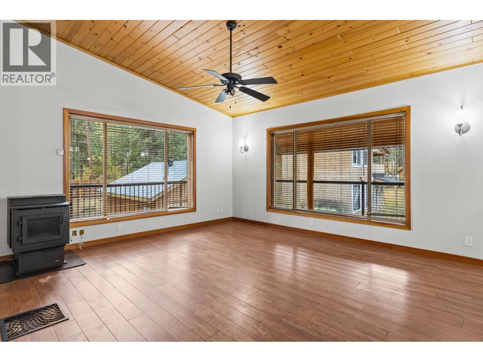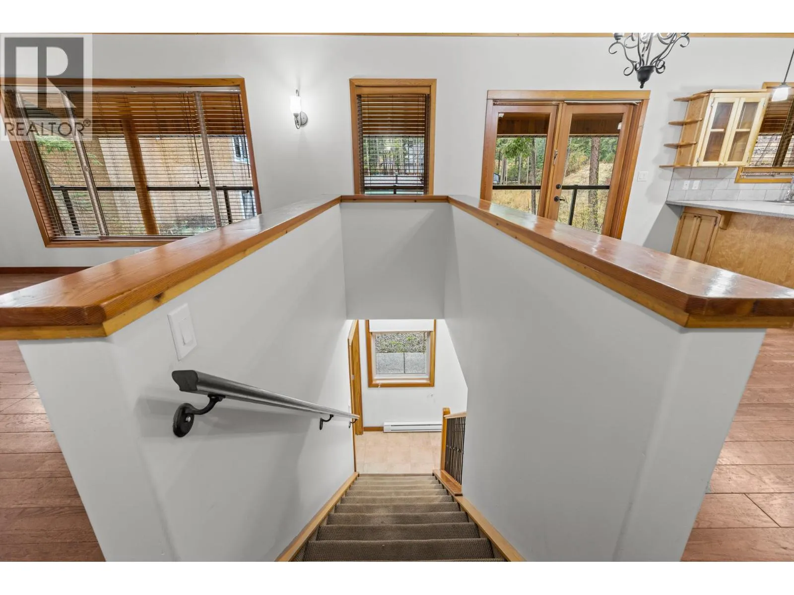 Welcome to this cozy custom-built home, located on generous 0.44 acre lot, close to parks, trails, and recreation, with four bedrooms, three bathrooms, and 2,383 square feet of living space. The main level features open concept living with vaulted ceilings, beautiful wood ceilings, and a full wrap around covered deck. The primary bedroom has a large closet and full ensuite, while a second bedroom and full bath finish his level. Downstairs, the basement has been completely redone with new floors, paint, lighting, and a beautiful bathroom with dual vanities. This level is roughed in for a suite with separate entrance, so there is great income potential. There is an oversized detached double garage + limitless outdoor parking, perfect for all the cars, toys, and storage. Well maintained exterior with beautiful woodwork and beams, and a long-lasting metal roof. A great property for those who want a lot of space, a lot of privacy, income potential, and beautiful natural surroundings. (id:27476)