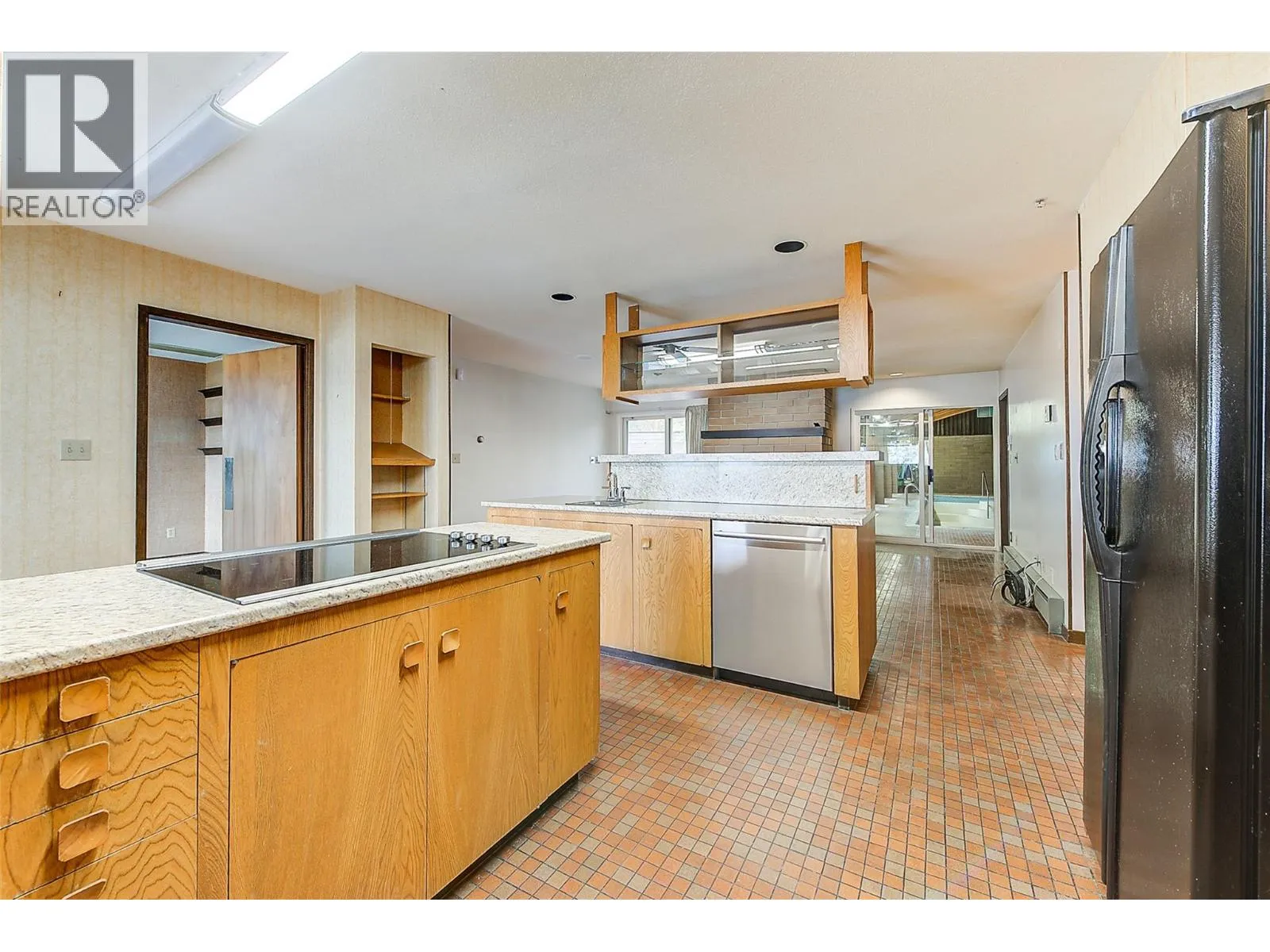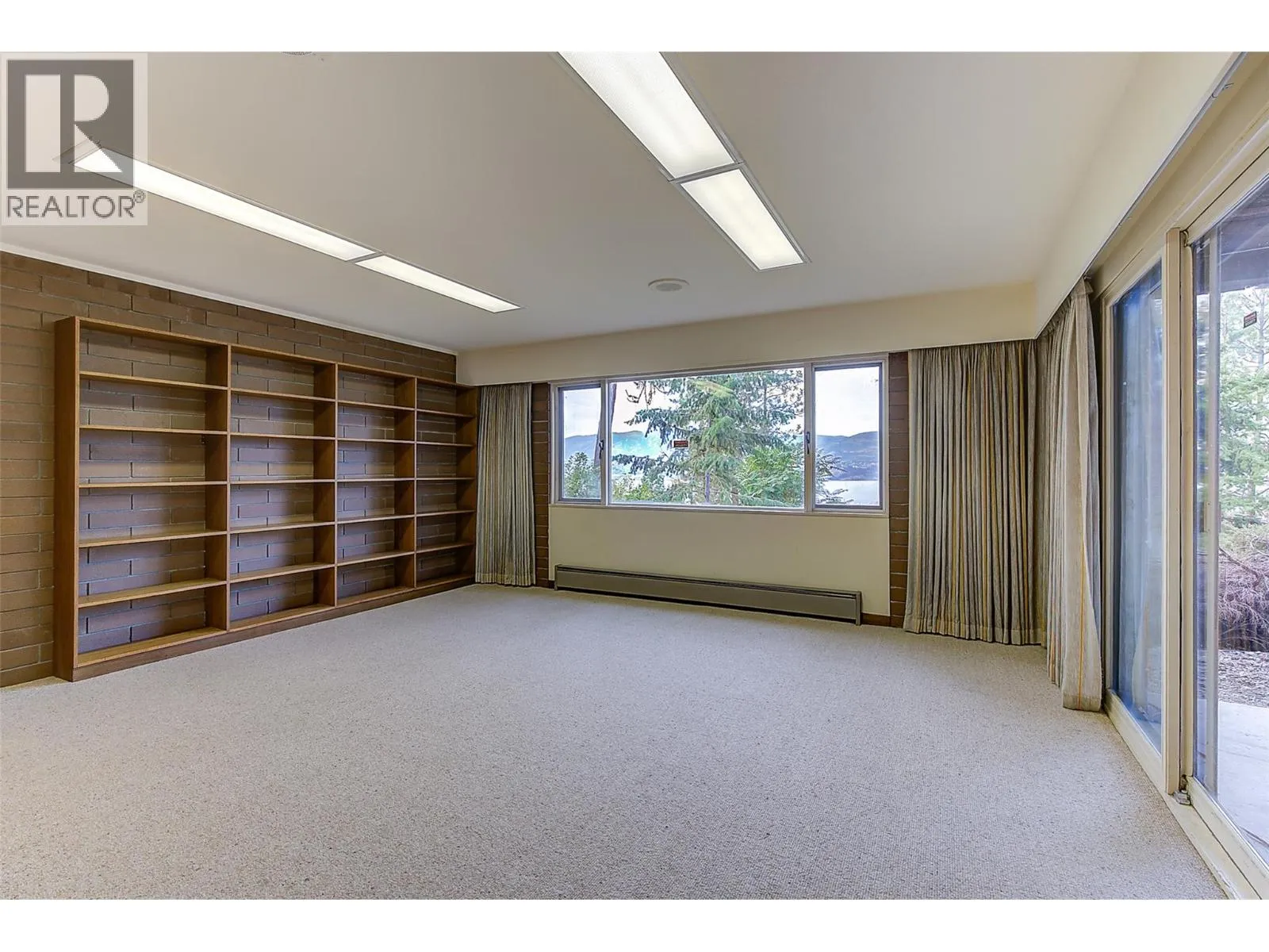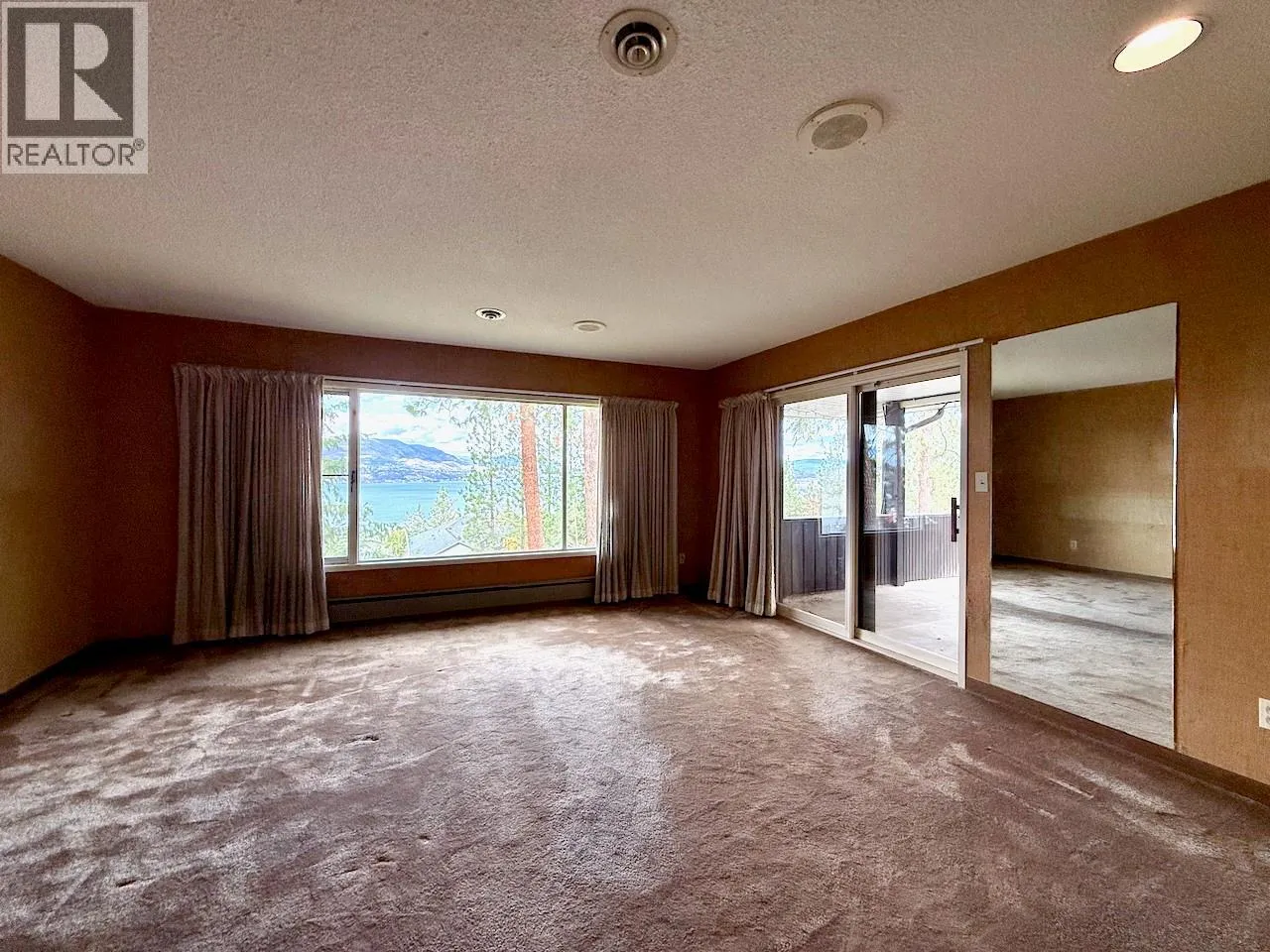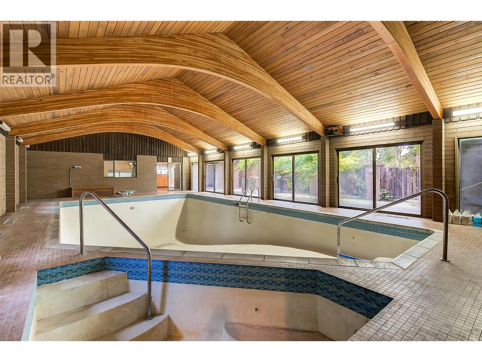 RARE EXECUTIVE ARCHITECTURALLY DESIGNED 6960 SF CONTEMPORARY ESTATE RANCHER WALKOUT, with INDOOR 20x40 CONCRETE POOL, TRIPLE GARAGE ON .93 ACRE OLD GROWTH Treed Lot with VIEW OF LAKE! 1st time on market! This Sprawling custom designed Rancher is sure to impress, full large brick exterior, concrete tile roof. While it is a walk into yesteryear decor, it is timeless in solid quality built construction and design. Big spacious rooms offer tons of potential for great for entertaining and family life! 3 Brick fireplaces, easy flo floor plan. Large inviting Entry with open stairs down greets you. Massive living room with 2 picture windows, classic sculpted carpets, enjoys a stunning View of the large grounds, Lake, Westside and even Bridge. Extra Large floor to ceiling Brick real wood fireplace. Big Dining room with picture window to View and solid wood pass door to Kitchen. Country sized wood kitchen with built in's, window over sink to View, with open plan to adjacent family room with Brick gas fireplace and glass sliding door to front private courtyard. Large semi-covered Deck. 1469 SF Laminate Wood beamed Dive depth Concrete Pool and swirl pool area with solar heat will impress you! 2 Beds plus den up, 3 bedrooms down. Large Rec Room with Wood fireplace. Huge Workshop area, tons of storage. 600 amp service! Drilled private well, city connection avail. Huge driveway welcomes you, Courtyard parking area. Home is ""as is where is"" but great bones, ready for your ideas. (id:27476)
