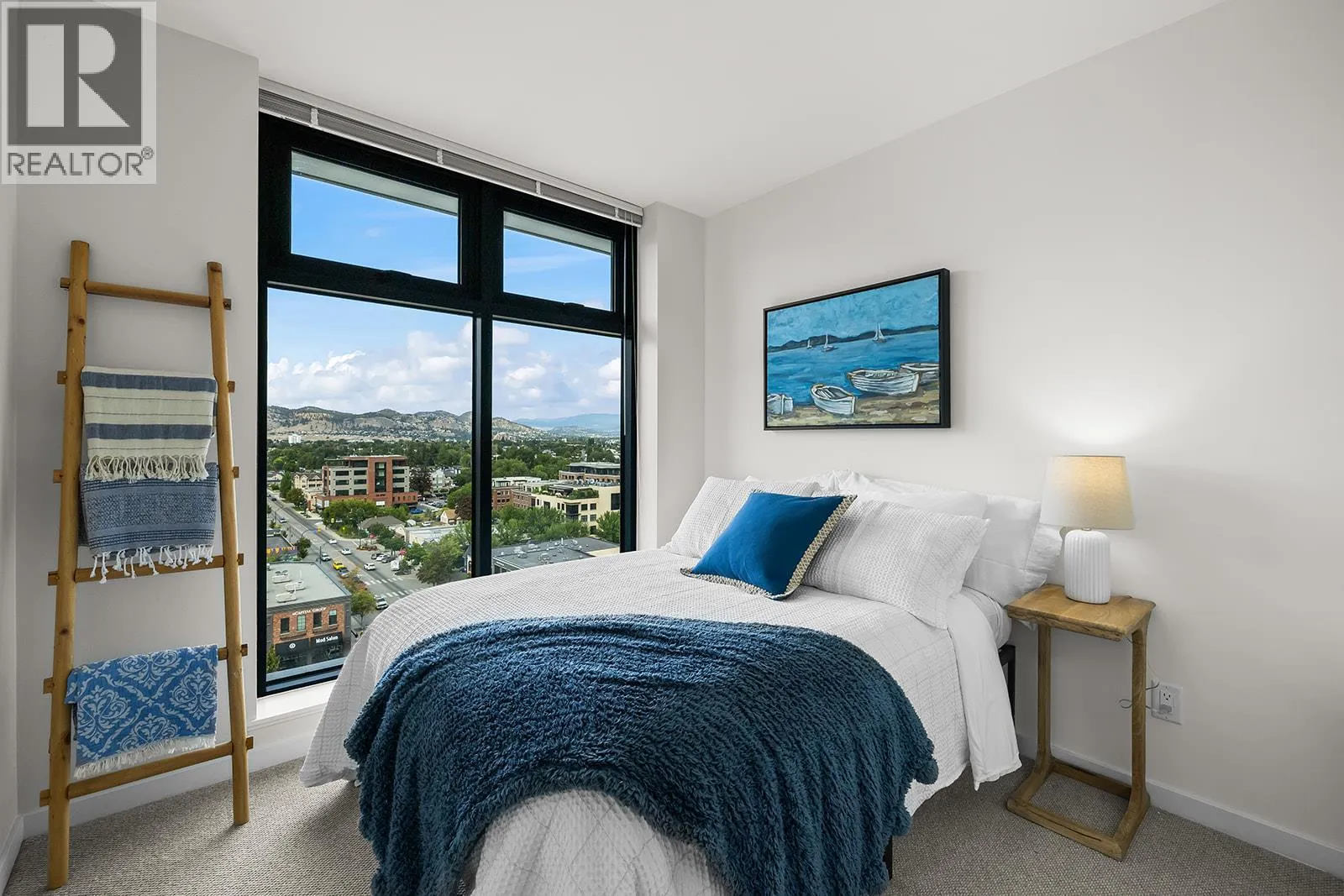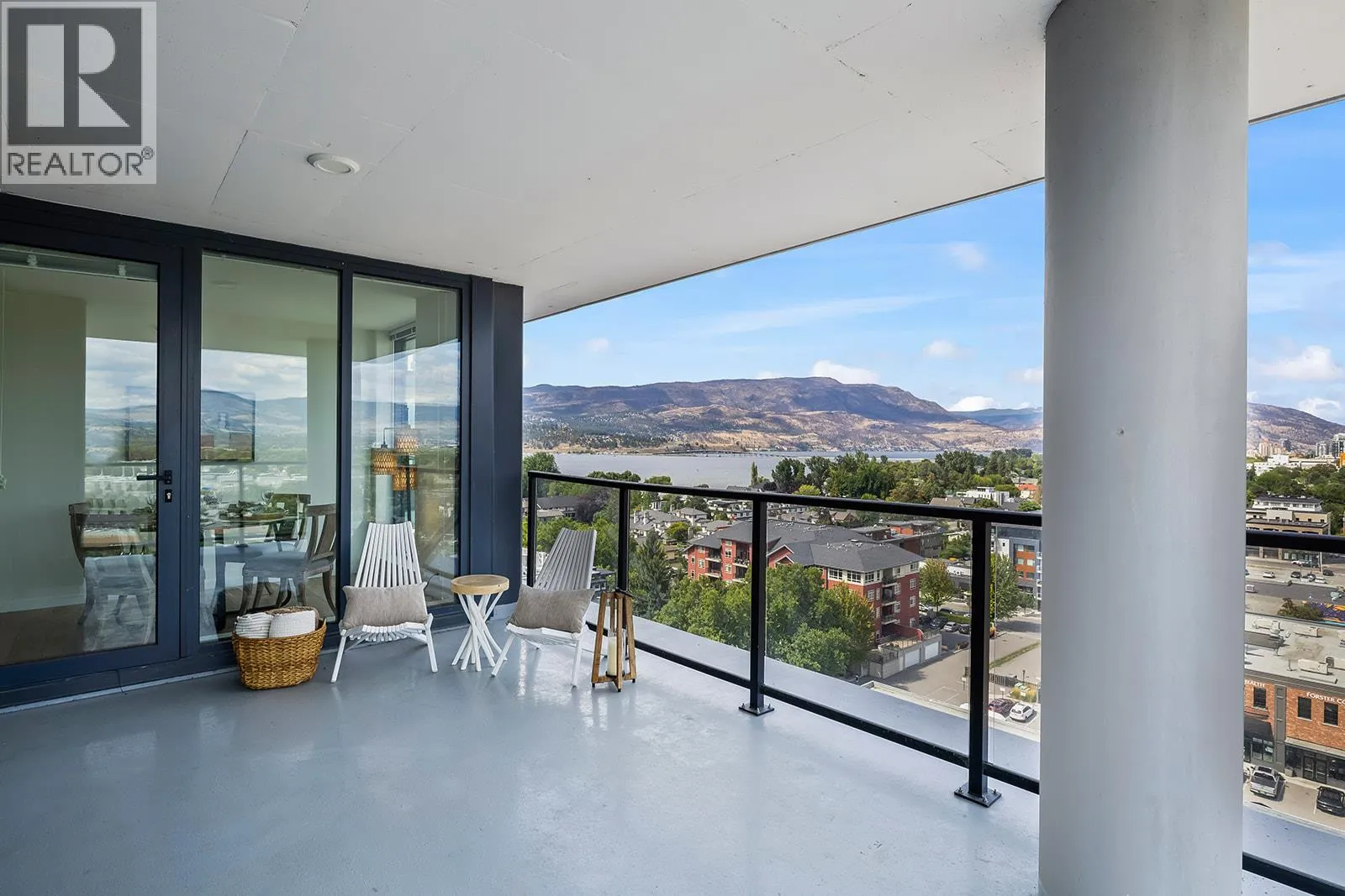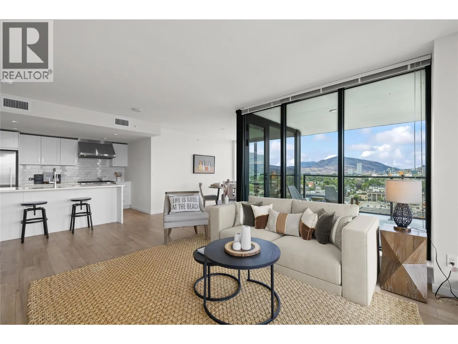 Located on the 12th floor of one of Kelownaâs premier communities, Sopa Square, this exceptional condo offers commanding, unobstructed views of Okanagan Lake, surrounding mountains, lush farmland, the William R. Bennett Bridge, and the vibrant downtown skyline. Designed to maximize both light and scenery, the open-concept living space features floor-to-ceiling windows and a seamless flow from kitchen to balcony. The gourmet kitchen is finished with quartz counters, shaker cabinets, SS appliances, including a WOLF gas range, and a generous island with room for seatingâperfect for entertaining or everyday dining. The living room & dining room open directly to a spacious private balcony, creating an effortless indoor-outdoor connection. The primary suite includes a walk-through closet and a spa-inspired ensuite with frameless glass shower. A versatile second and third bedroom and full guest bathroom provide flexibility for visitors, family, or creative spaces. Two secure garage parking stalls and a storage locker offer convenience and security. Building amenities include a well-appointed fitness centre, meeting room, outdoor terrace, outdoor pool/hot tub and change rooms. Situated in the sought-after Pandosy Village corridor, you are within walking distance of the waterfront, beaches, boutique shops, dining, Kelowna General Hospital, and transit. Pet-friendly and rental-permitted, this home is ideal for both personal use and investment. (id:27476)