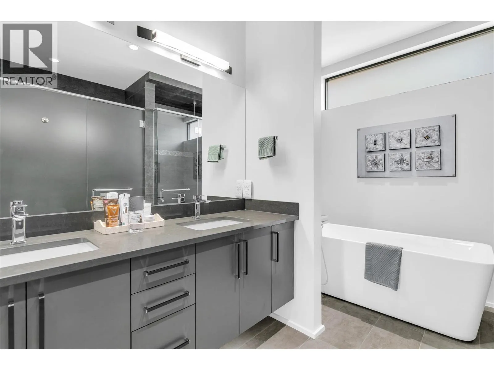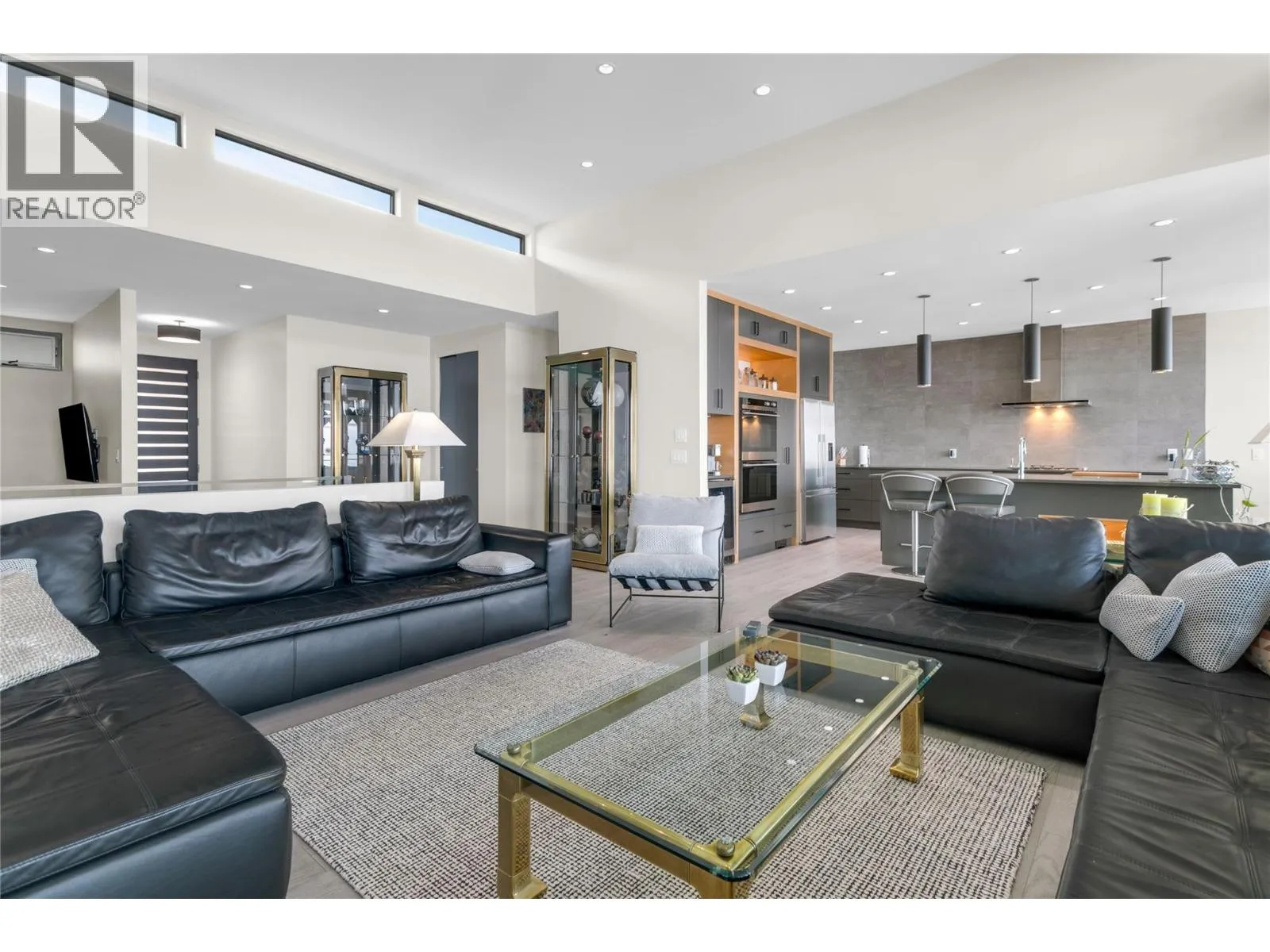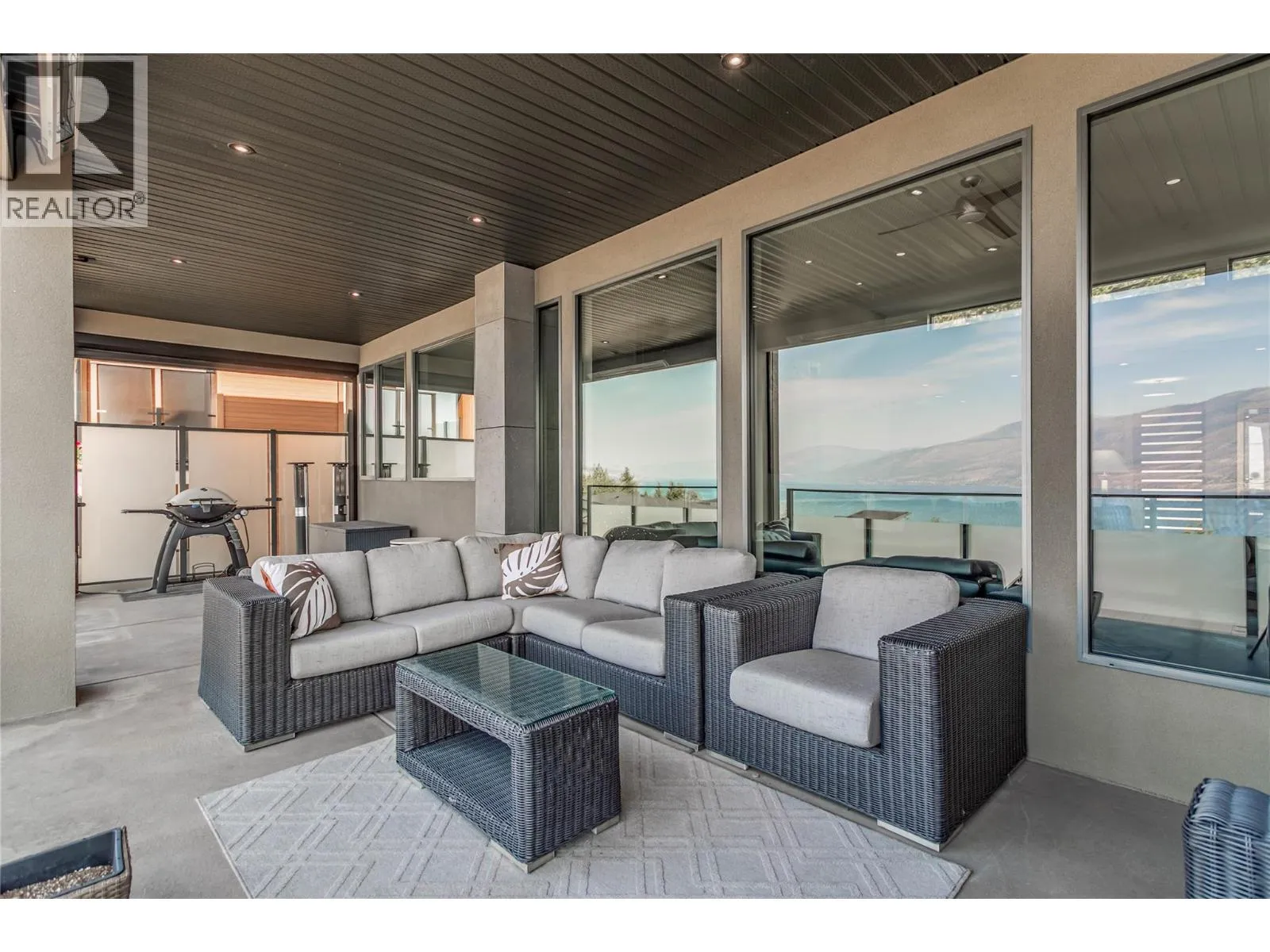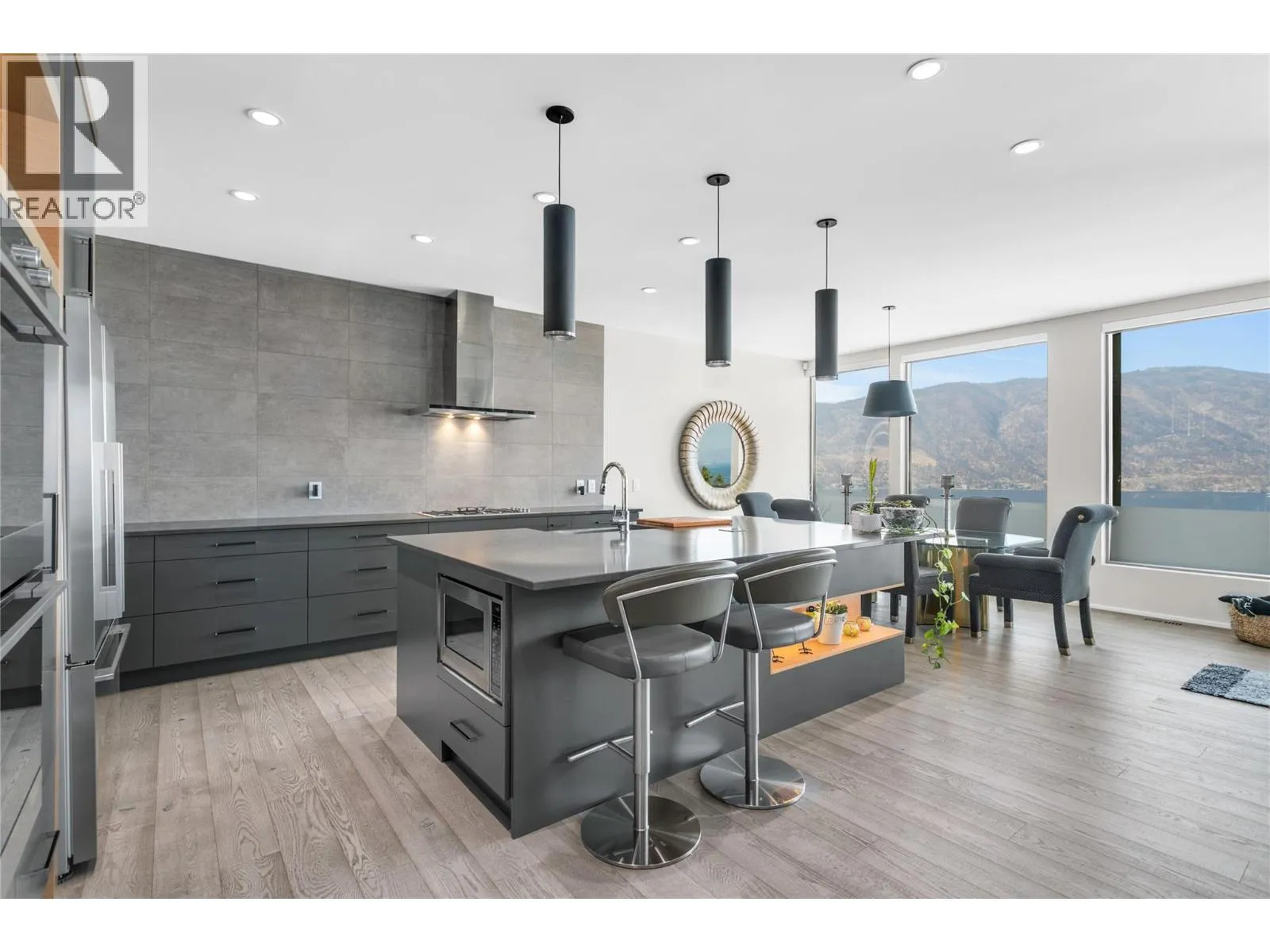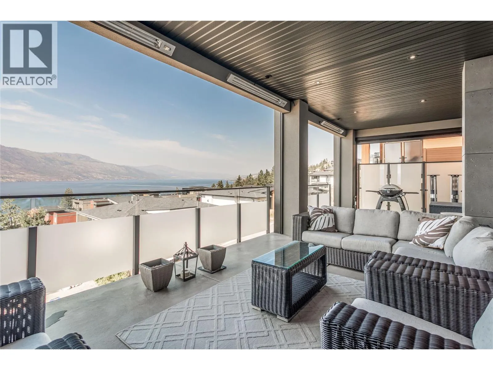 Custom built 3521 sf open concept home captivates from the moment you step inside, showcasing a thoughtfully designed layout with soaring ceilings, luxurious details and expansive glass framing lake views from both levels. Chef-inspired kitchen w/ quartz countertops, oversized island w/ sleek pop-up outlet, gas cooktop, double wall ovens, beverage fridge, Fisher & Paykel appliances + dual drawer dishwashers. Soft-close cabinetry, b/in spice rack, spacious walk-in pantry and modern travertine backsplash. The primary is a private retreat boasting an impressive closet + spa-inspired ensuite w/ heated floors, double sinks and a free-standing soaker tub. Lower level offers 2 generous bedrooms, a versatile family/rec space and access to a private hot tub. Enjoy entertaining year round w/ infrared heaters on deck, motorized sunshades, a BBQ outlet and frosted glass railings for privacy. Extras radiant in-floor heating, Navien water system, 8â solid core doors, convenient laundry chute, dimmable lighting, motorized blinds, epoxy floors & storage cabinets in garage, new washer/dryer. Meticulously maintained and beautifully finished, this home offers luxury, function, and comfortâall within one of Kelownaâs most desirable lakeview communities. McKinley Beach is known for its natural beauty and extensive outdoor amenities - a private marina, 10km of walking trails, playgrounds, tennis/pickleball courts an outdoor gym and only mins to YVR, retail and shopping! Furniture negotiable. (id:27476)