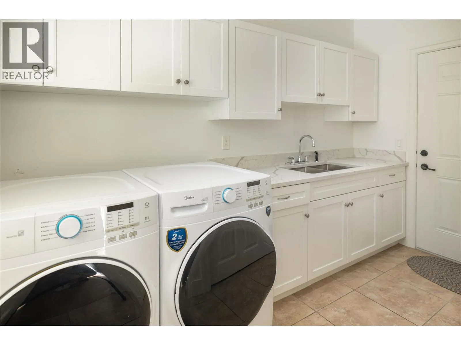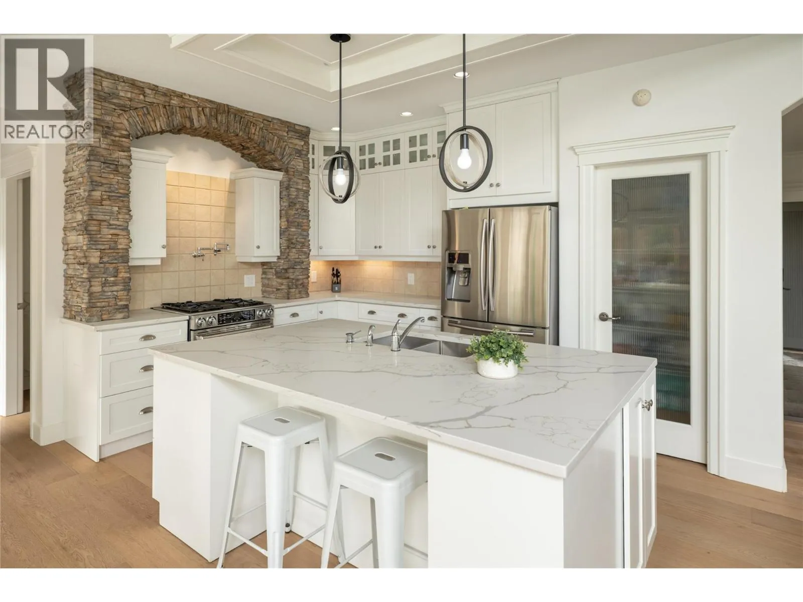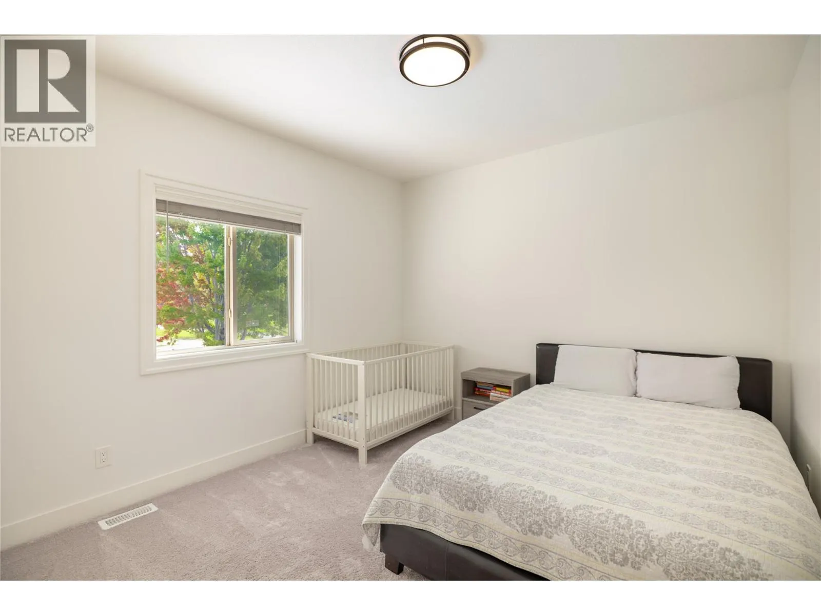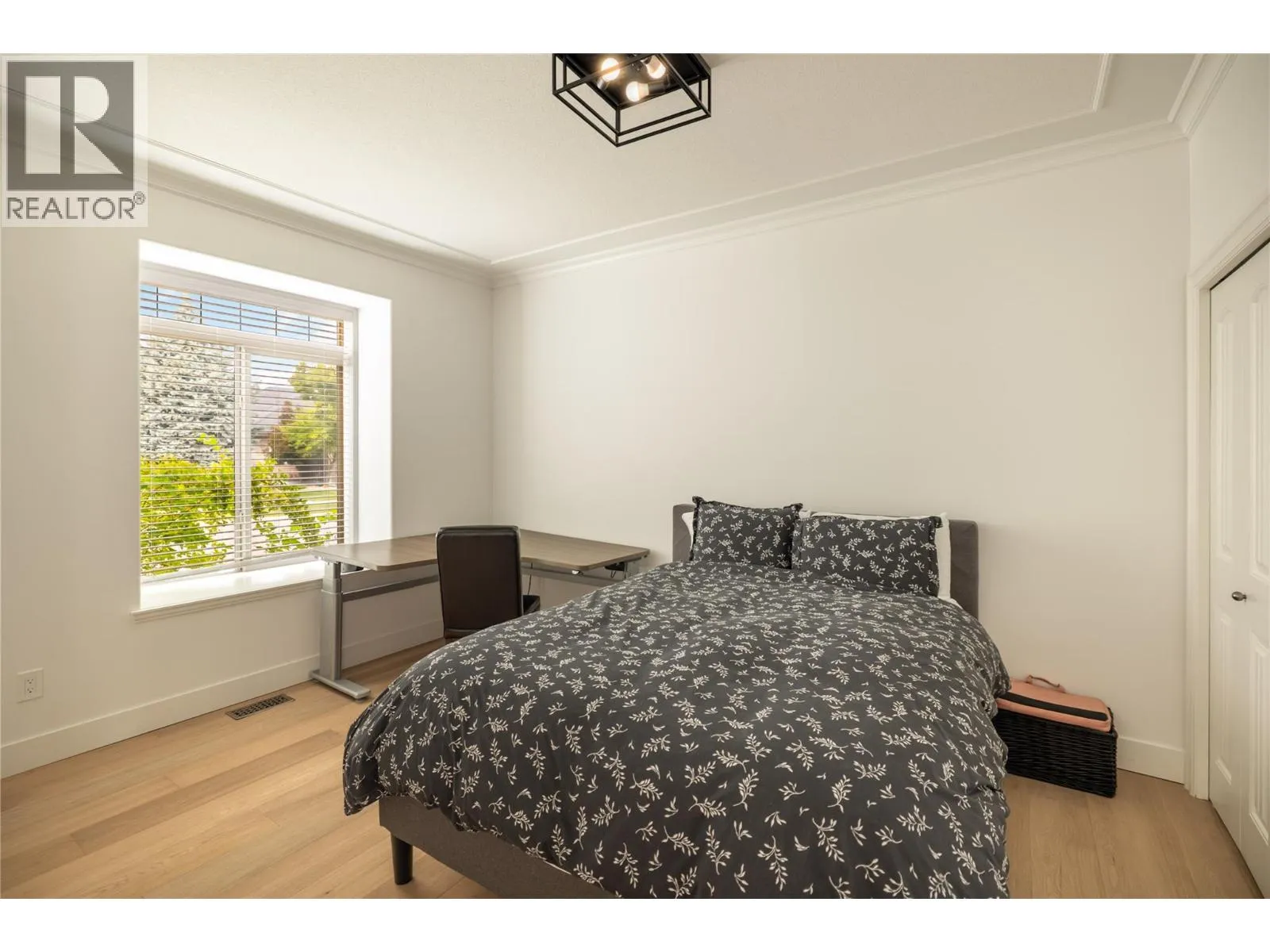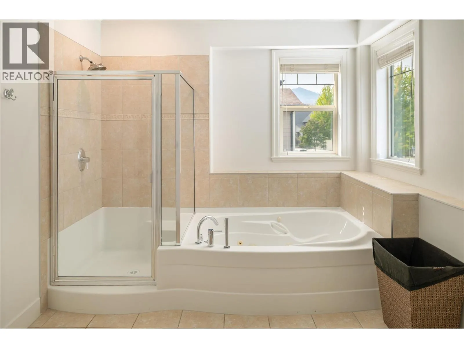 Discover this stunning 3,844 sq. ft. family home in the heart of Kettle Valley, perfectly designed for lifestyle and comfort. The backyard is a true retreat with a saltwater pool featuring an auto cover, a hot tub, and a fully fenced yard that backs directly onto Quilchena Park. The poolside patio flows seamlessly off the main level, allowing you to watch the family swim while preparing meals in the kitchen with its large island, pantry, and abundant storage. Inside, soaring ceilings and a gas fireplace create a warm, open-concept living space. The main floor also offers a bedroom, laundry, and a spacious double garage. Upstairs, three bedrooms plus a loft provide plenty of family space, while the expansive primary suite has double vanities, a soaking tub, walk-in shower, private water closet, and walk-in closet. The lower level adds even more versatility with a large rec room, office/den, additional bedroom and bathroom, plus a separate entrance. Updates include a brand-new high-efficiency furnace and heat pump, a new hot water tank plus a new auto cover for the pool (2023), while features such as a built-in vacuum add convenience. Ideally located within walking distance to schools, parks, coffee shops, and community stores, this home blends luxury with everyday ease. (id:27476)