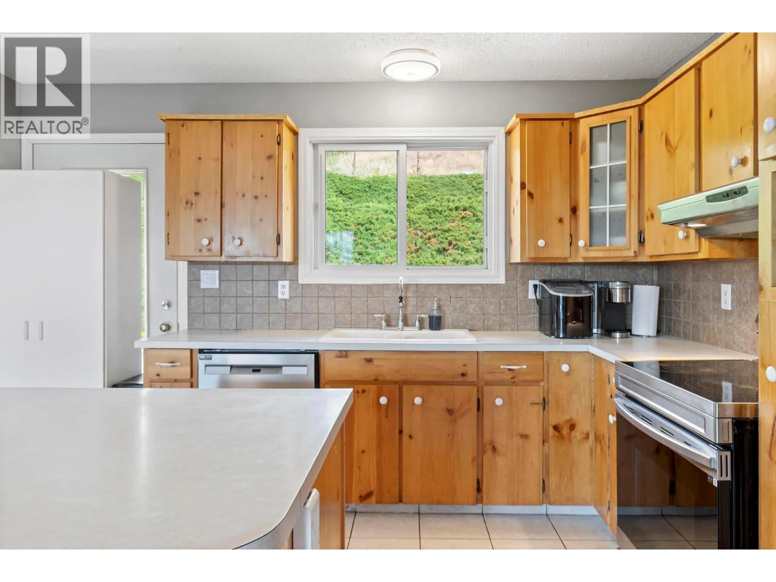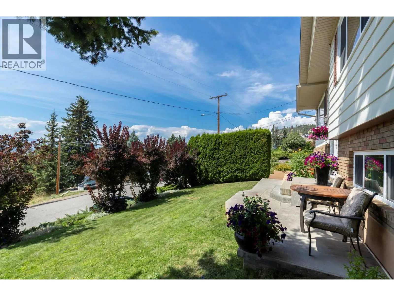 Immaculate 4-bedroom, 2-bath home in the heart of Black Mountain, offering sweeping lake, mountain, valley, and city views. Situated on a spacious 0.21-acre lot in one of the areaâs most safe and private neighborhoods, this well-maintained home delivers outstanding indoor-outdoor living. The bright, airy living room invites you to relax by the wood-burning fireplace, with large windows that capture the scenery. The open-concept kitchen and dining area features newer appliances, an eat-in bar, and a pantryâflowing seamlessly onto a massive covered deck perfect for entertaining. The primary bedroom is warm and inviting, with windows that frame stunning valley and mountain views. Downstairs offers a large rec room with gas fireplace, office/flex space, a bright laundry room with sink and storage, and excellent in-law suite potential. The tiered backyard is a showstopper with a fully organic garden, vibrant perennials, and a retaining wall. Out front, a charming sitting area is perfect for enjoying your morning coffee. The attached single-car garage provides space for storage and tools, with extra driveway parking. Located in a quiet, family-friendly area with minimal traffic, this home offers peace of mind and a true sense of community. Hiking trails and Lund Park are at your doorstep, golf is just minutes away, and youâre around the corner from Black Mountain Elementary. All this, under 25 minutes to downtown Kelowna and less than 40 minutes to Big White. (id:27476)