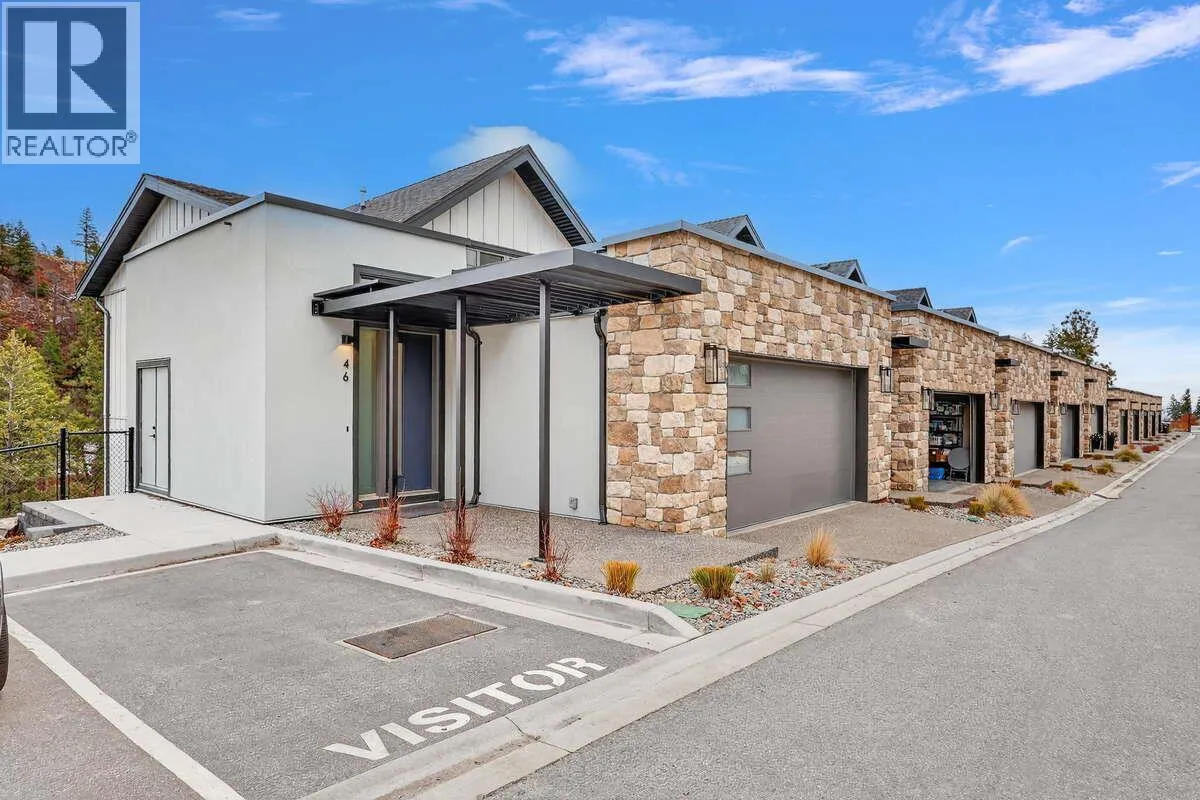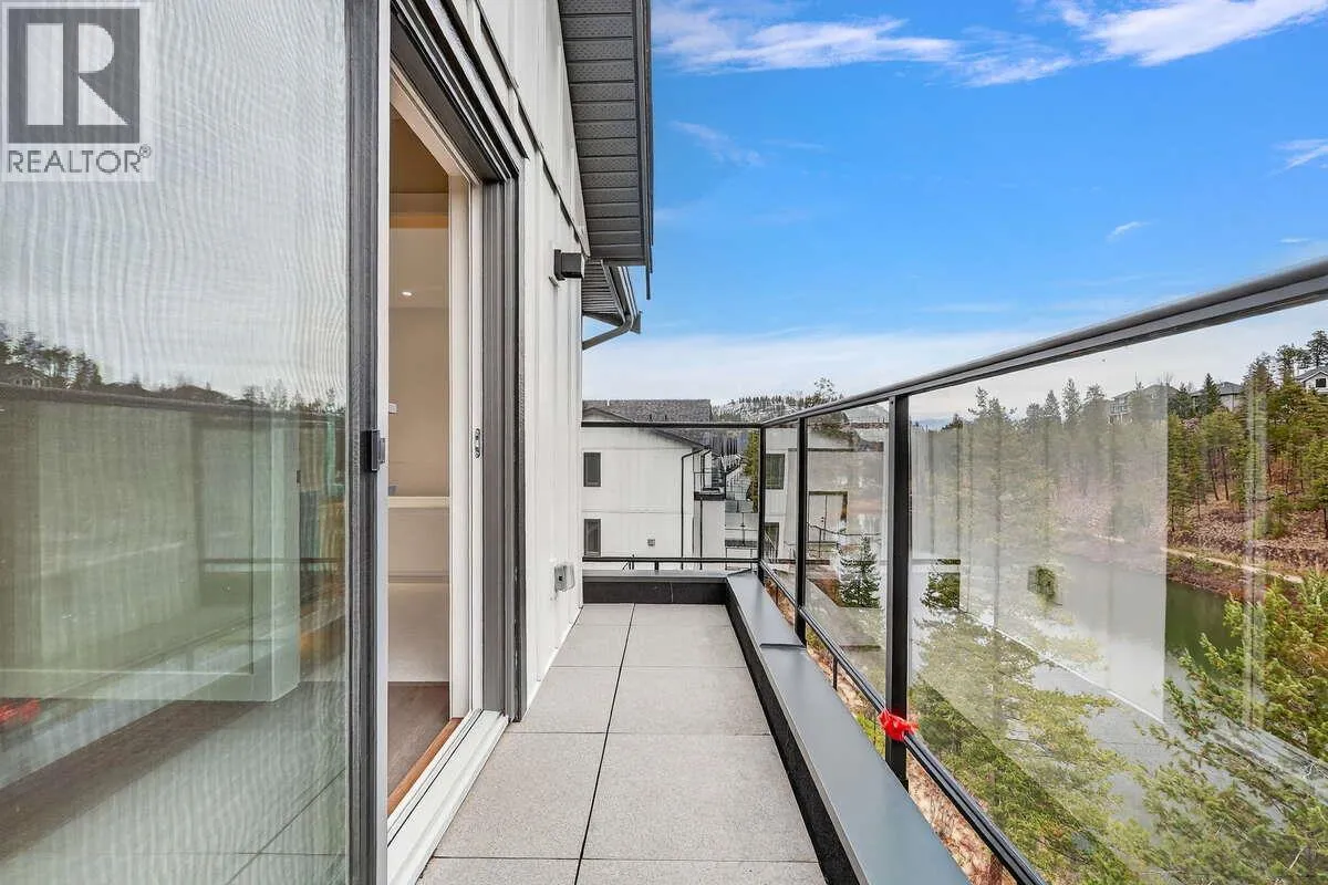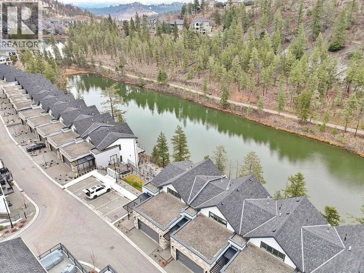 For more information, please click Brochure button. Discover Unit 46 â NO Strata Fees for One Year! Priced below assessed value! The Elderberry Plan at Wildenâs Pondside Landing, a stunning corner townhouse offering 2,741 sq. ft. of bright, contemporary living in the Warm Nordic colour scheme. This home is the last available corner unit with the GST incentive, featuring direct water views and exceptional natural light throughout. The split-level design provides a spacious and functional layout with 3 bedrooms, 3 bathrooms, and a study. Enjoy three outdoor living areasâa large deck off the main level, a private balcony off the primary suite with a 5-piece ensuite and walk-in closet, and a covered patio extending from the walkout basement. The main floor showcases an open living area with a gas fireplace, while the lower level includes two bright bedrooms and a family room opening to the patio. A side-by-side double garage connects conveniently to a well-designed laundry room. Ceiling heights range from 9' in the basement, 10' on the main floor, 8' in the upper bedroom, and up to 11' in the study, enhancing the homeâs sense of openness and light. Located just 10 minutes from downtown Kelowna and the airport, Pondside Landing offers a peaceful yet connected lifestyle, surrounded by trails, ponds, and future amenities like Wilden Market Square and Wilden Elementary School. All measurements are approximate. (id:27476)