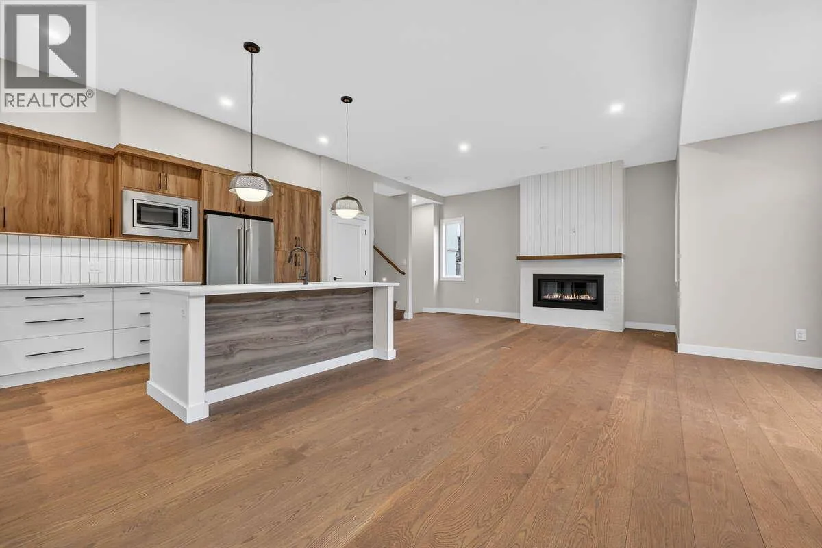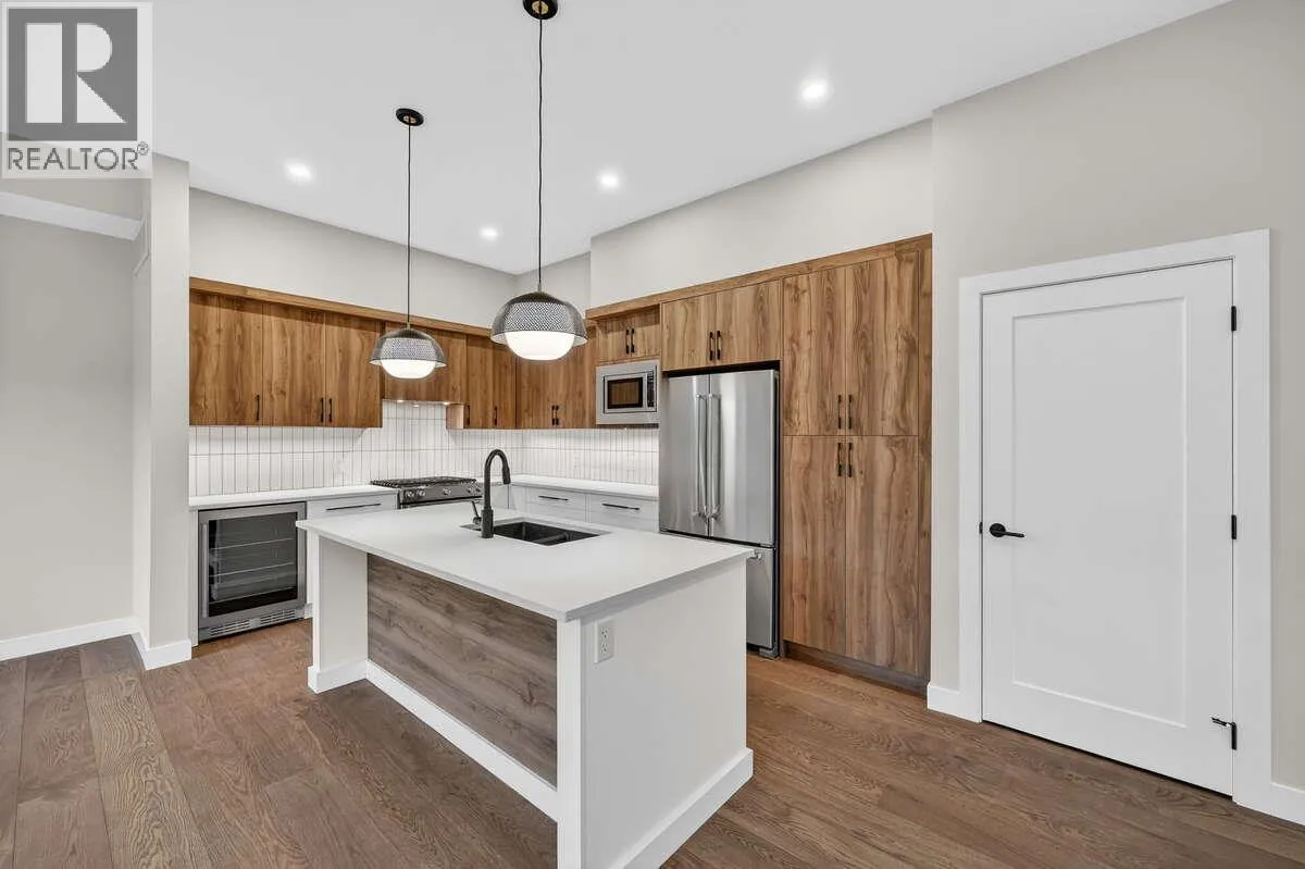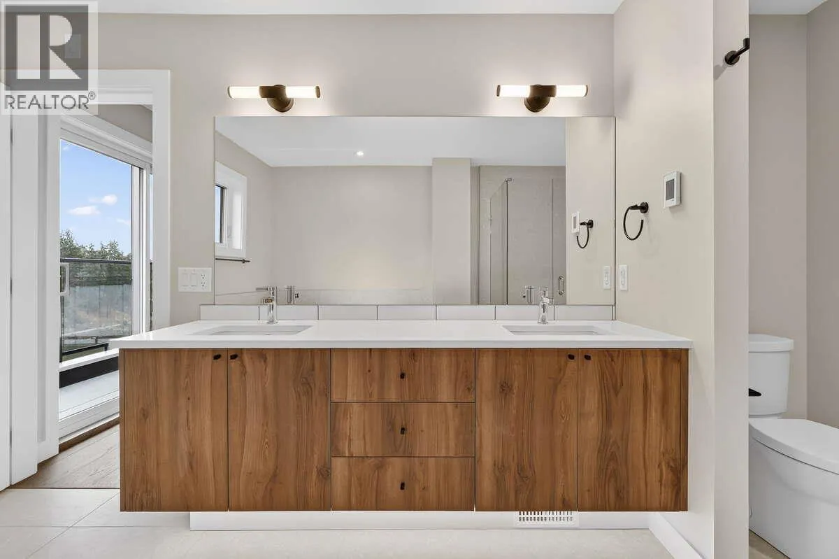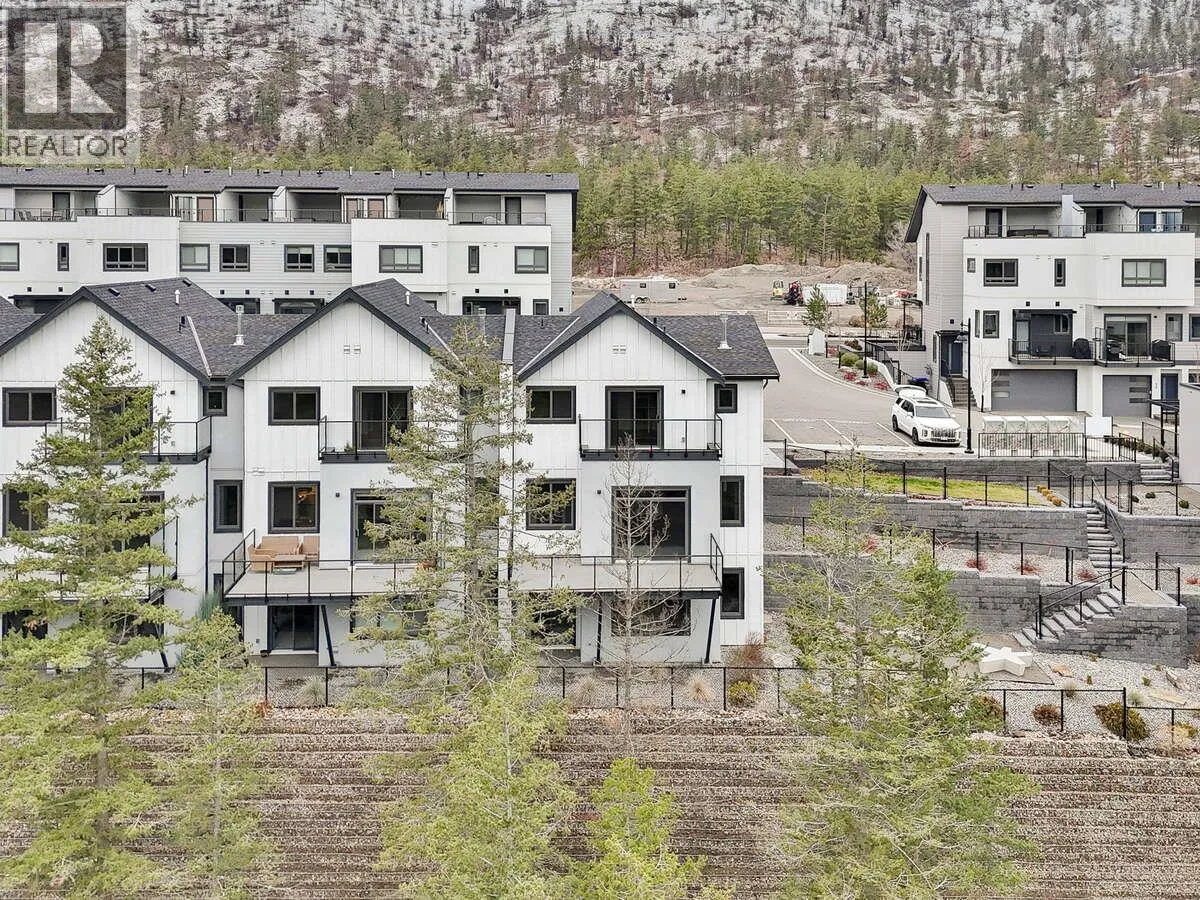 For more information, please click Brochure button. Discover Unit 46 â NO Strata Fees for One Year! Priced below assessed value! The Elderberry Plan at Wildenâs Pondside Landing, a stunning corner townhouse offering 2,741 sq. ft. of bright, contemporary living in the Warm Nordic colour scheme. This home is the last available corner unit with the GST incentive, featuring direct water views and exceptional natural light throughout. The split-level design provides a spacious and functional layout with 3 bedrooms, 3 bathrooms, and a study. Enjoy three outdoor living areasâa large deck off the main level, a private balcony off the primary suite with a 5-piece ensuite and walk-in closet, and a covered patio extending from the walkout basement. The main floor showcases an open living area with a gas fireplace, while the lower level includes two bright bedrooms and a family room opening to the patio. A side-by-side double garage connects conveniently to a well-designed laundry room. Ceiling heights range from 9' in the basement, 10' on the main floor, 8' in the upper bedroom, and up to 11' in the study, enhancing the homeâs sense of openness and light. Located just 10 minutes from downtown Kelowna and the airport, Pondside Landing offers a peaceful yet connected lifestyle, surrounded by trails, ponds, and future amenities like Wilden Market Square and Wilden Elementary School. All measurements are approximate. (id:27476)