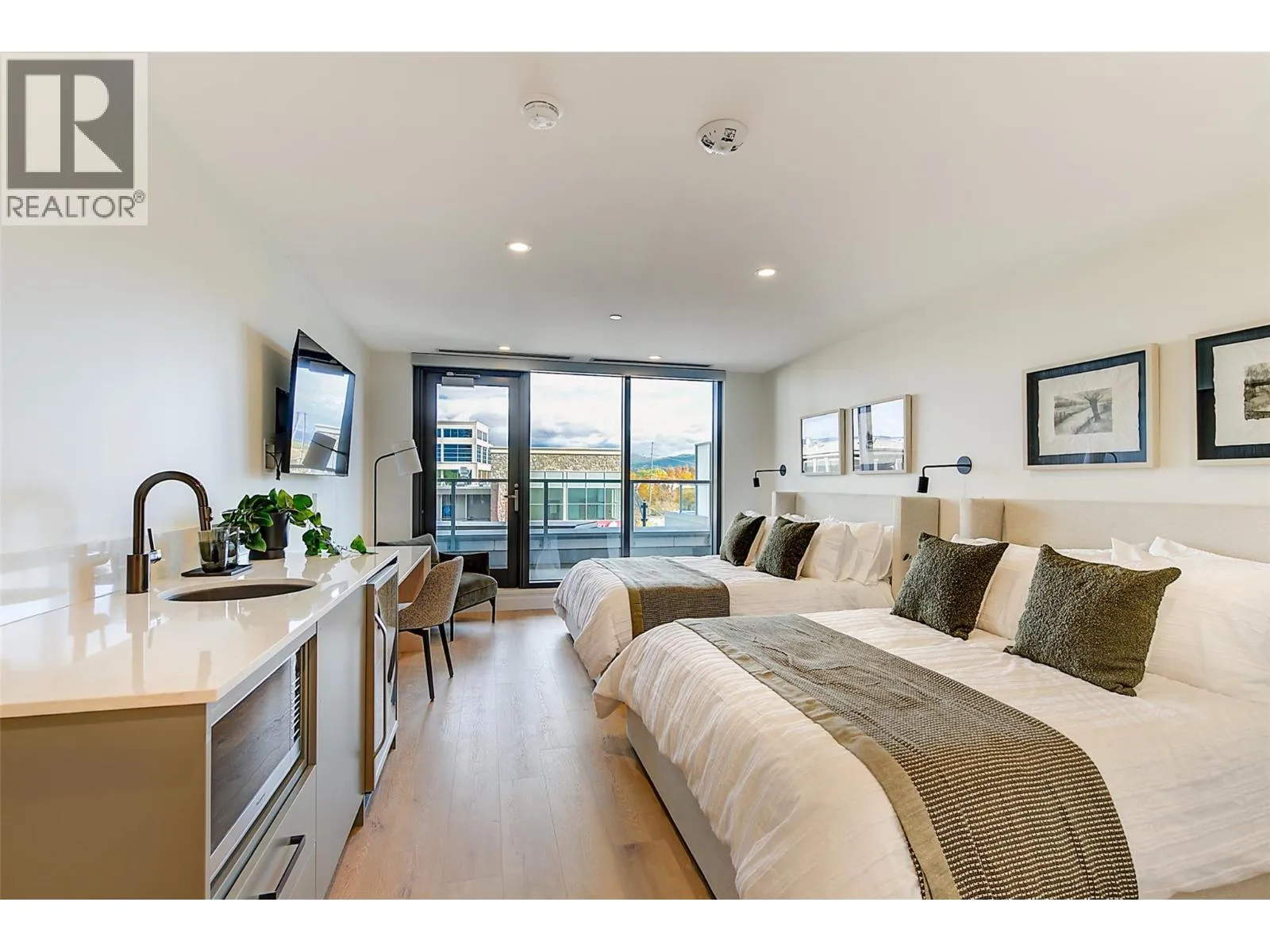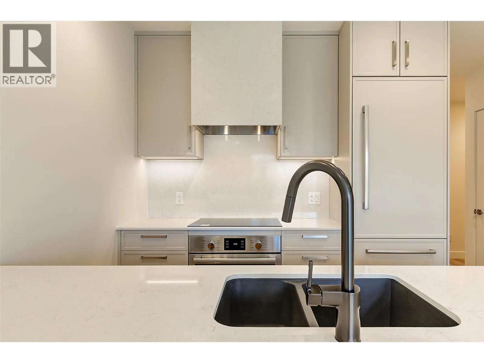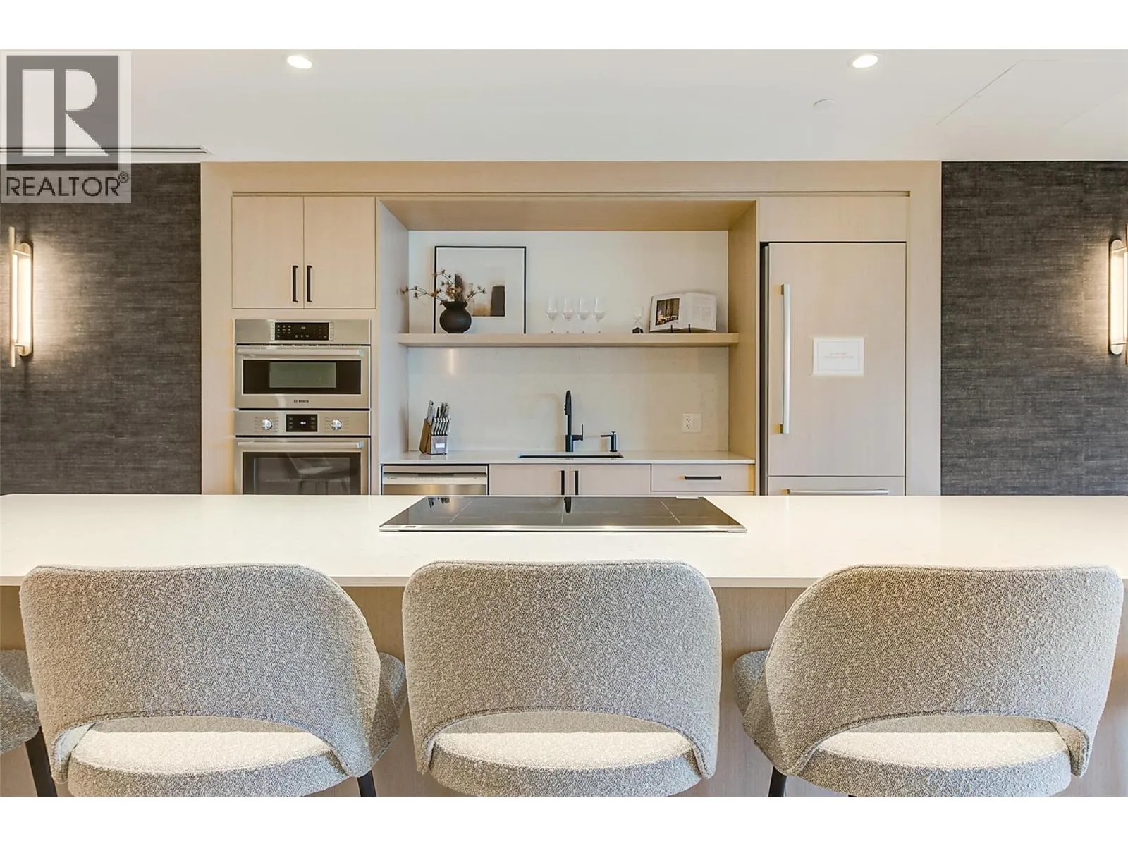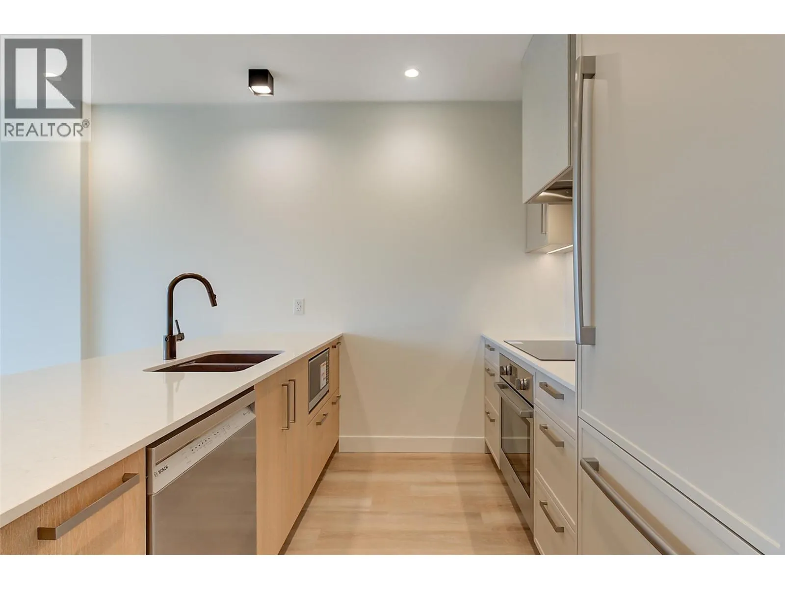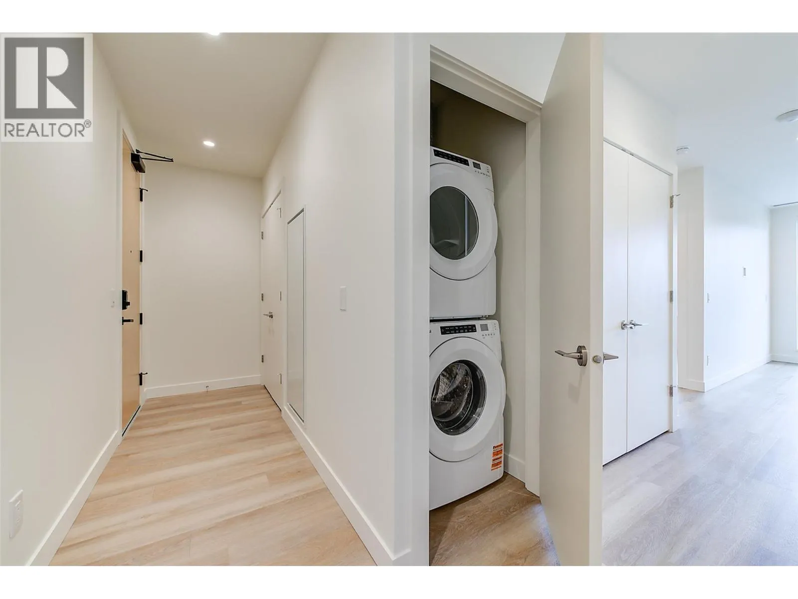 This brand new TOP FLOOR 2 bedroom condo with magnificent lake views is located in the desirable Lower Mission area of Kelowna. Movala has been designed with incredible thoughtfulness and the amenities will satisfy all your living needs. The condo boasts high ceilings, top of the line finishings, upgraded walk-in shower, in unit washer/dryer, high end appliances with induction stove, touchless water faucet, state-of-the-art blinds & a large deck with fabulous views of Okanagan Lake perfect for entertaining! There is a lovely guest suite, upscale gathering room with an eye catching steam fireplace, beautiful library area, yoga room, celebration room, games room with pool table, shuffle board, foosball & a number of large screen tvs, professional work area with individual rooms for privacy. The outdoor pool area with hot tubs will be incredible with lounge furniture and tables, a bocce lawn, fire tables, bbq, kitchen and landscaped gardens with walkways. The underground parking area is secure and boasts a dog wash area, huge bike room with chargers for ebikes, water sports storage and a workshop area for repairs. Plenty of secured underground visitor parking spaces will be much appreciated when guests come. EV charging to unit's parking stall can be arranged. Located in one of Kelowna's most desirable locations Movala is just minutes to shops, restaurants, wineries, hiking trails & a quick drive to the airport. This magnificent resort style residence is simply the best!! (id:27476)